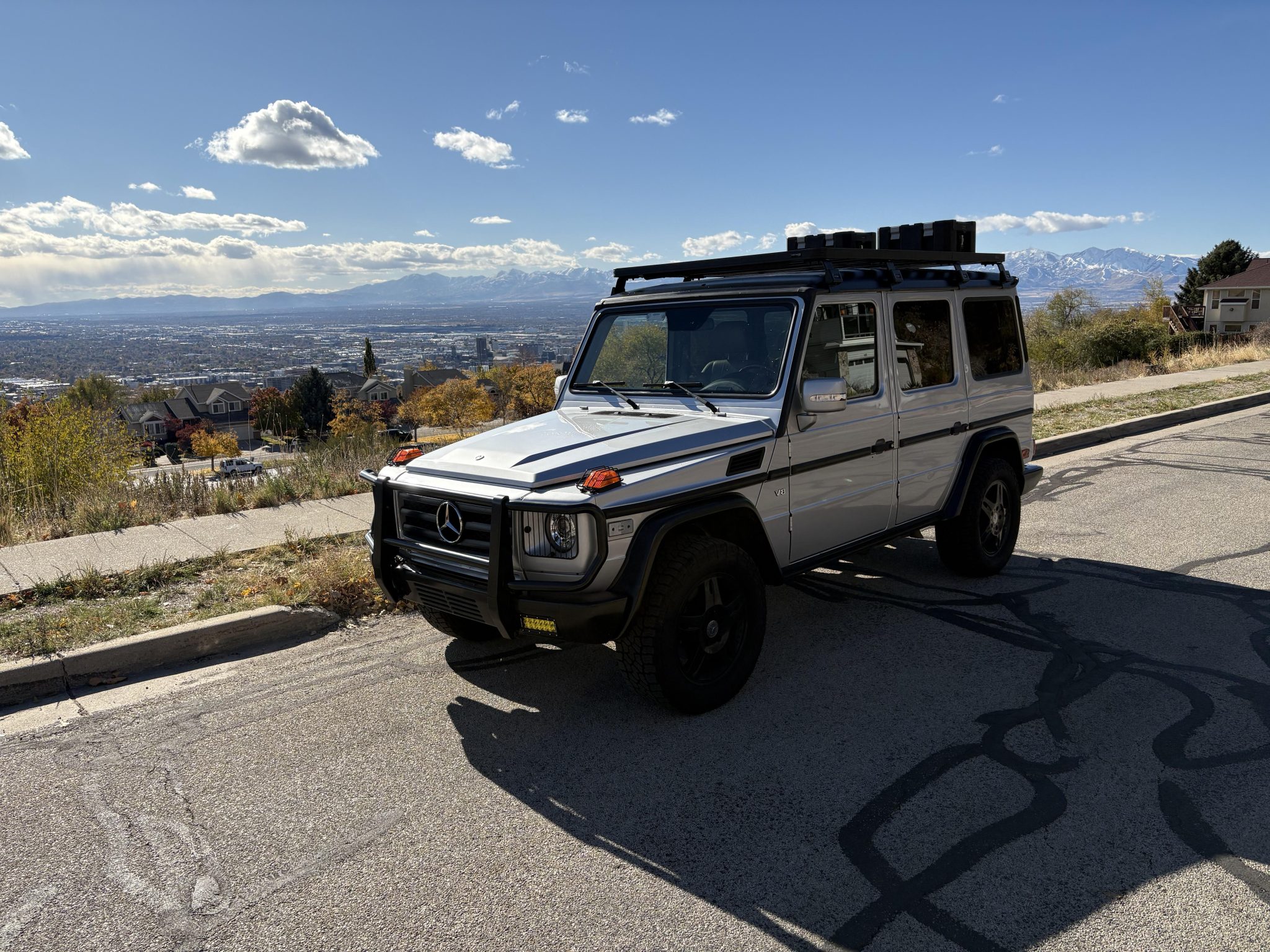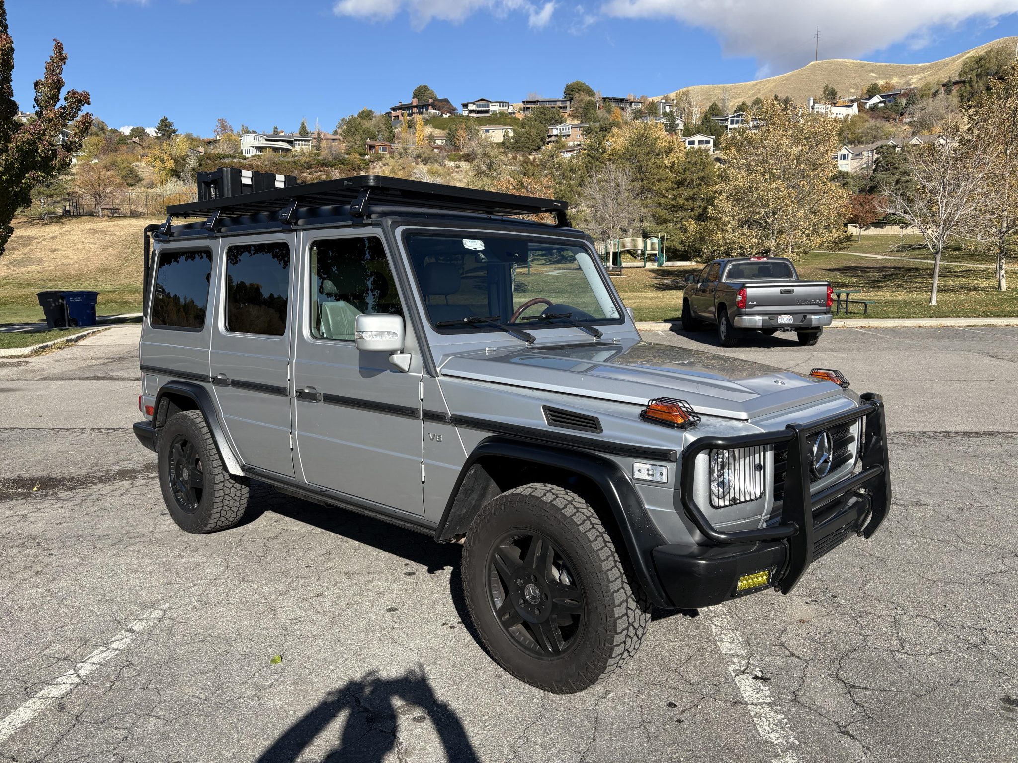Black-finished 18″ five-spoke alloy wheels are mounted with 265/60 Falken Wildpeak AT 4W tires, and a covered spare is secured on the back of the truck. Antilock braking is provided by four-wheel discs, and the front rotors and pads were replaced in November 2023. The shocks, tie rods, and drag link were replaced the following September.