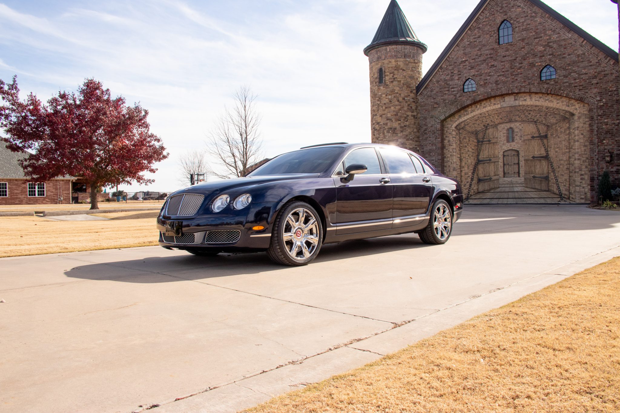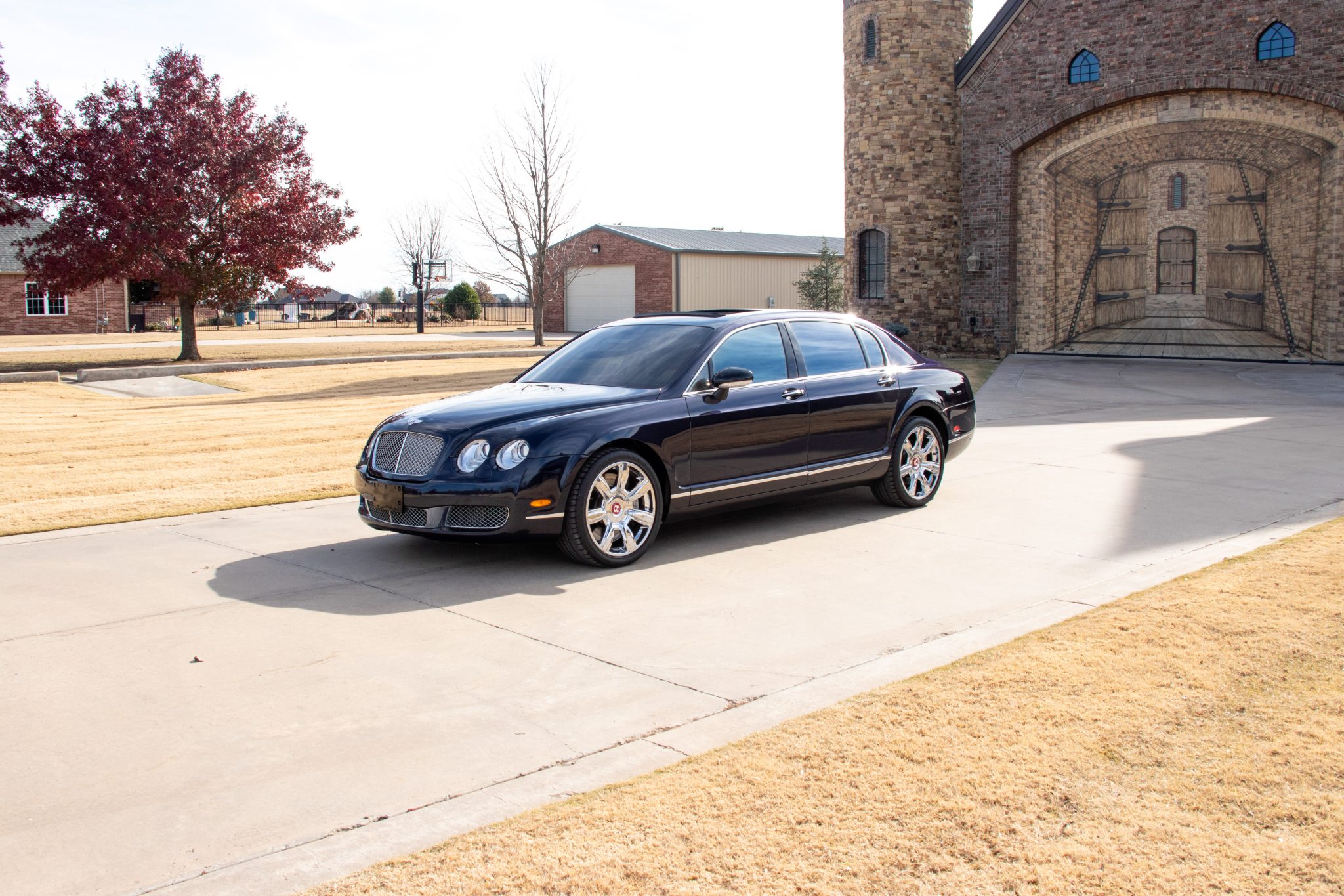 Bright 20″ seven-spoke alloy wheels are mounted with Continental tires. Braking is handled by Bentley-branded calipers fitted over ventilated discs at each corner. The car came factory equipped with a self-leveling air suspension.