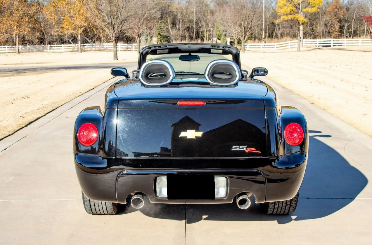 Silver-finished 19″ front and 20″ rear five-spoke cast-aluminum wheels are mounted with Goodyear Eagle RS-A tires measuring 255/45 and 295/40, respectively. The SSR was equipped from the factory with a ZQ8 sport suspension featuring an independent front and five-link solid-axle rear setup with front and rear stabilizer bars. Stopping power is provided by four-wheel ventilated disc brakes.