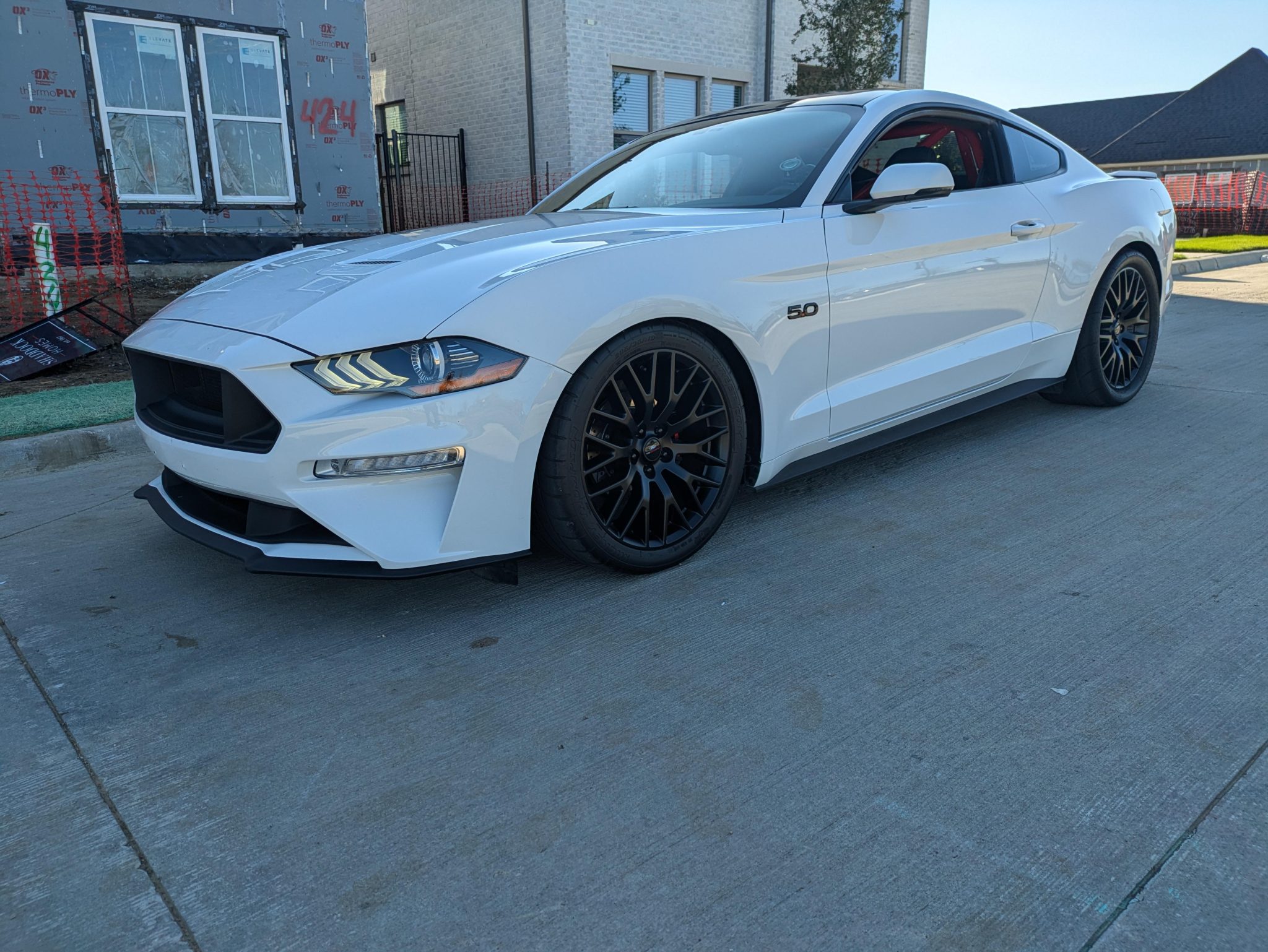 Black Ford Motorsport 19″ wheels are mounted with 285/35 Mickey Thompson Street Comp front tires and 305/35 ET Street S/S rubber out back. The car rides on Eibach drag-specification springs and a BMR cradle lockout kit. Braking is handled by a Baer SS4 Drag Race brake kit with 11.62″ rotors and black calipers.