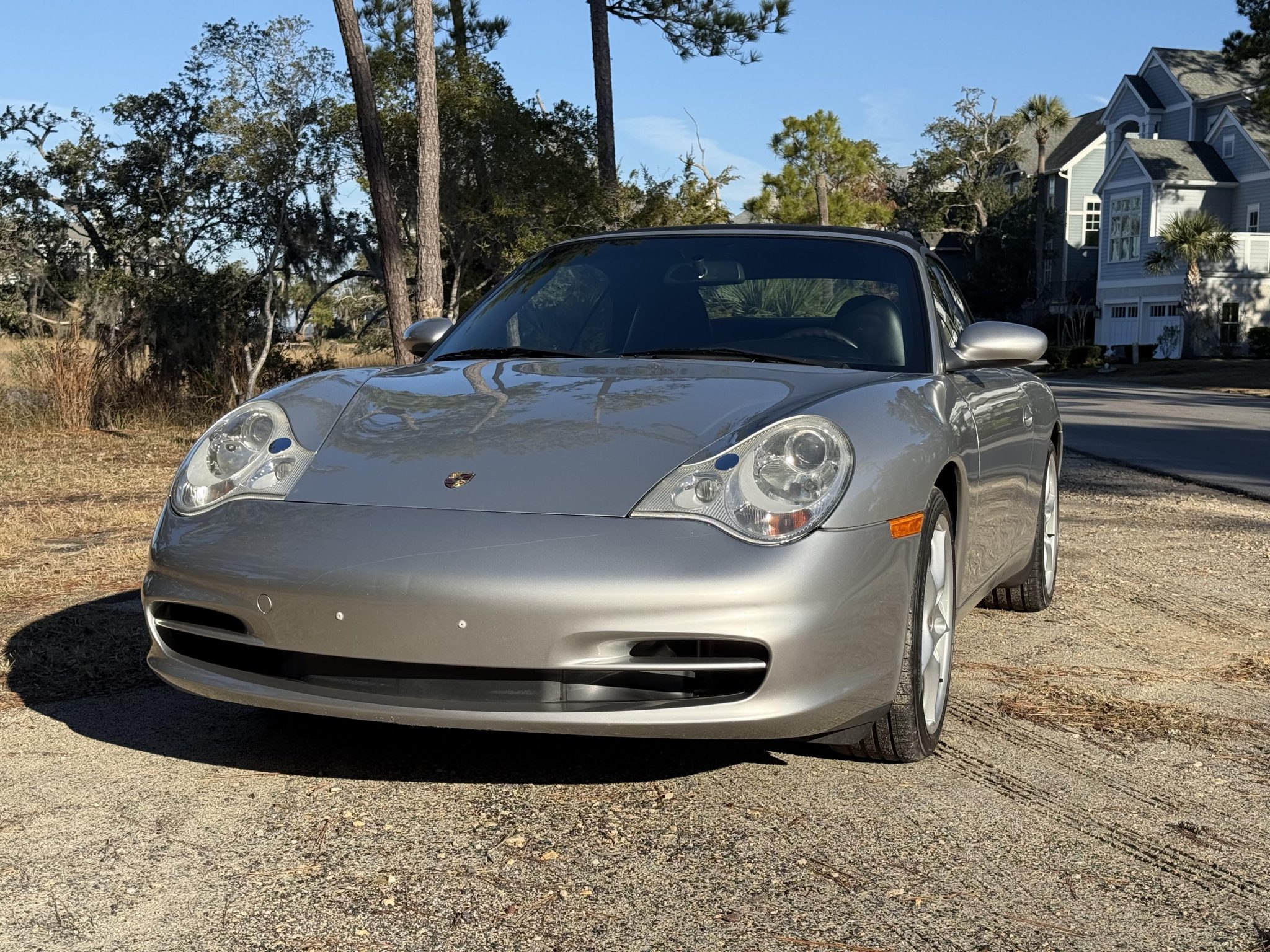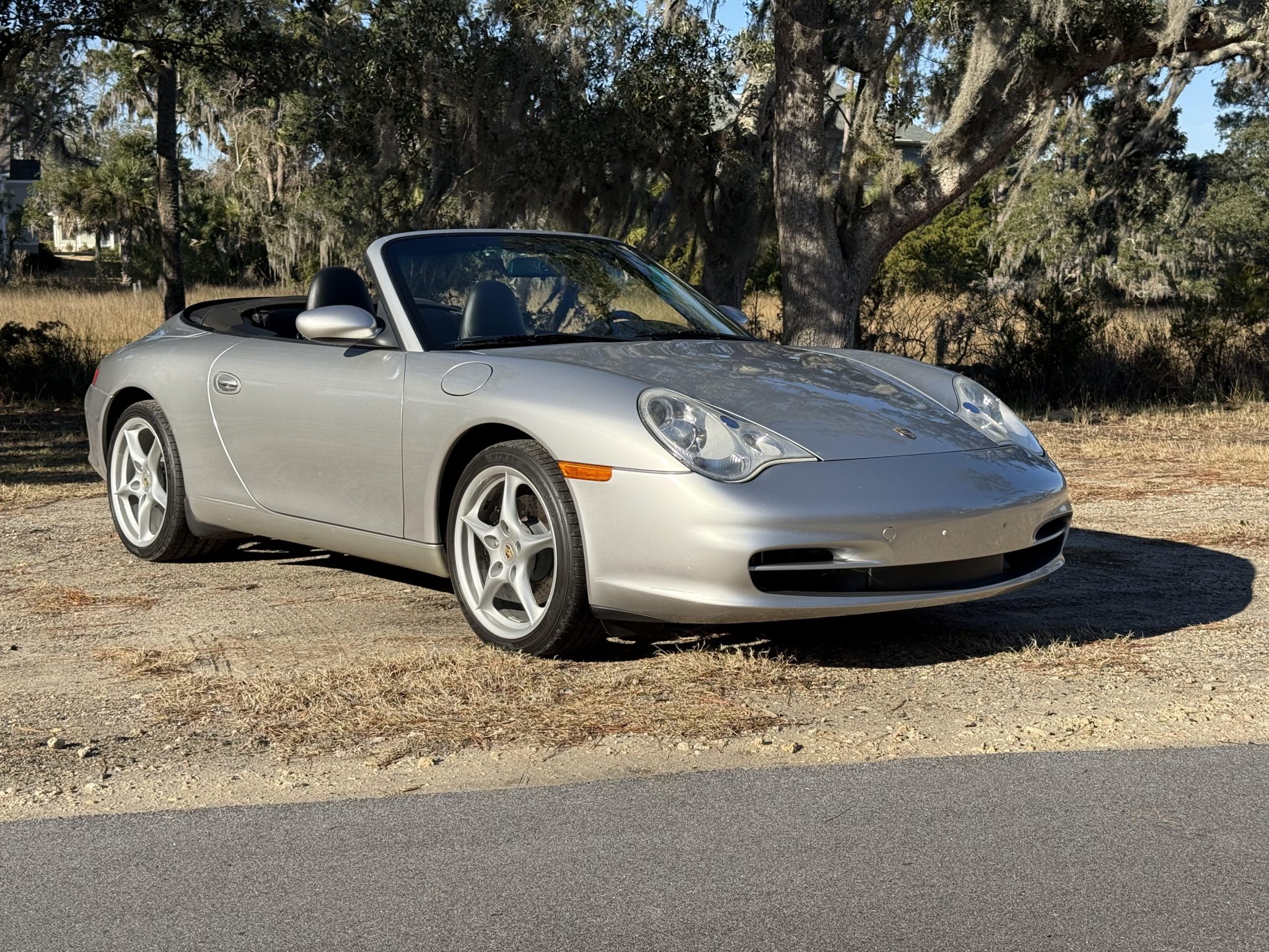 Silver-finished 18” Carrera II wheels are mounted with 225/40 front and 285/30 rear Sumitomo HTR Z5 tires that have 2019 and 2022 production-date codes respectively. Braking is handled by four-piston Porsche-branded calipers fitted over cross-drilled rotors, and the car is equipped with Porsche Stability Management.