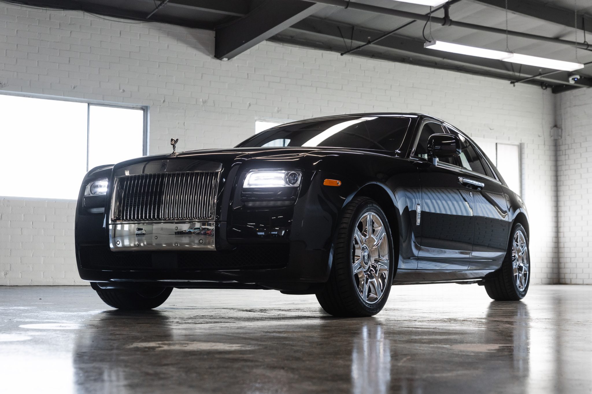 Polished 20″ seven-spoke wheels wear self-centering Rolls-Royce center emblems and are wrapped in Goodyear EfficientGrip tires. The four-wheel disc brakes feature a four-channel anti-lock system, and the car is equipped with self-leveling air springs with anti-roll stabilization and electronic Variable Damping Control (VDC).