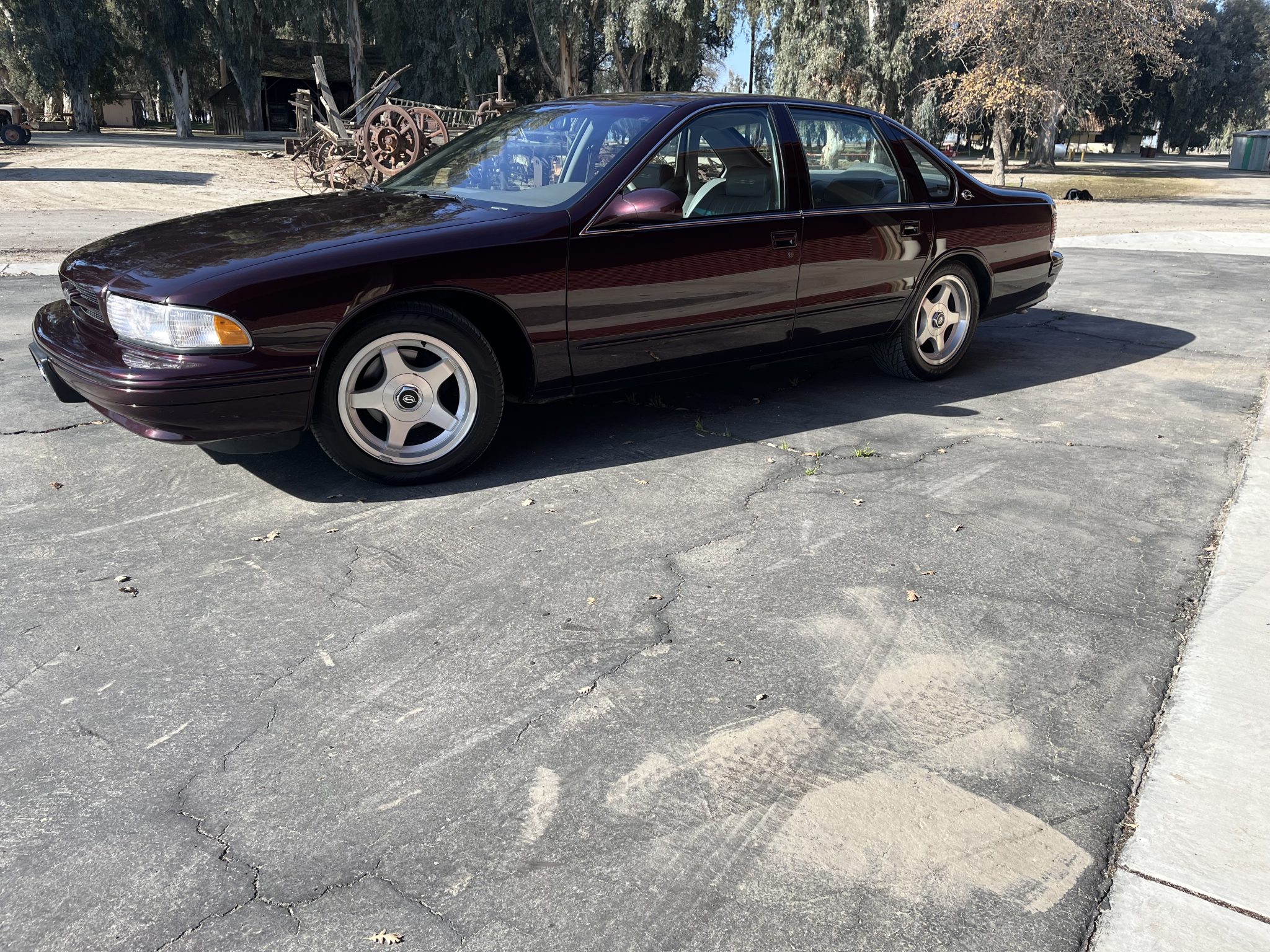 Polished 17″ five-spoke alloy wheels are mounted with 255/50 Nitto Nt450 Extreme Performance tires. The Impala SS was fitted with heavy-duty dampers, 12.1″ disc brakes, and a 1″ lower sport-tuned suspension when compared with the contemporary Caprice.