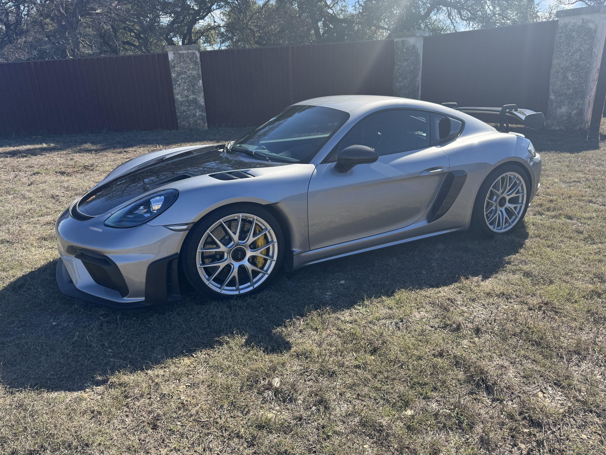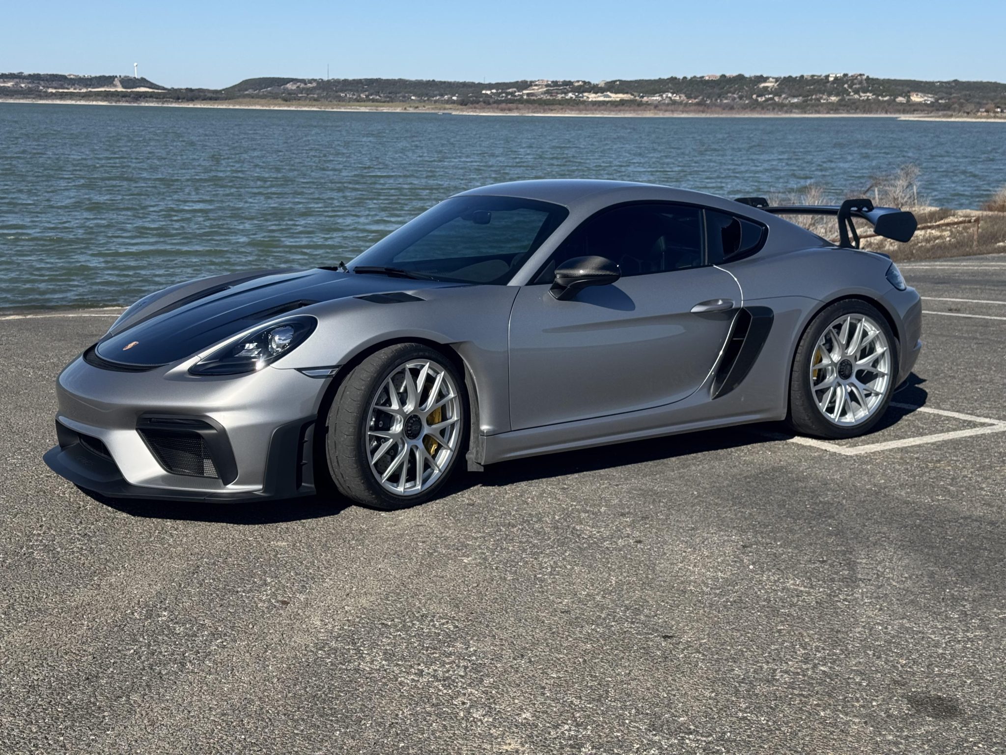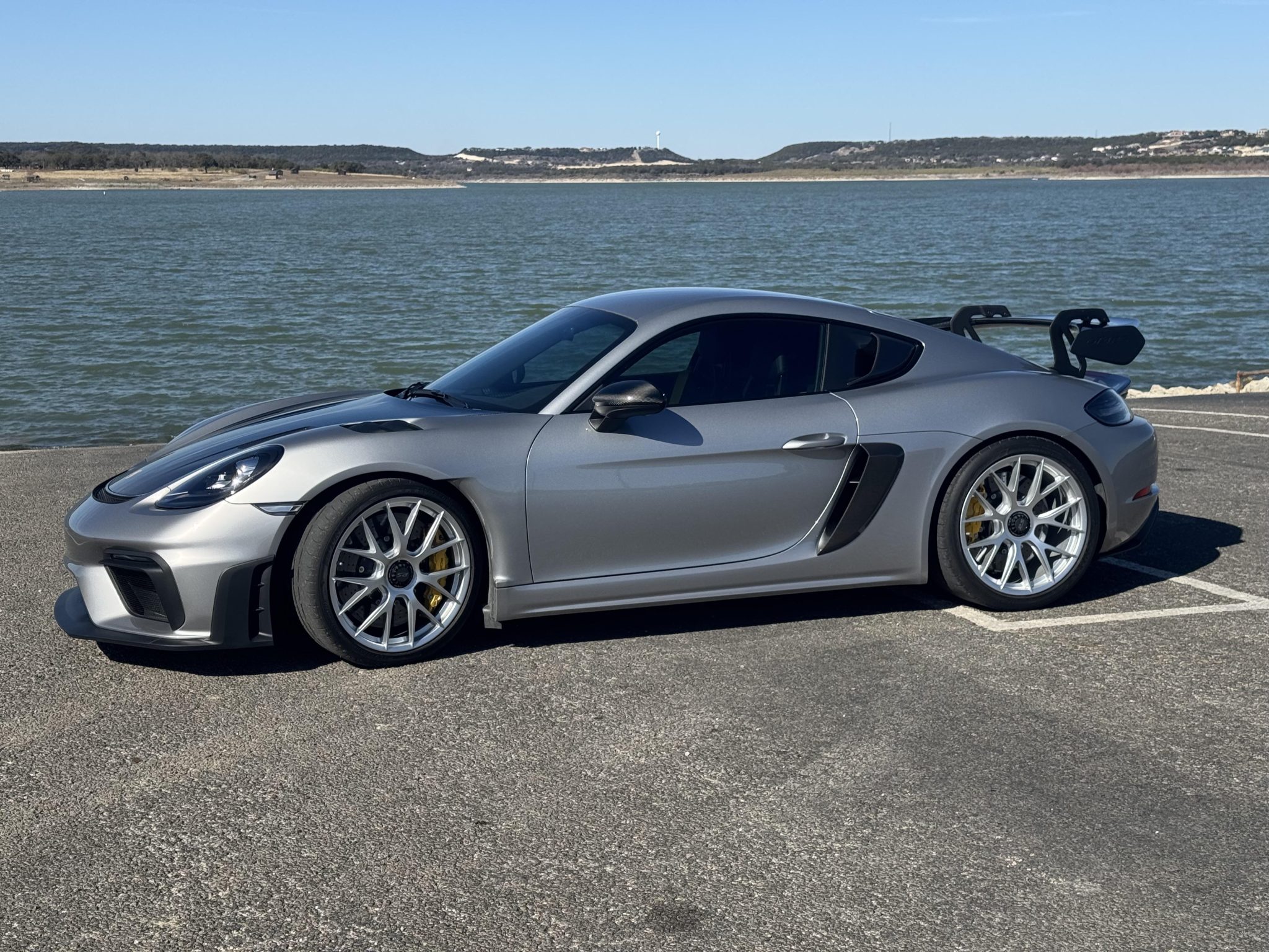 Silver-painted 20″ forged magnesium center-lock wheels were a $15,640 option and are mounted with Dunlop Sport Maxx Race 2 tires. A front-axle lift system was optioned from the factory as were Porsche Ceramic-Composite Brakes (PCCB) featuring yellow Porsche-branded calipers at all four corners.