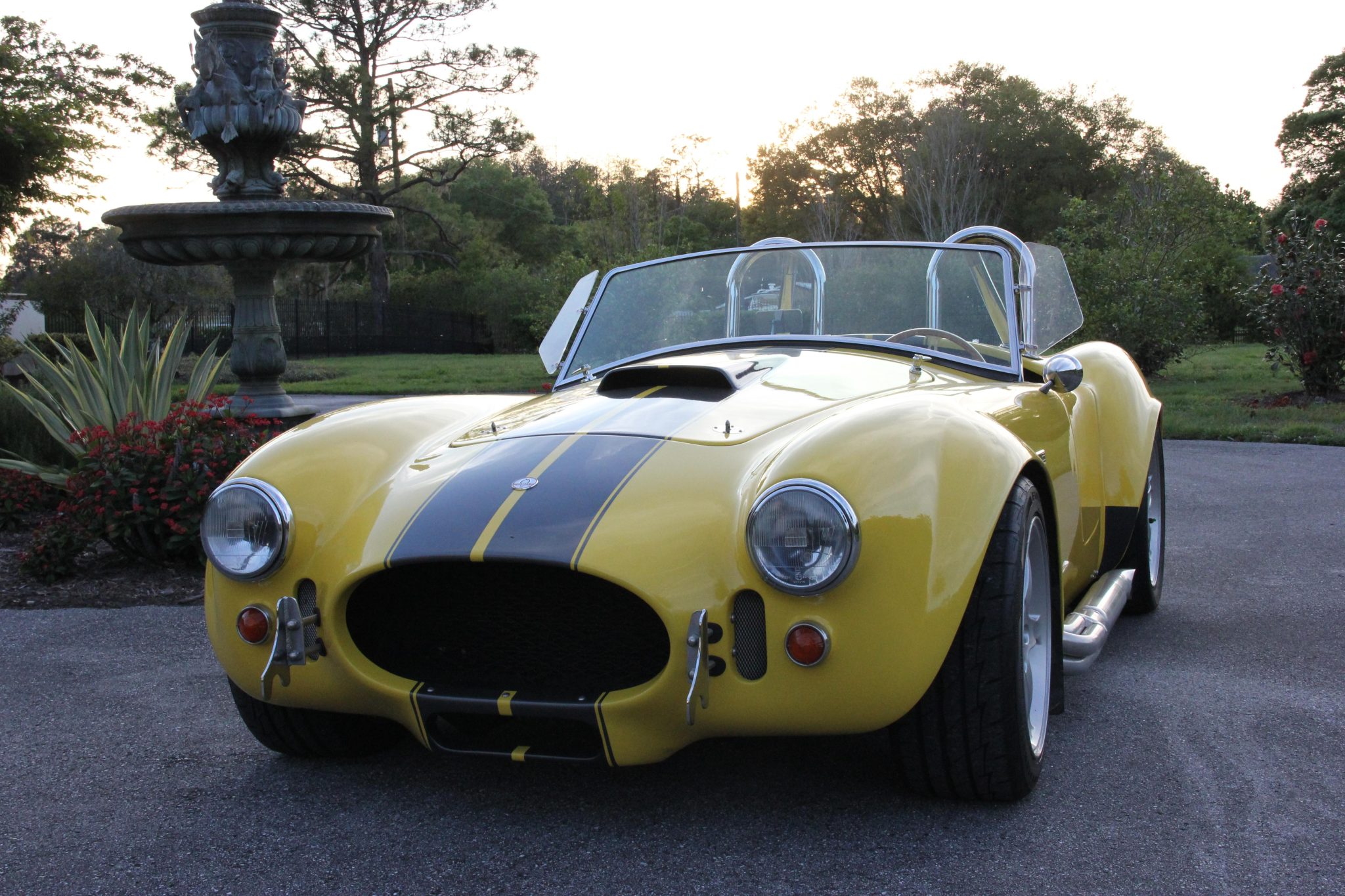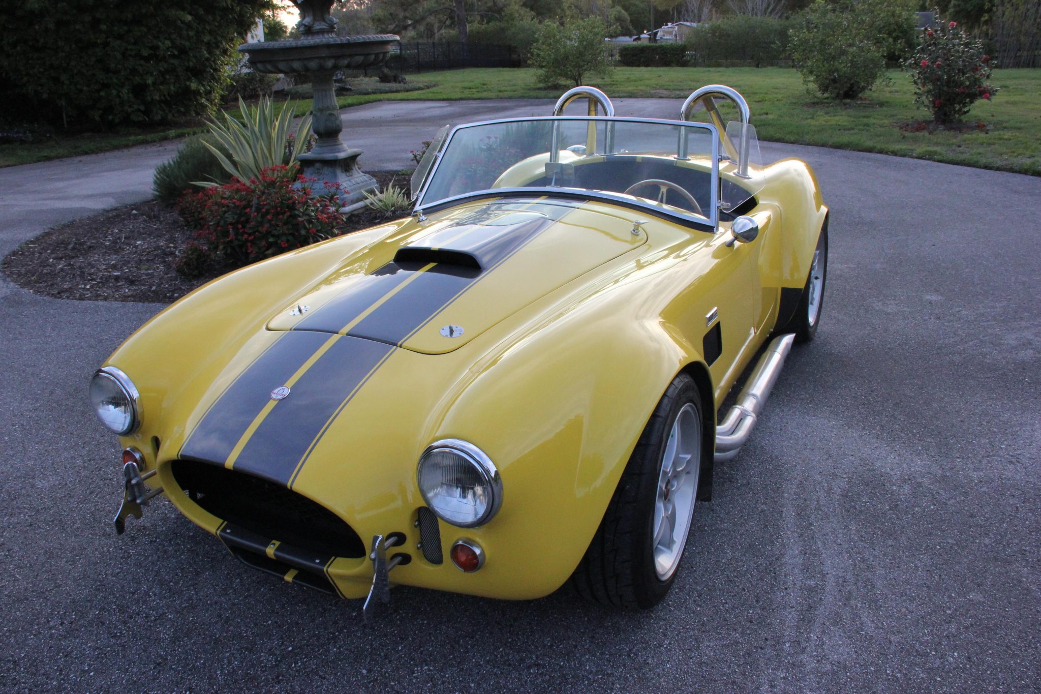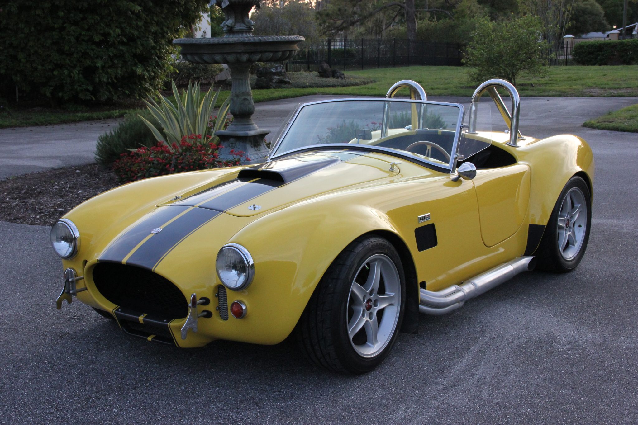 Silver-finished 17″ Cobra R-style wheels are mounted with 245/45 Firestone Firehawk front and 275/45 Toyo Proxes R888 rear tires. The car is equipped with a Flaming River 17:1 steering rack, a three-link rear suspension setup, and four-wheel coilovers with Bilstein shocks. Braking is handled by four-wheel discs featuring Baer cross-drilled rotors and Carbotech Super Sport brake pads.