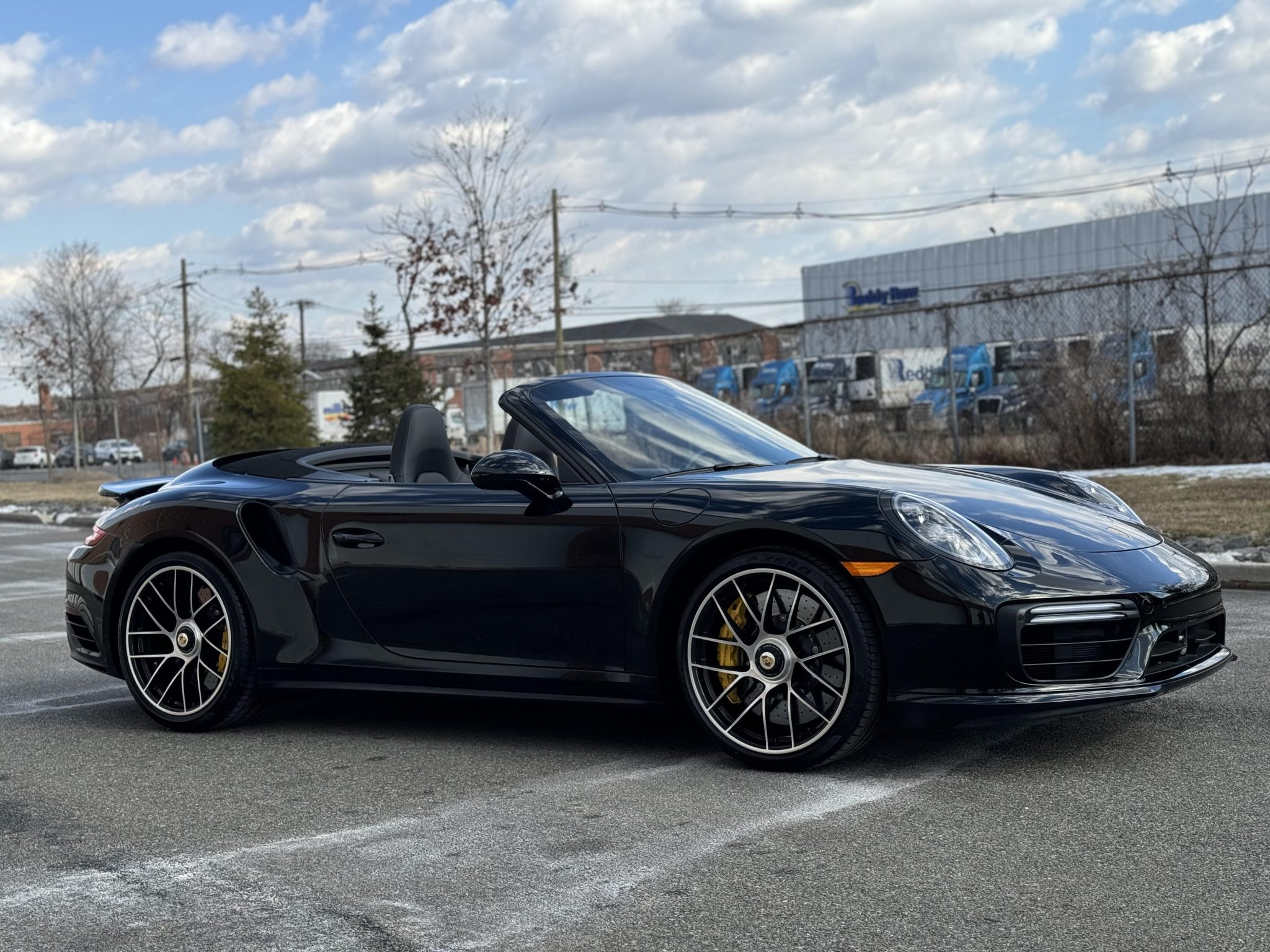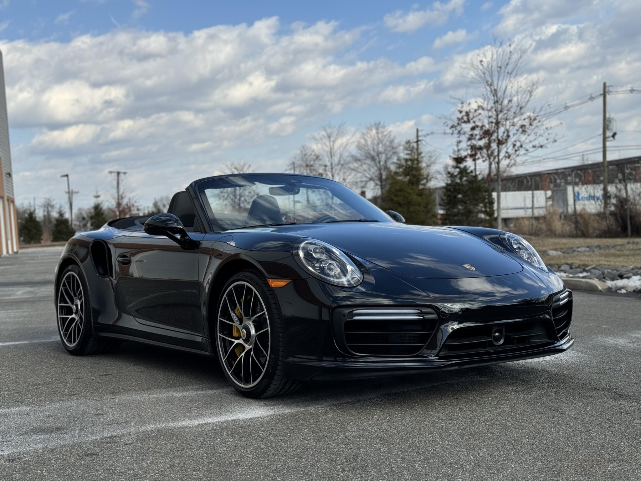 The 20″ Turbo S center-lock alloy wheels are mounted with 245/35 front and 305/30 rear Pirelli P Zero tires. Rear-axle steering and Porsche Dynamic Chassis Control (PDCC) were standard equipment on the Turbo S. The car is equipped with Porsche Dynamic Chassis Control (PDCC) as well as an optional front-axle lift system. Braking is handled by Porsche Ceramic Composite Brakes (PCCB) featuring yellow-painted Porsche-branded calipers at all four corners.