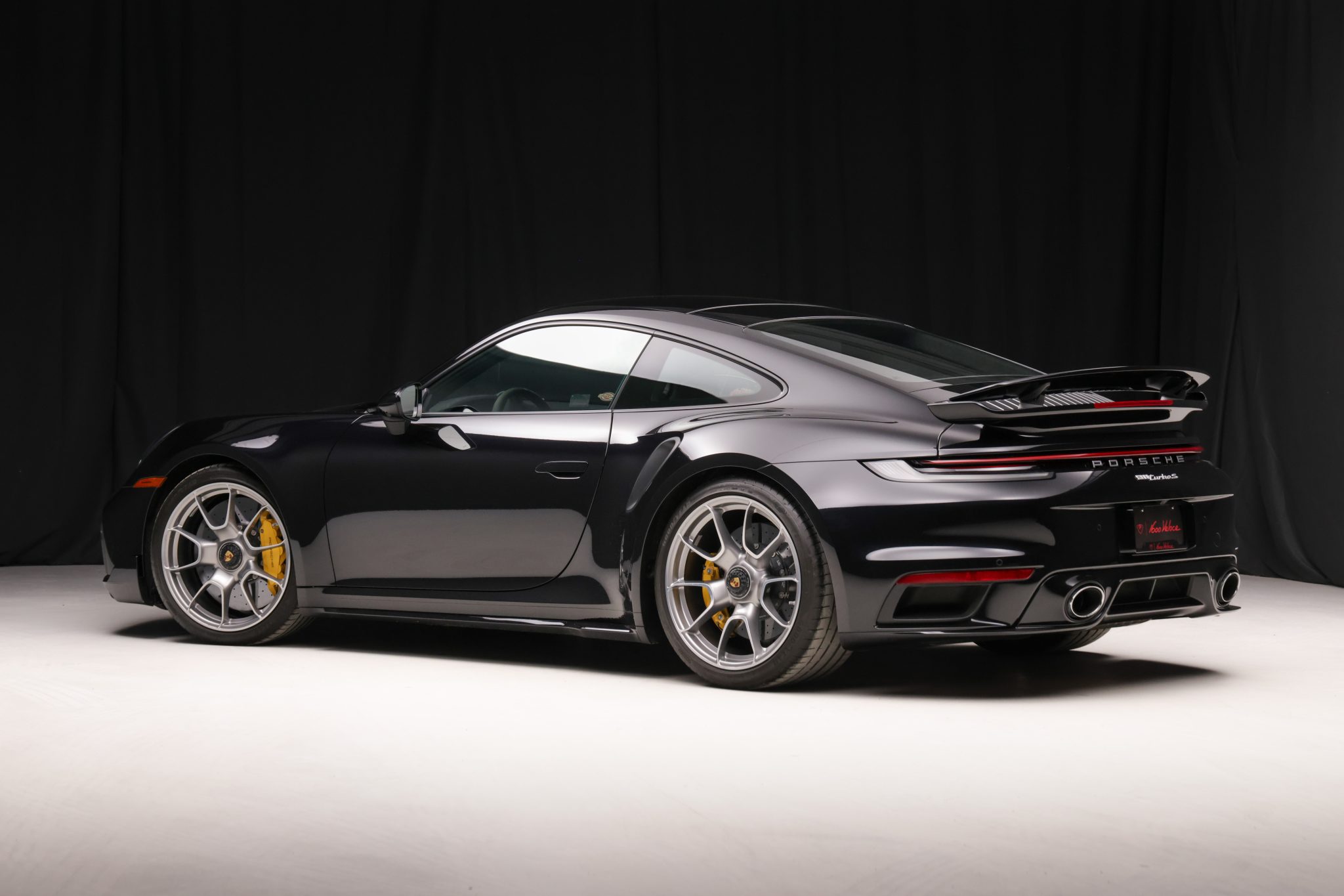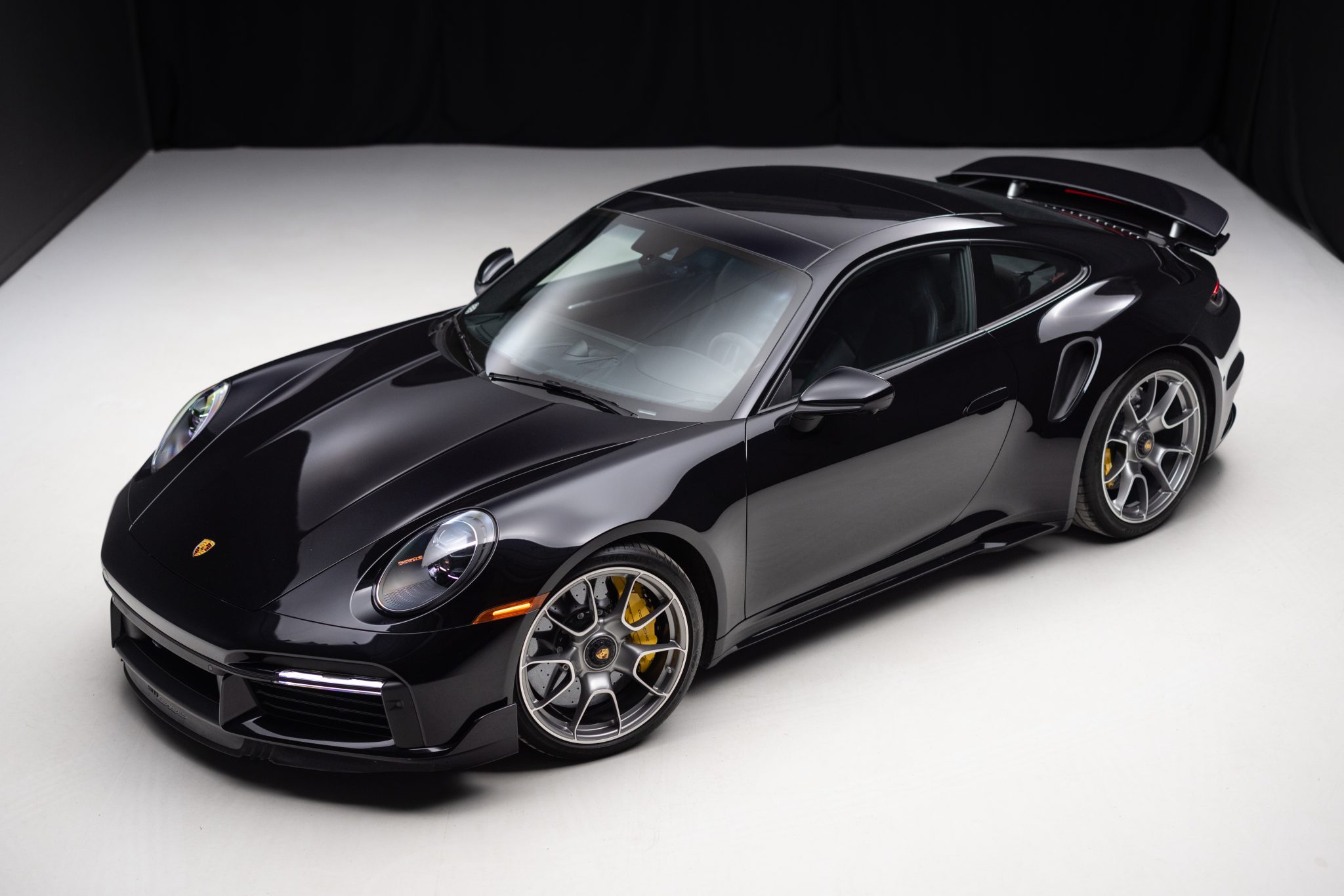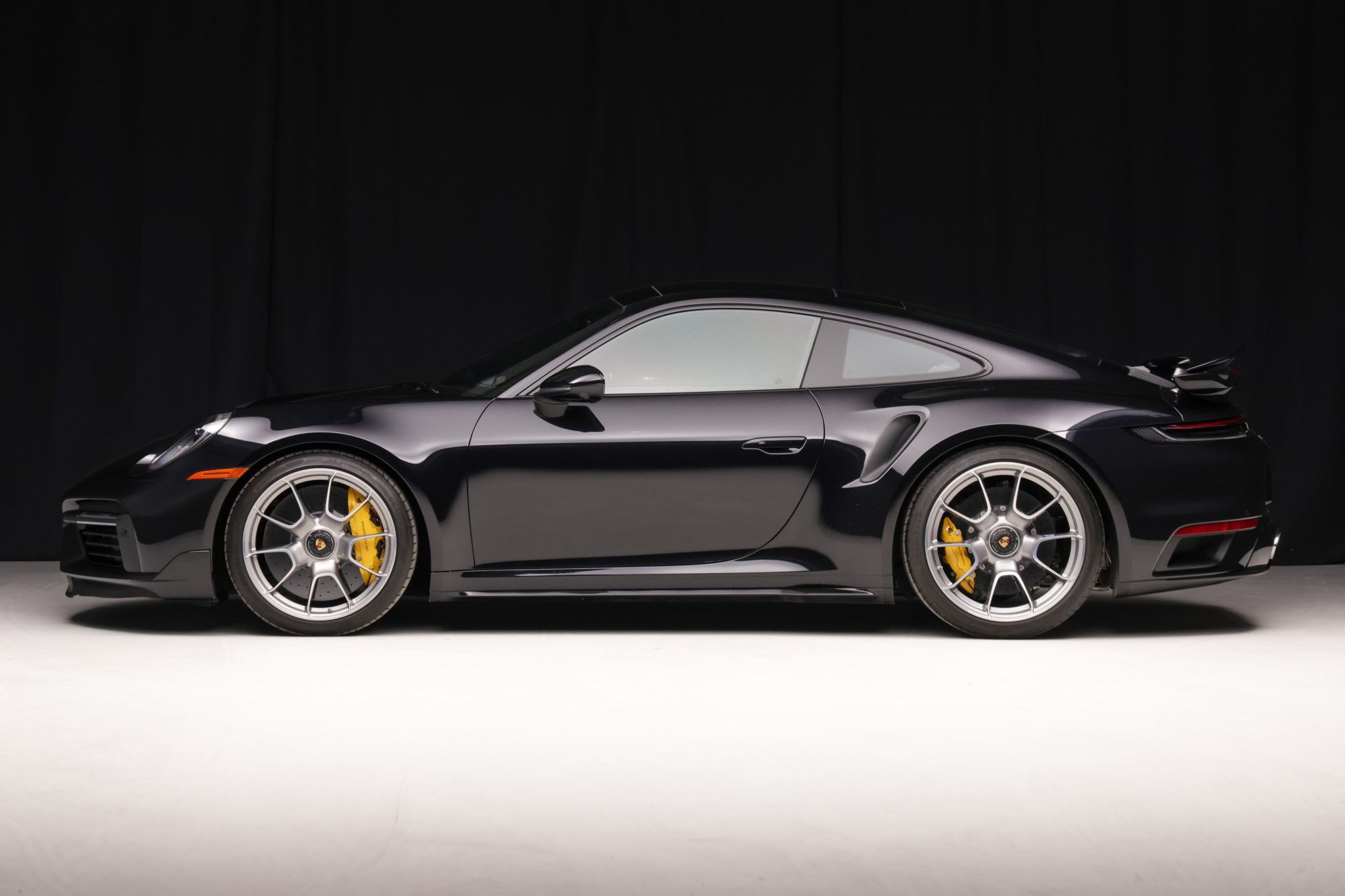 Center-locking 20″ and 21″ Turbo S Exclusive Design alloy wheels are mounted with Goodyear Eagle F1 Supersport tires. The car is equipped with a front-axle lift system, Porsche Active Suspension Management (PASM), and rear-axle steering. Stopping power is provided by Porsche Ceramic Composite Brakes (PCCB) with yellow-finished multi-piston calipers.