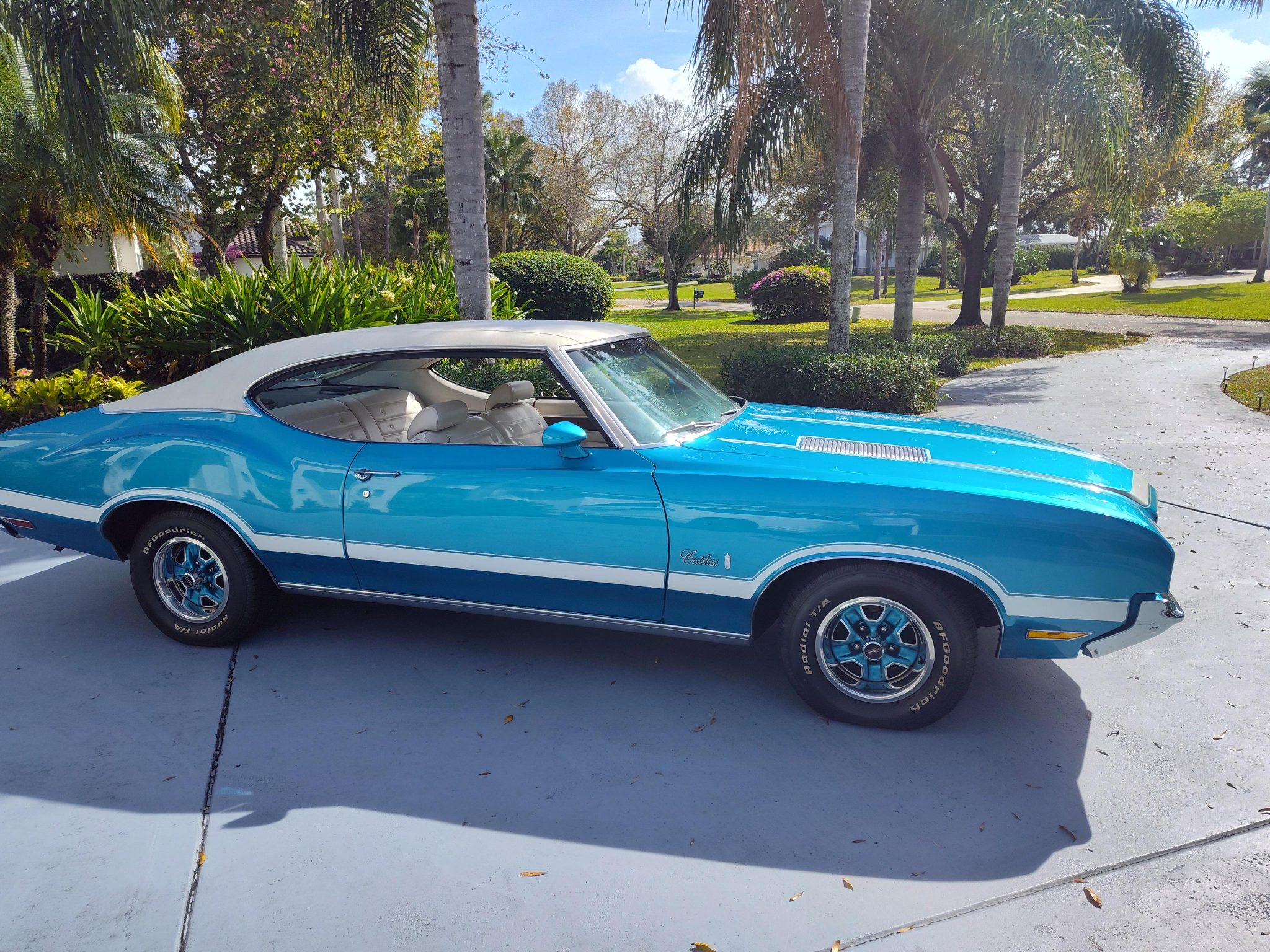 Blue-accented Super Stock III 14″ wheels are mounted with BFGoodrich Radial T/A tires measuring 225/70. The power-assisted braking system was converted to front discs under current ownership, according to the seller, and the brake master cylinder was replaced. The car is equipped with power steering.
