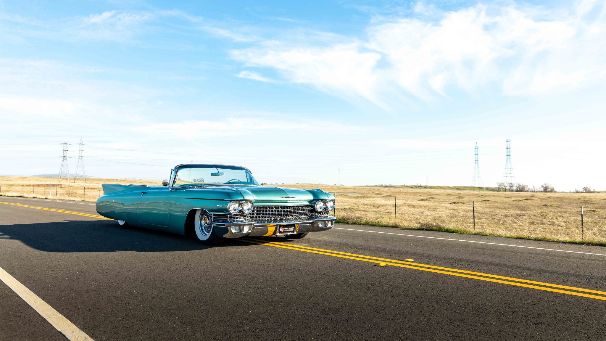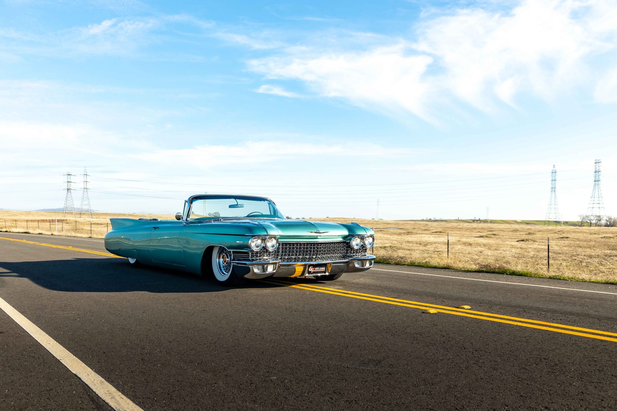 The car rides on 15″ chrome wire-spoke wheels mounted with BFGoodrich Silvertown whitewall tires as well as an air suspension with an AccuAir e-Level management system. Power steering was standard, and braking is handled by power-assisted drums at each corner.