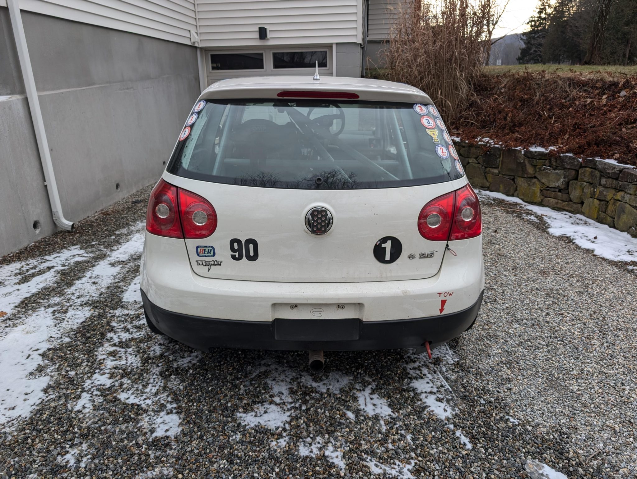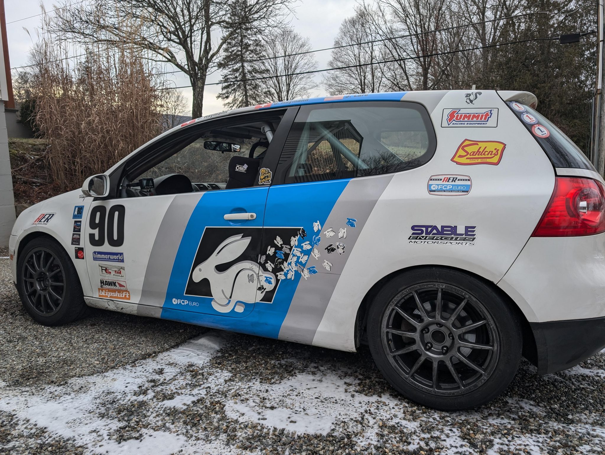 Team Dynamics Motorsport 17″ alloy wheels are finished in gloss anthracite and mounted with Hankook Ventus RS-4 tires, and the car weighs approximately 2,800 lbs.