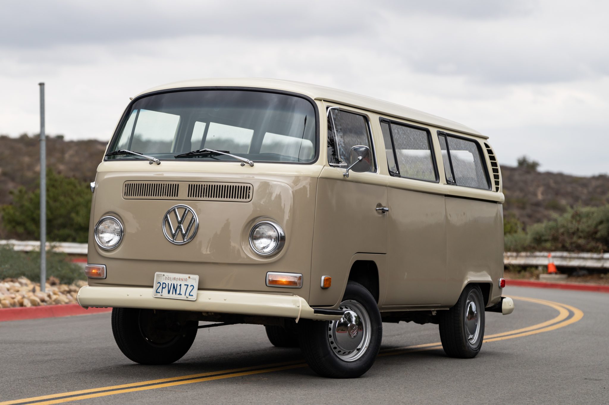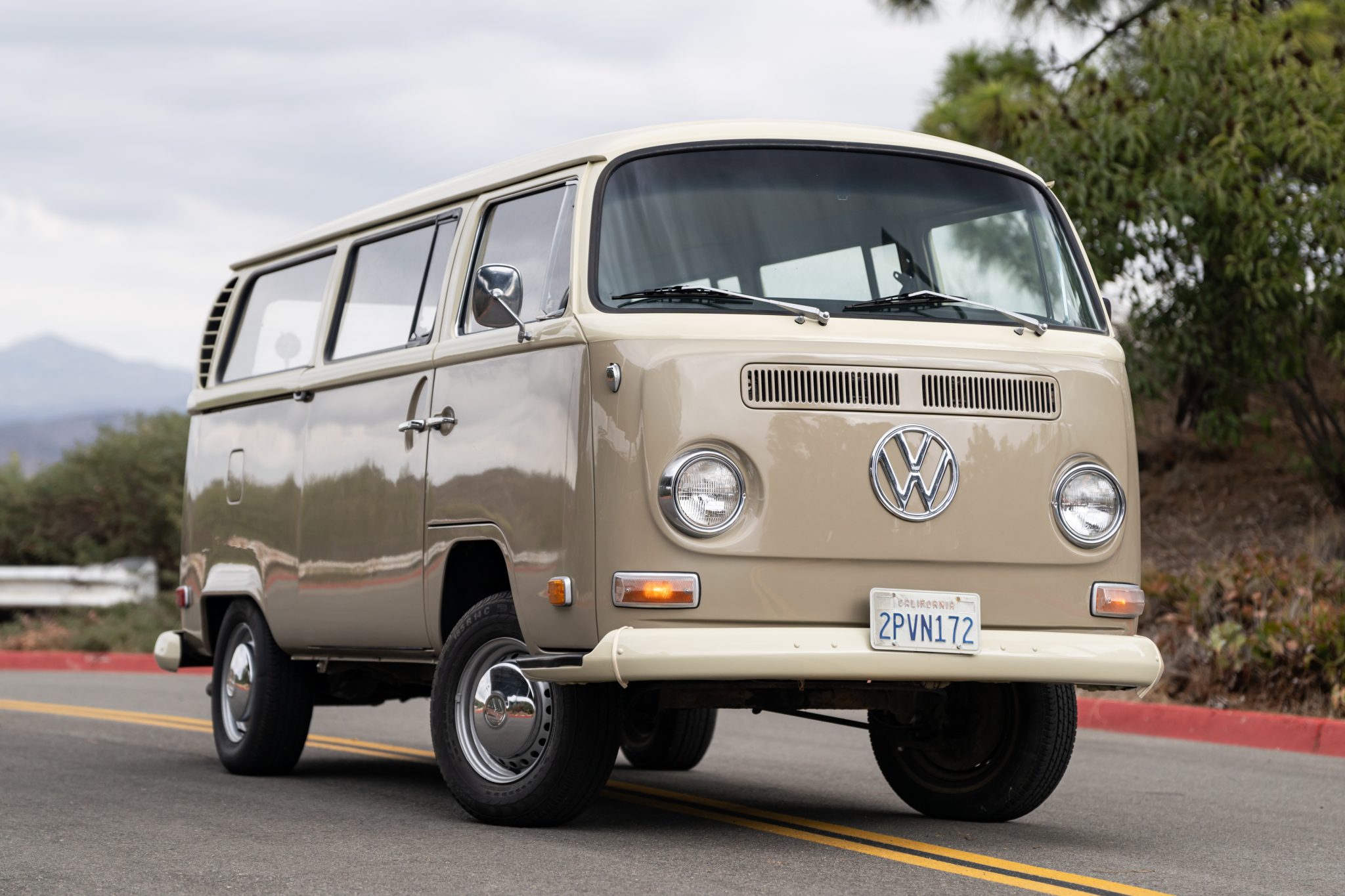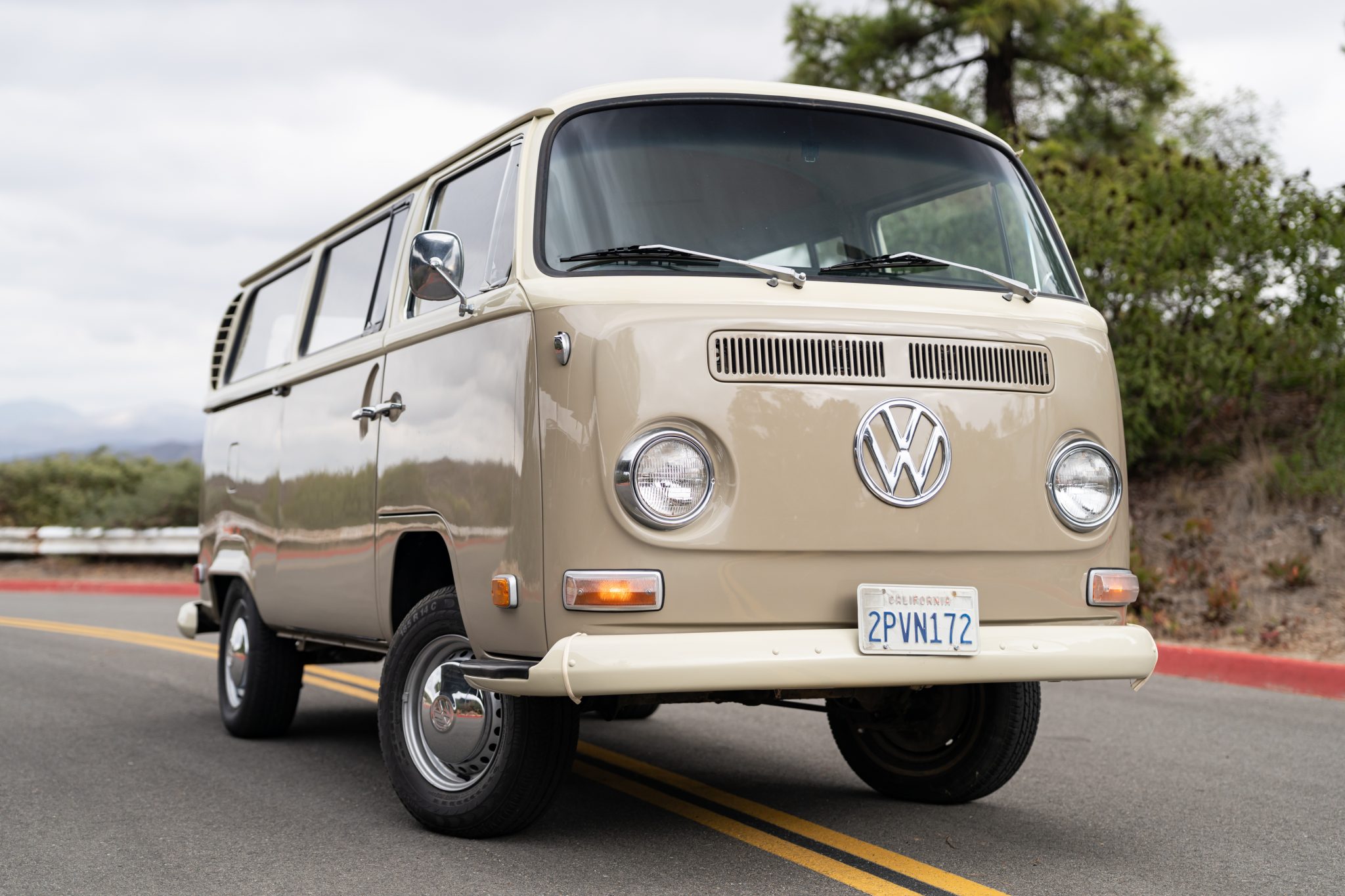 The 14″ steel wheels wear chrome VW-stamped hubcaps and are mounted with a mixed set of 195/75 tires, and a full-size spare is housed in the rear cargo area. Stopping power is provided by front disc and rear drum brakes.