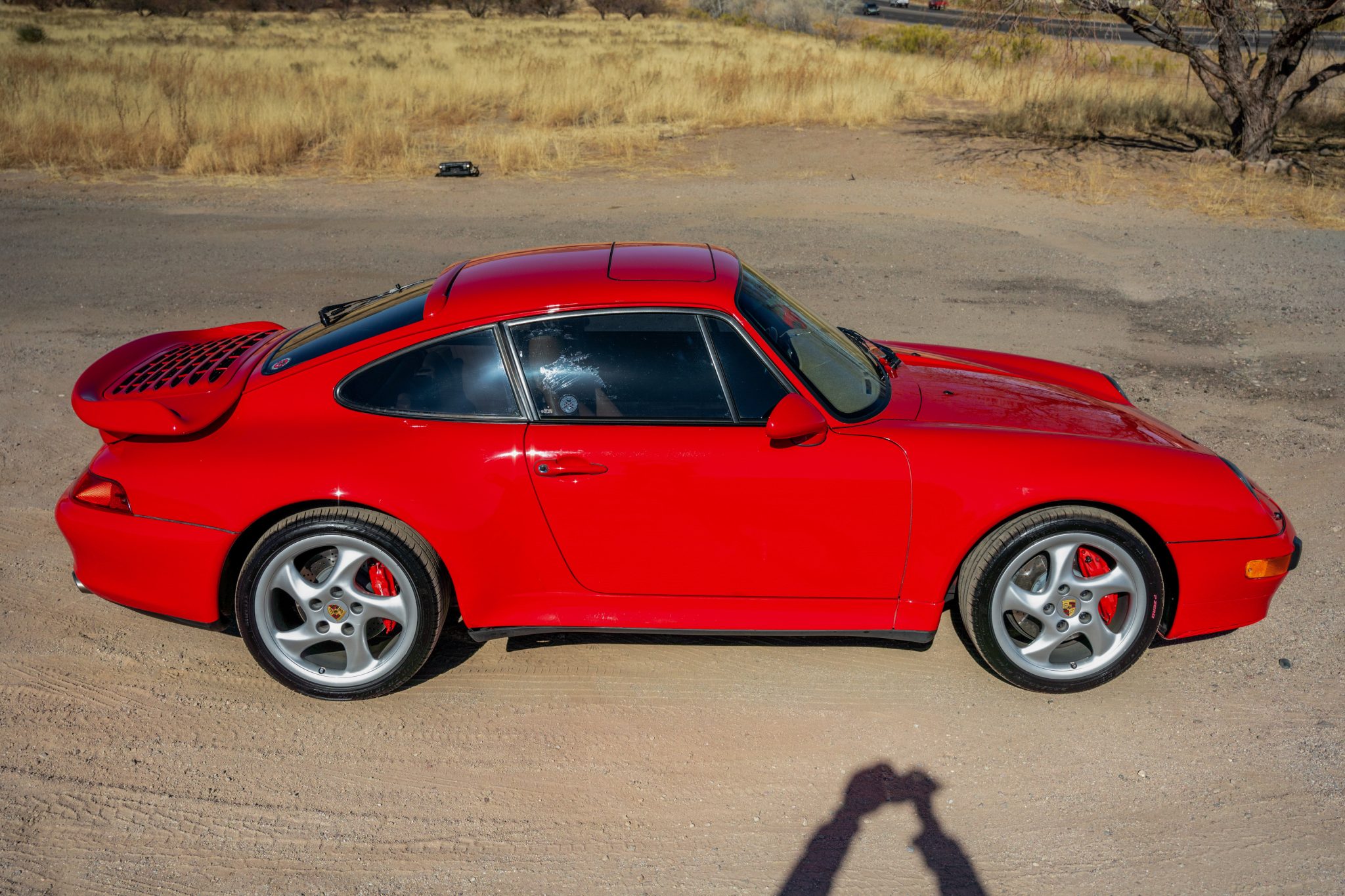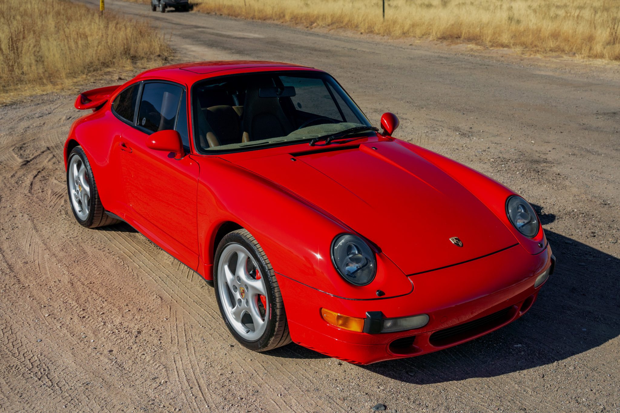 The 18″ Turbo wheels have hollow spokes. The car features an Automatic Brake Differential (ABD), and the 993 was the first 911 to feature multi-link rear suspension. Braking is provided by Porsche-branded four-piston calipers over cross-drilled rotors. The brake rotors, pads, and wear sensors were replaced in 2023.