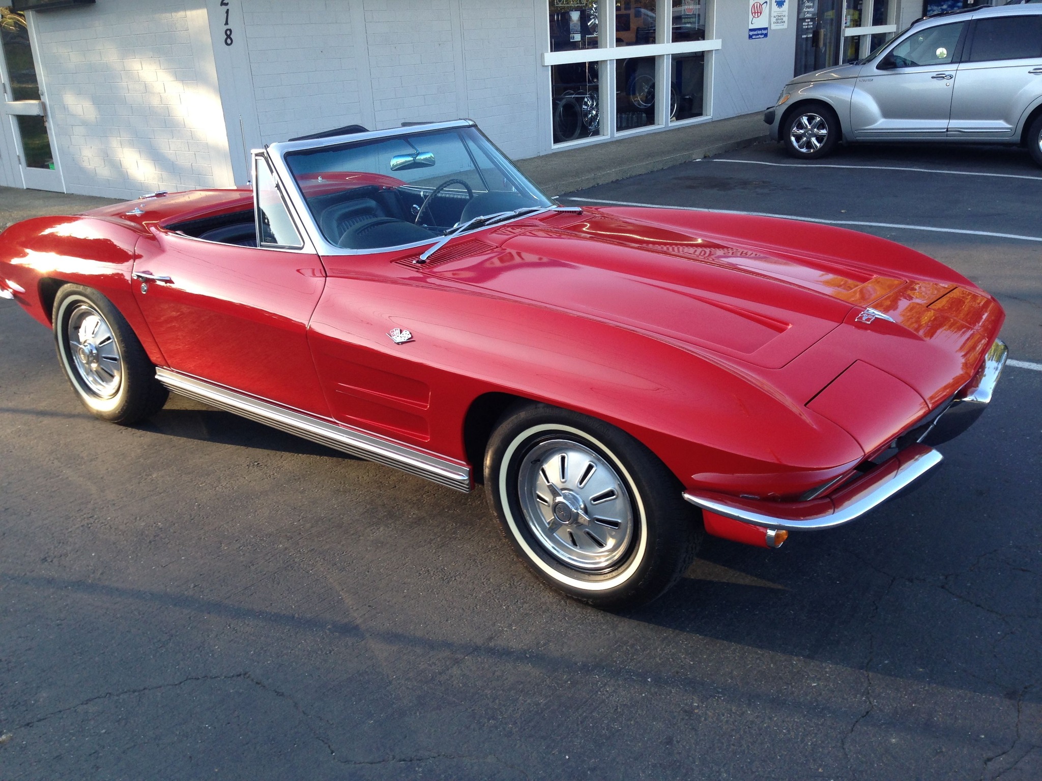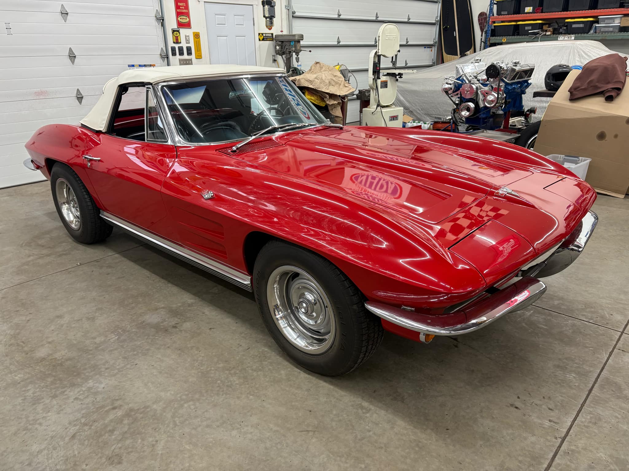 The 15” wheels are mounted with BFGoodrich tires, and this example was optioned with metallic brakes from the factory. The C2 was the first Corvette to offer fully independent suspension, with upper and lower control arms at the front and a three-link setup with a transverse leaf spring at the rear.