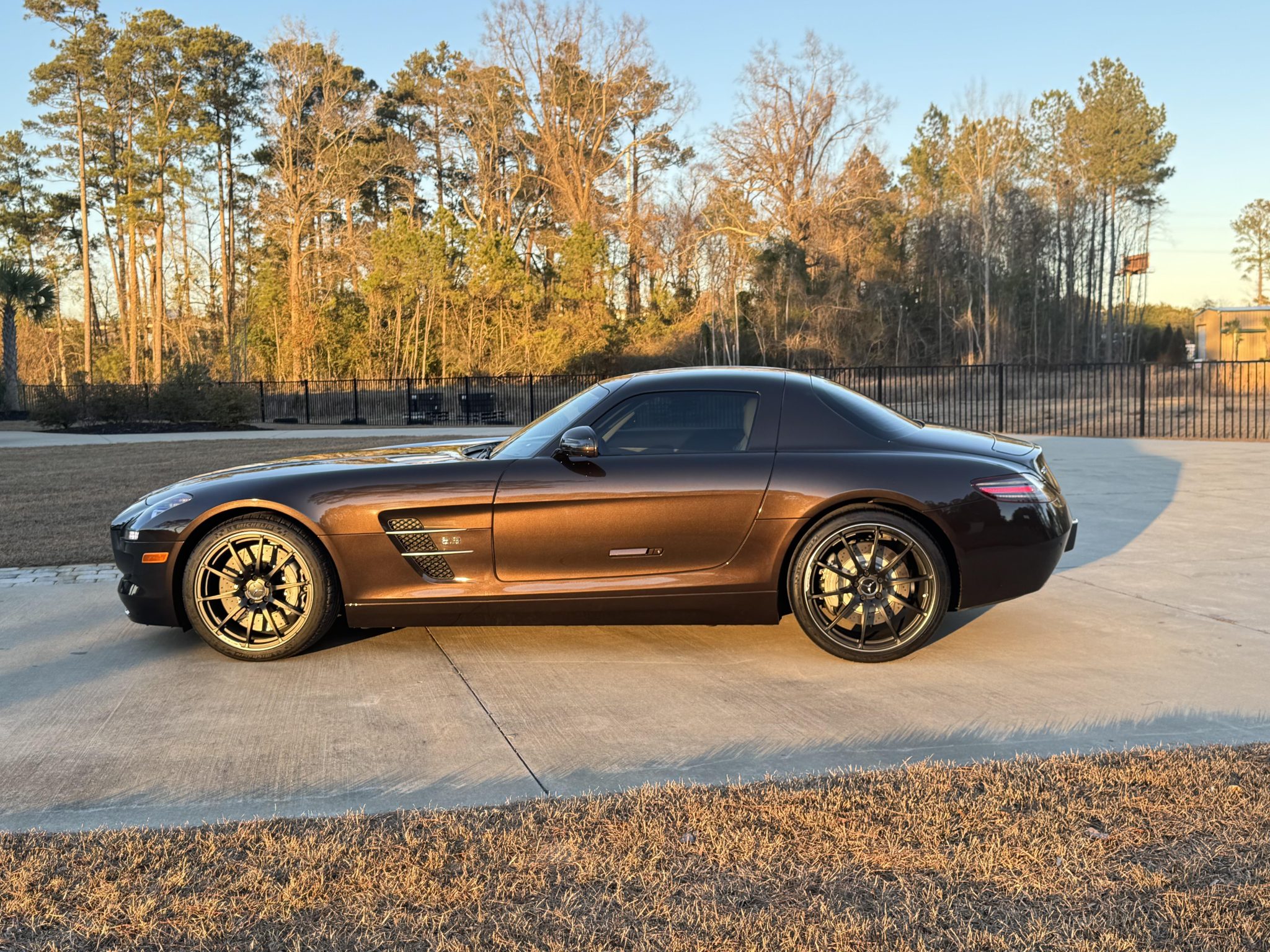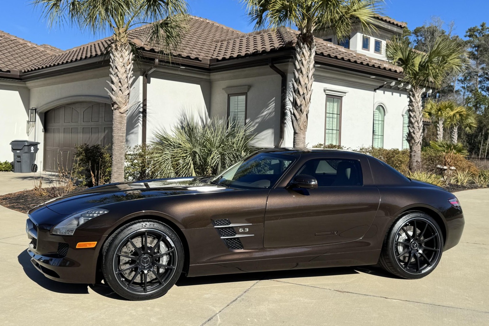 Staggered-width black 19″ and 20″ 10-spoke alloy wheels are mounted with Michelin Pilot Super Sport tires measuring 265/35 up front and 295/30 out back. Stopping power is provided by AMG-branded brake calipers over cross-drilled and slotted rotors at all four corners.