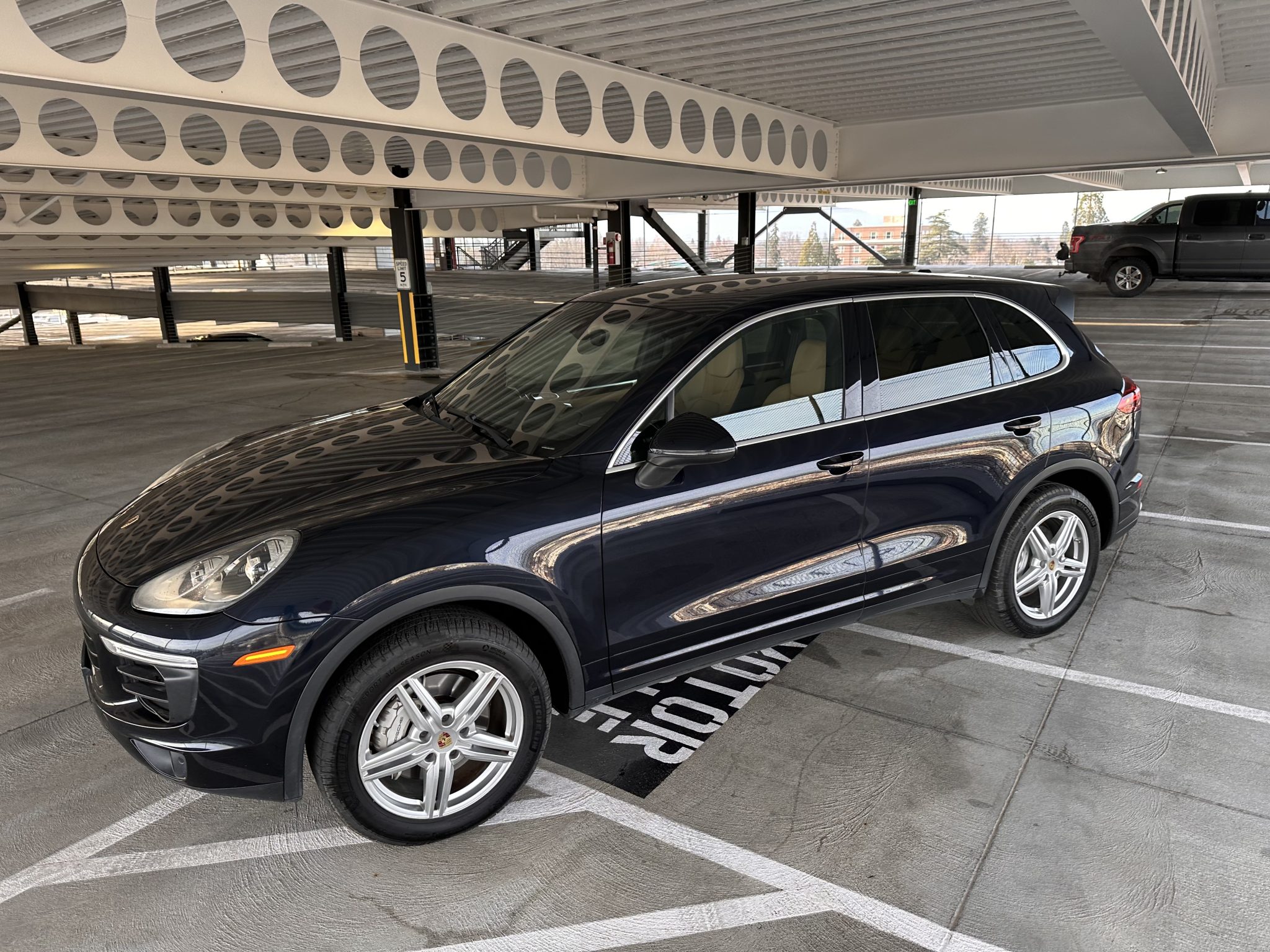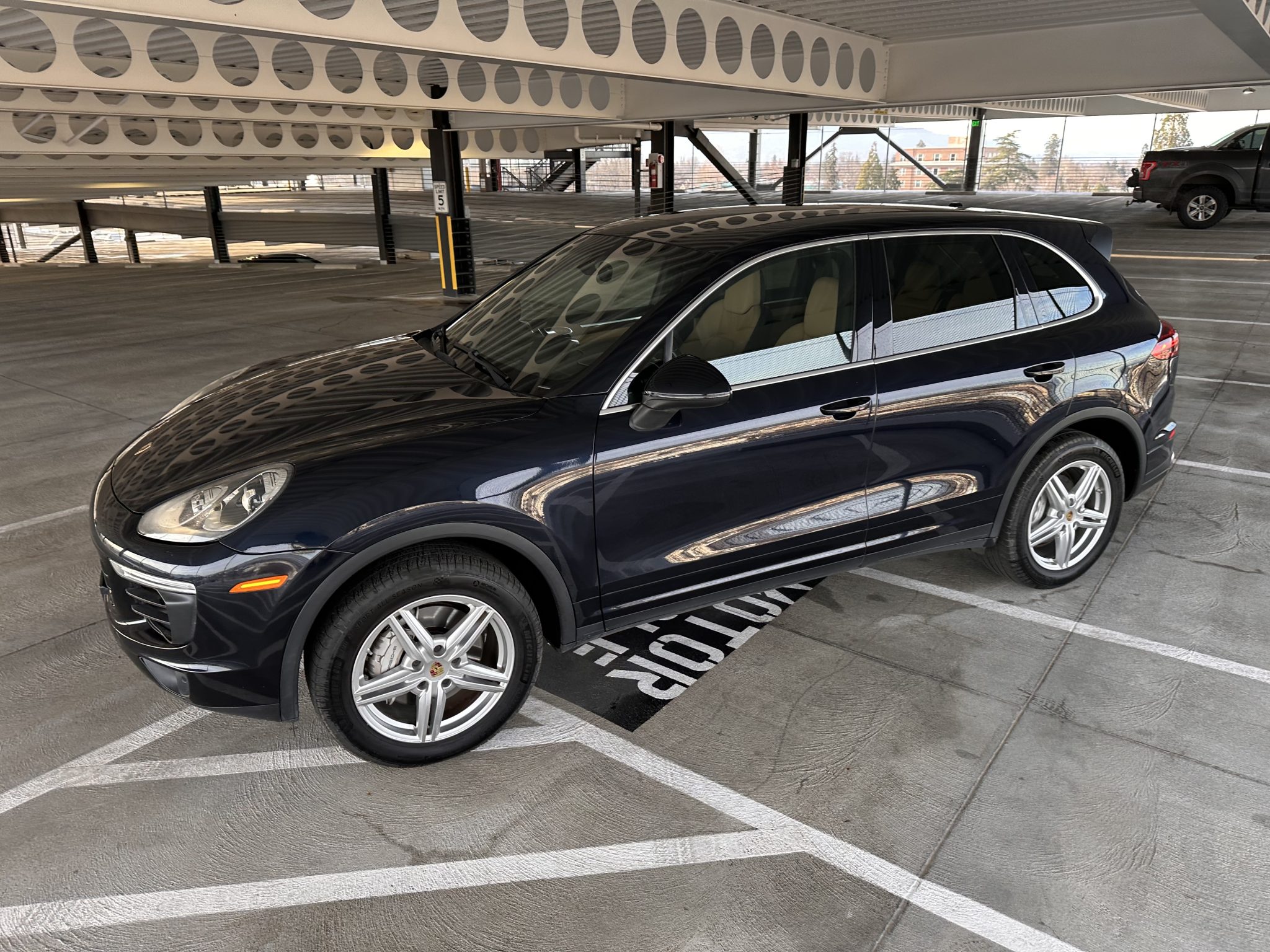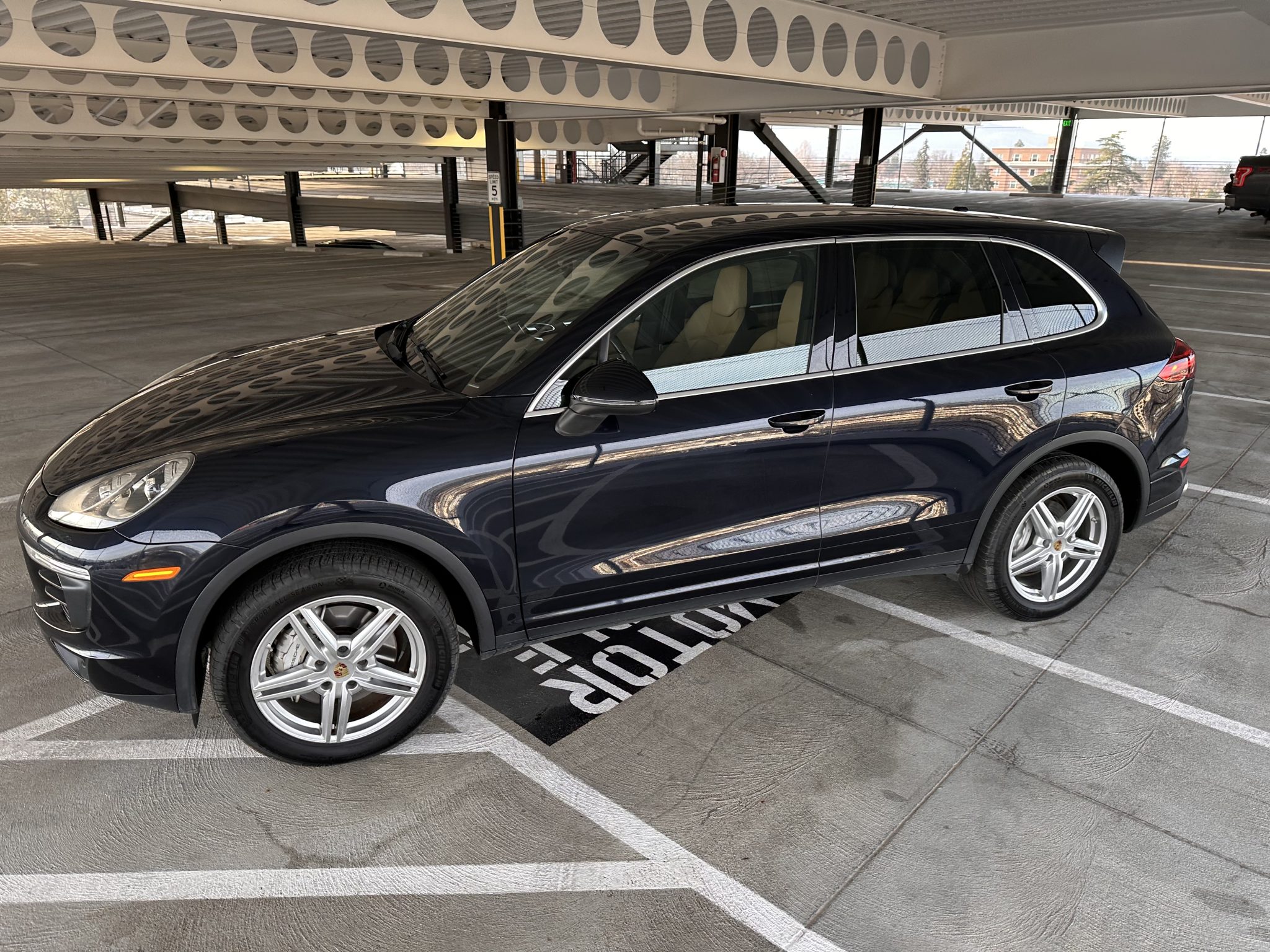 The 19″ Cayenne Design II alloy wheels are mounted with 265/50 Michelin Pilot Sport All Season 4 tires. Stopping power is provided by six-piston front and four-piston rear brake calipers over ventilated rotors at each corner. The brake pads were replaced in March 2023.