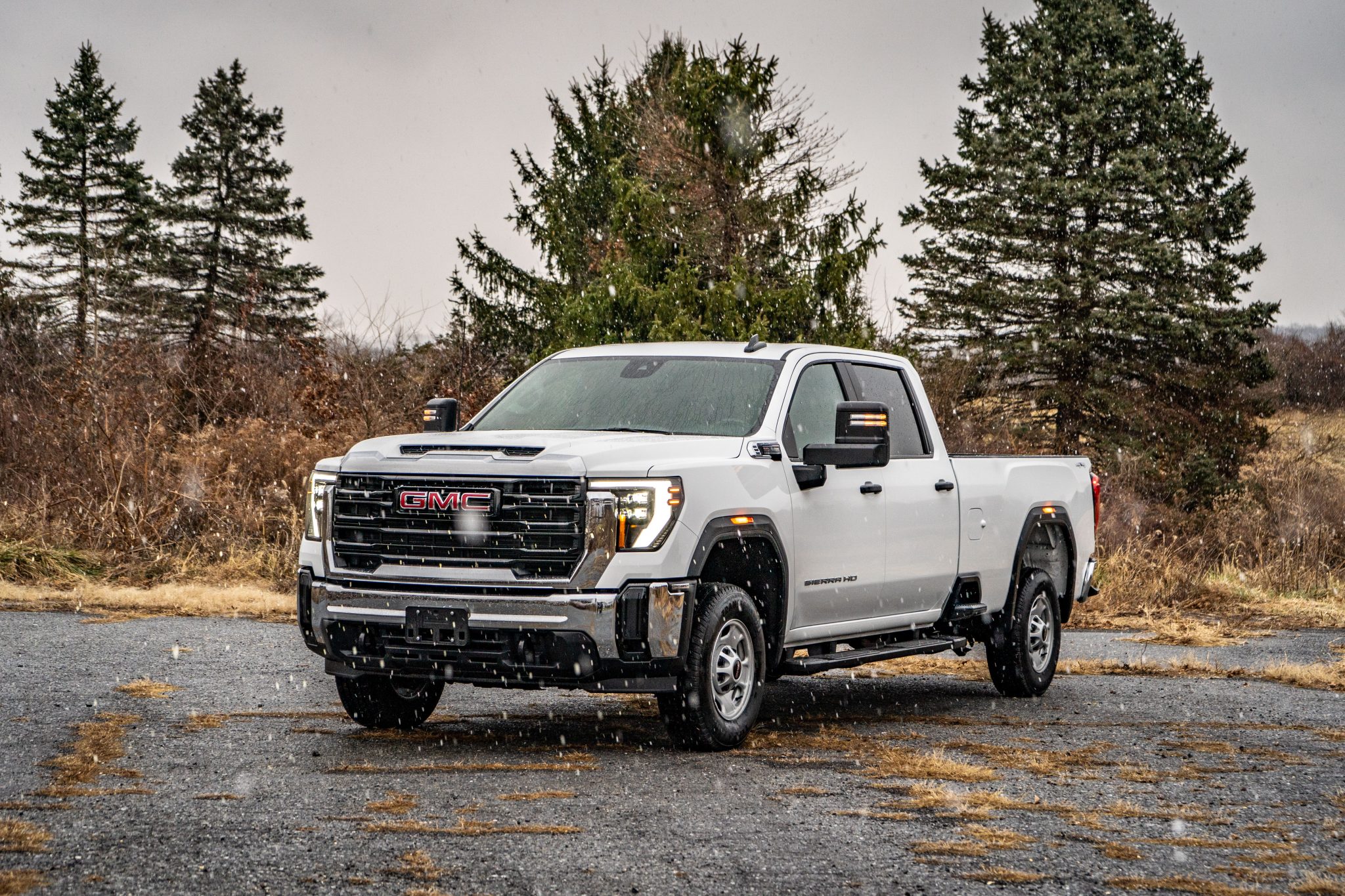 Silver-finished 17″ steel wheels are mounted with 245/75 Firestone Transforce HT tires. Braking is from four-wheel discs.