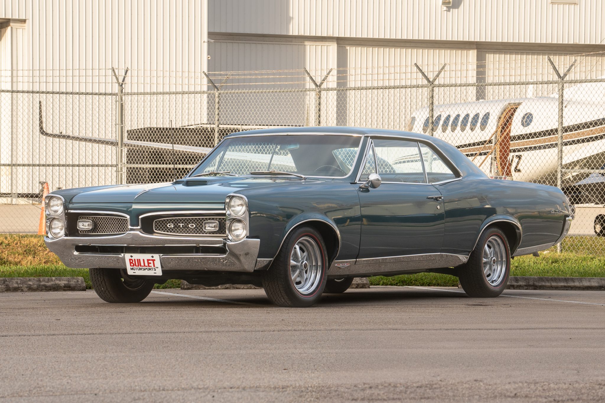 Rally II-style wheels feature chrome accents and are mounted with BFGoodrich Silvertown Radial red-line tires. The car is equipped with power steering and a stabilizer bar, and stopping is provided by power-assisted front disc and rear drum brakes. The steering box was rebuilt and the associated coupling was replaced in December 2024.