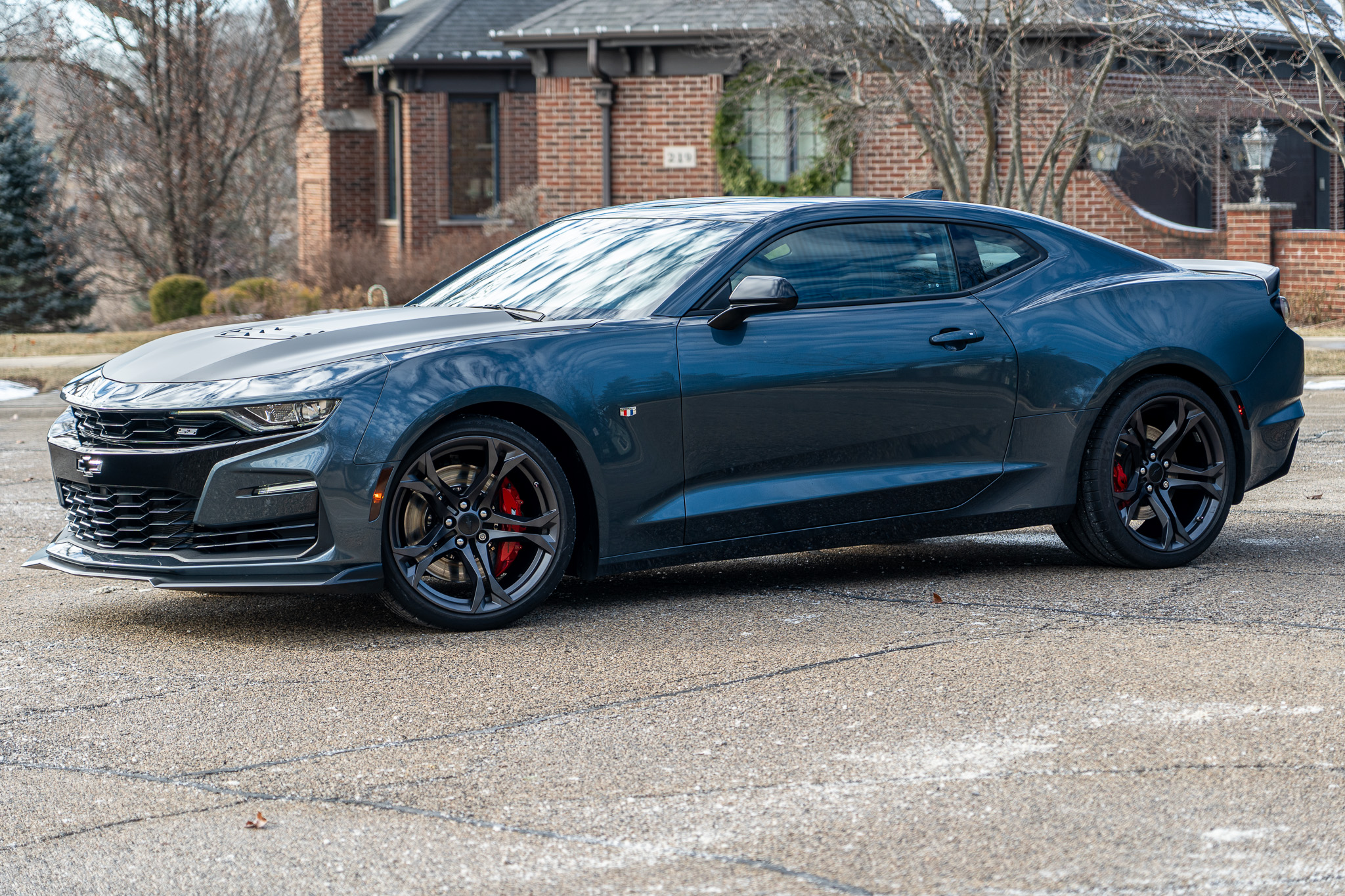 Dark gray 20″ split five-spoke forged aluminum wheels were mounted with 285/30 front and 305/30 rear Michelin Pilot Super Sport tires in May 2022. The car came equipped from the factory with a Magnetic Ride Control suspension, and stopping power is provided by ventilated Brembo front and performance rear discs.