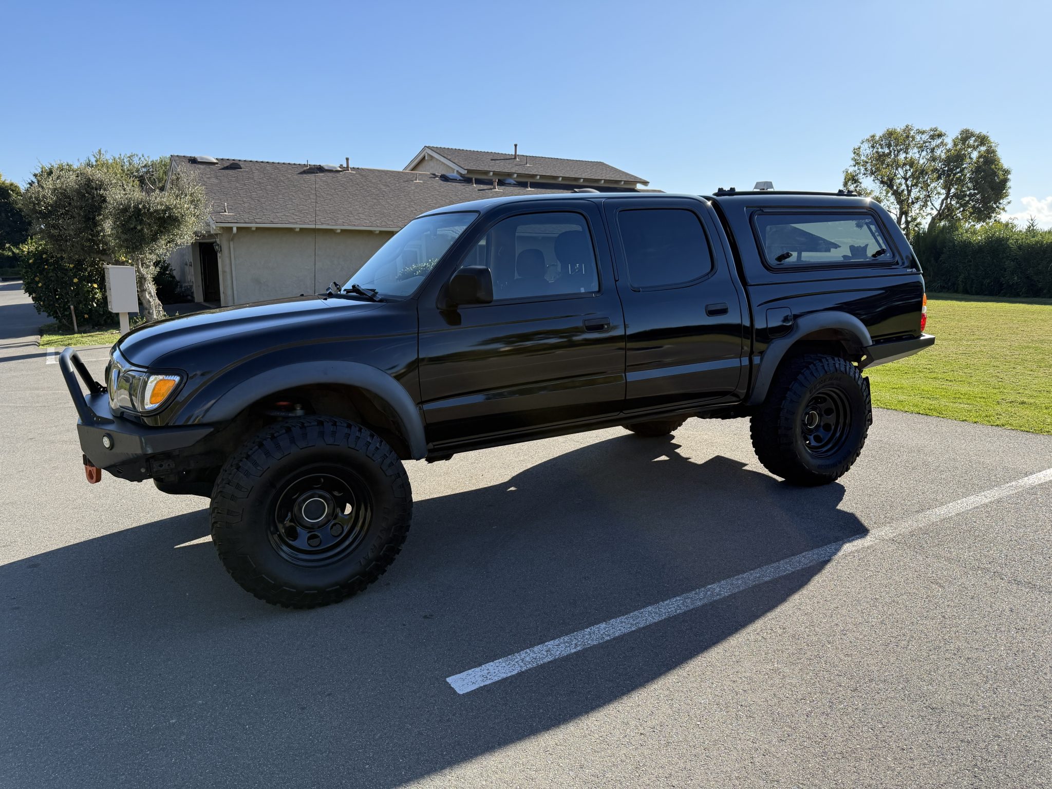 Black-finished 16″ Pro Comp 97 wheels are mounted with 285/75 General Grabber X3 tires. Braking is handled by front discs and rear drums. A Toytec Aluma Series 3″ lift kit was fitted under current ownership along with Old Man Emu rear springs and Total Chaos Fabrication upper control arms. The front brake calipers were replaced in 2022.
