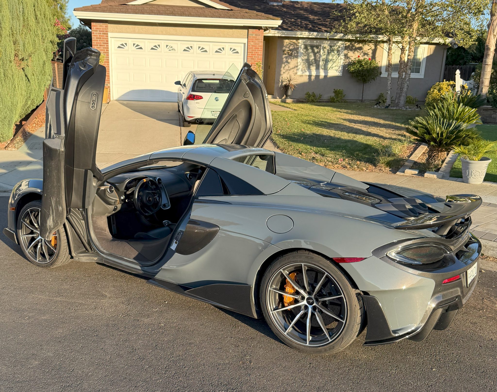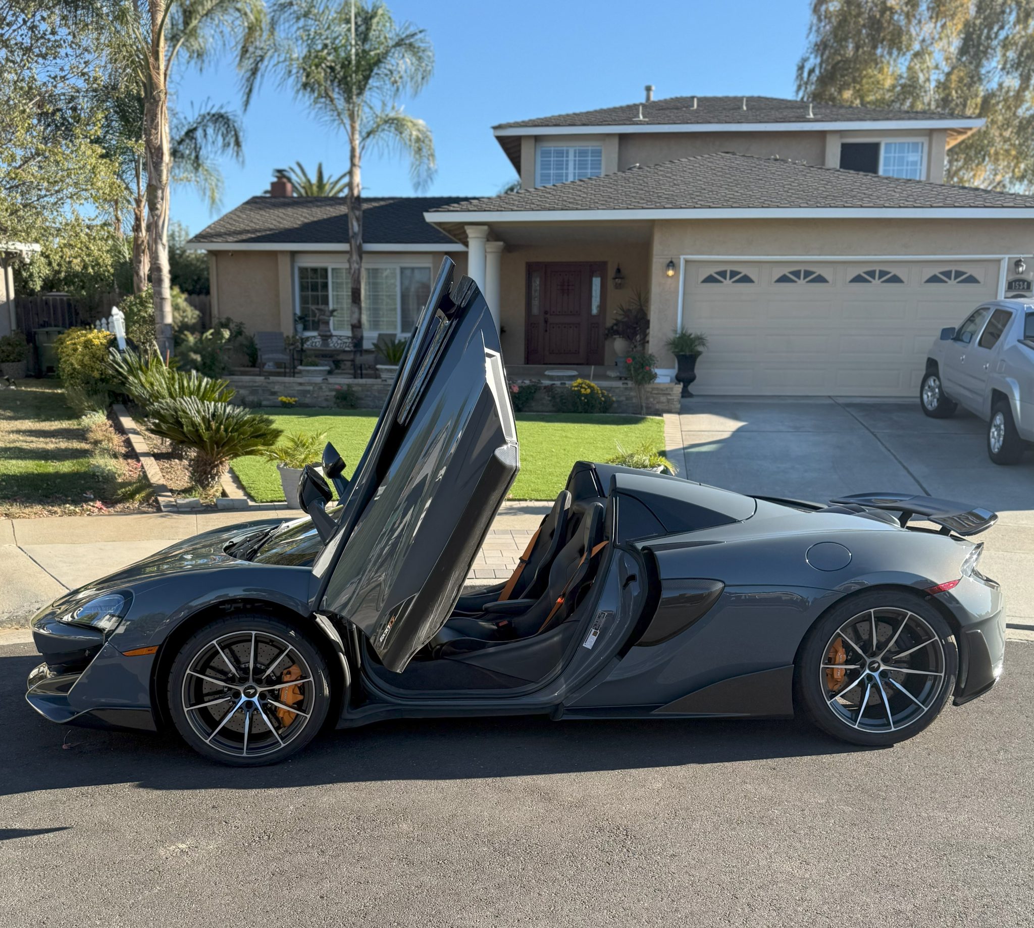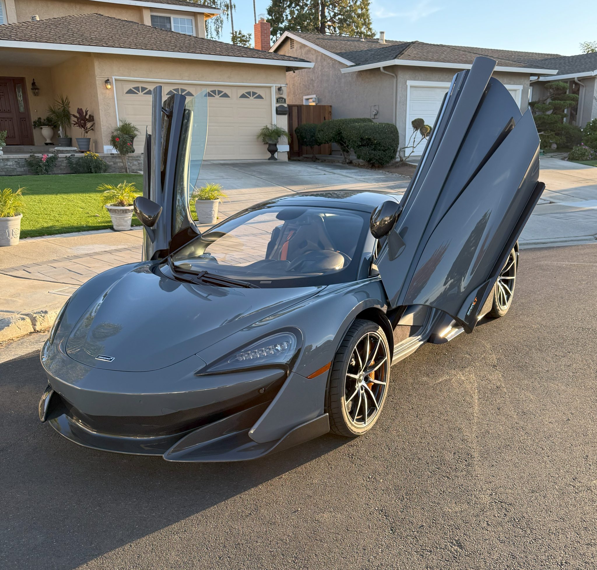 The 19″ and 20″ ten-spoke wheels are mounted with 235/35 front and 295/35 Nitto NT555 G2 tires. Braking is handled by orange-finished calipers fitted over cross-drilled carbon-ceramic rotors. The car features a double-wishbone independent suspension with McLaren Adaptive Damping as well as an optional front-axle lift system.