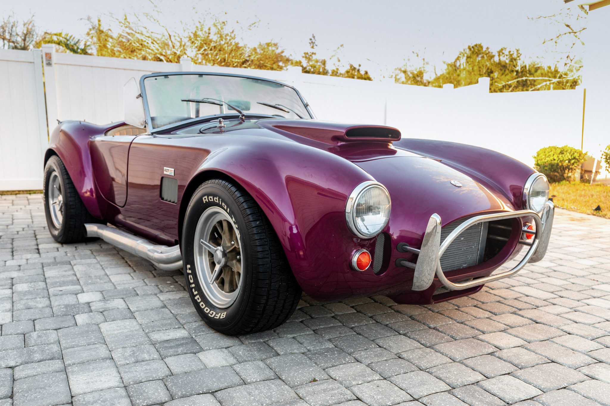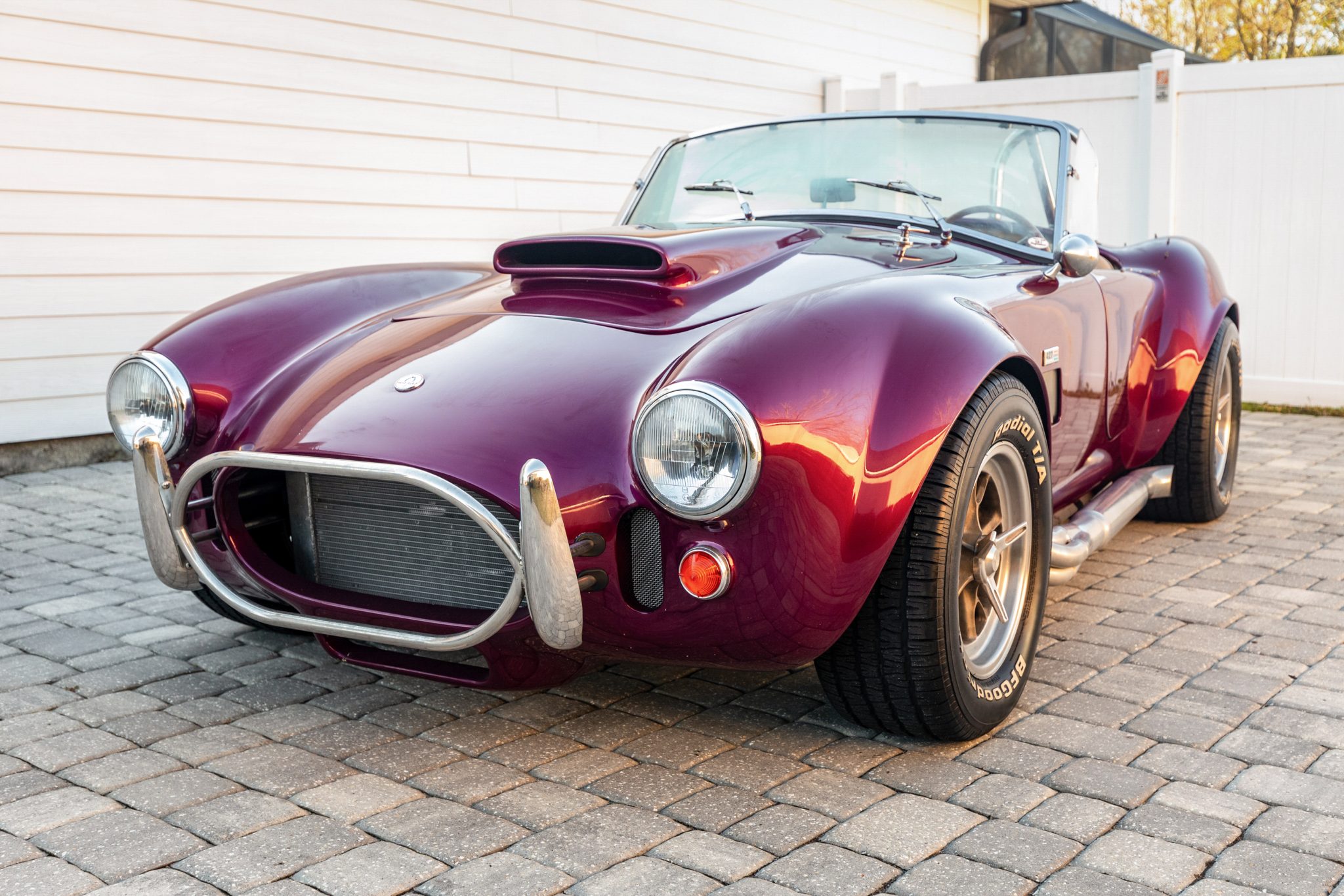 The 15″ Halibrand-style wheels wear faux three-eared spinners and are mounted with BFGoodrich Radial T/A tires. The car is equipped with power steering, a Mustang II front end, and a five-link rear setup with adjustable coilovers. Stopping power is provided by a dual-circuit master cylinder feeding four-wheel discs. Service in 2021 consisted of replacing the rear brake calipers, rotors, and pads.