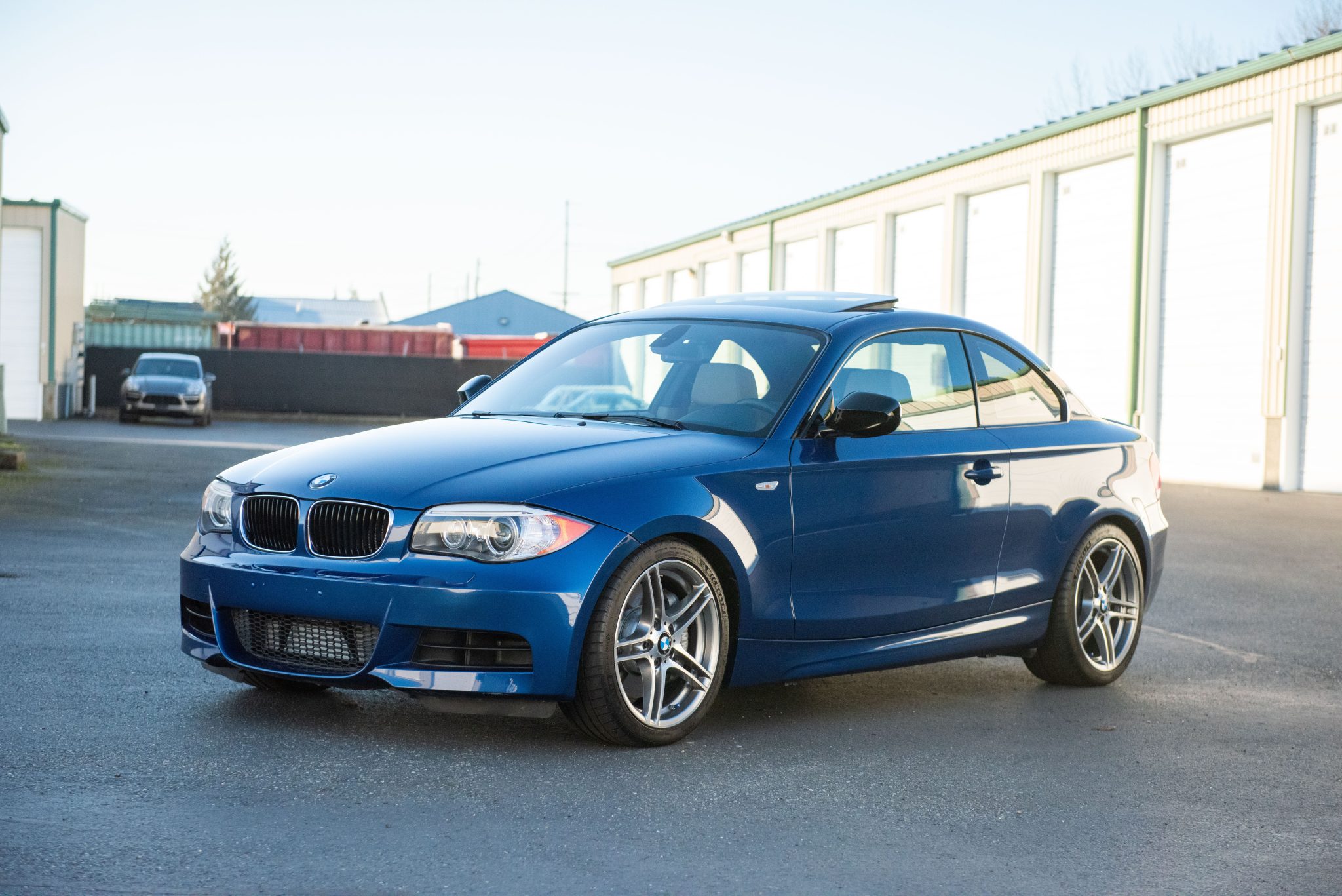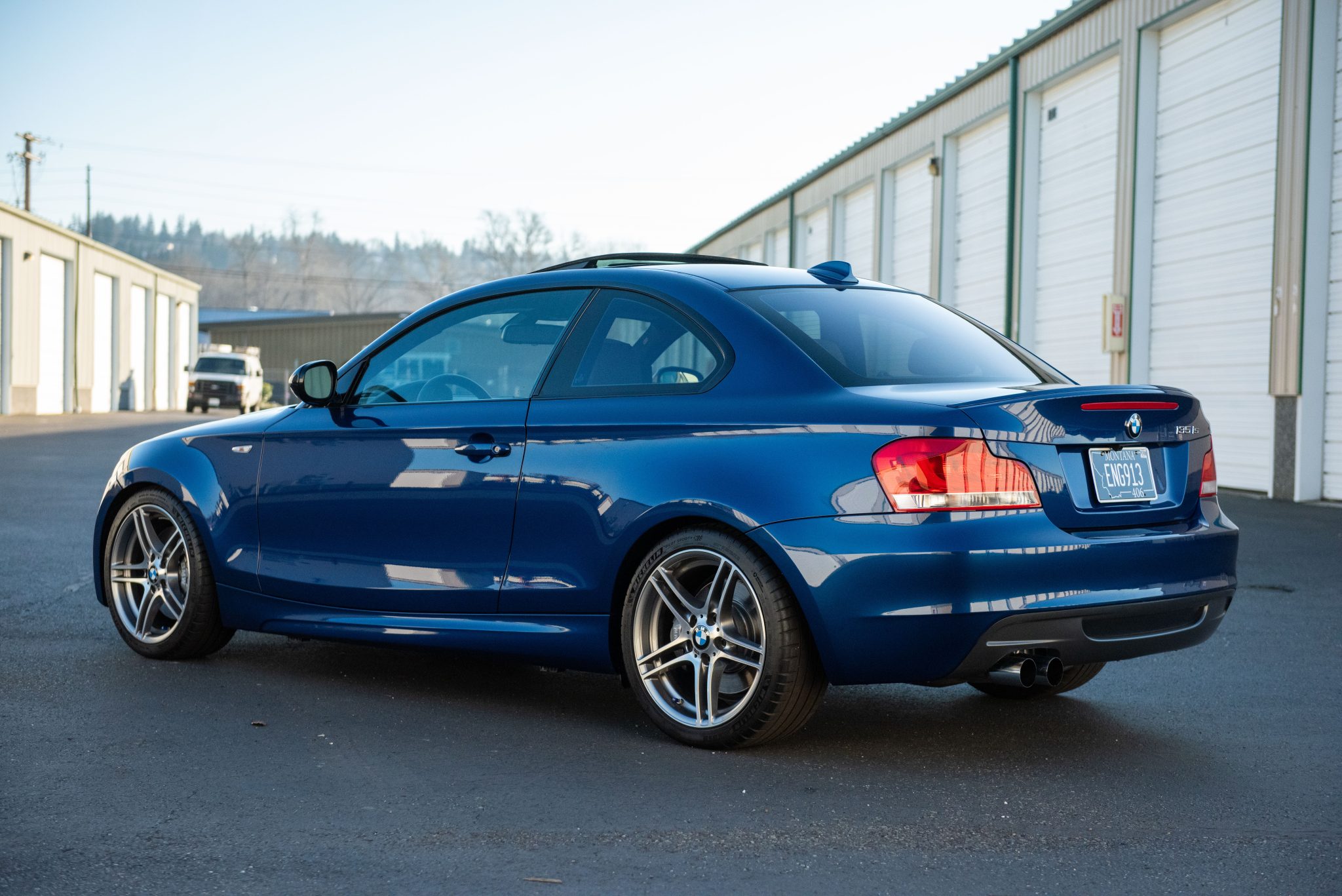 The 18″ Style 313M alloy wheels are mounted with 225/40 front and 255/35 rear Michelin Pilot Sport 4S tires. The car is equipped with an M Sport suspension as well as Dynamic Stability Control (DSC) and Dynamic Traction Control (DTC). Stopping power is provided by Brembo brake calipers over four-wheel disc brakes. A Turner Motorsport 1M front and rear control arm kit was installed in April 2024, at which time an alignment was performed. A Hotchkis front sway bar is installed.