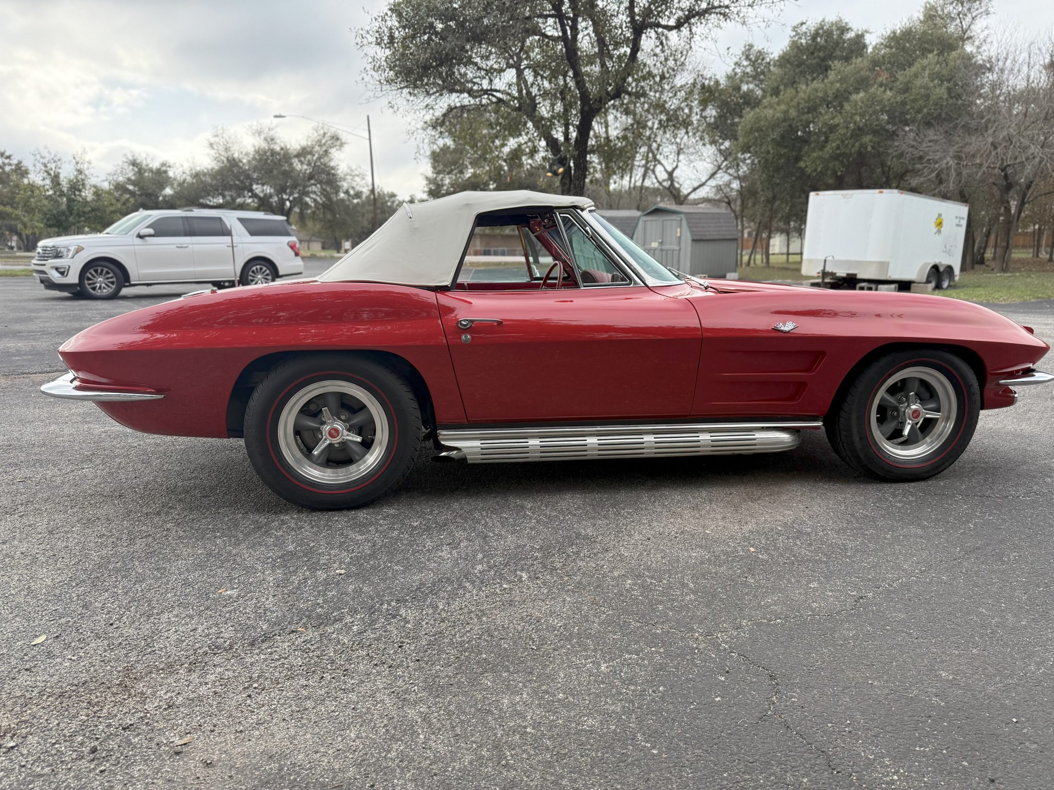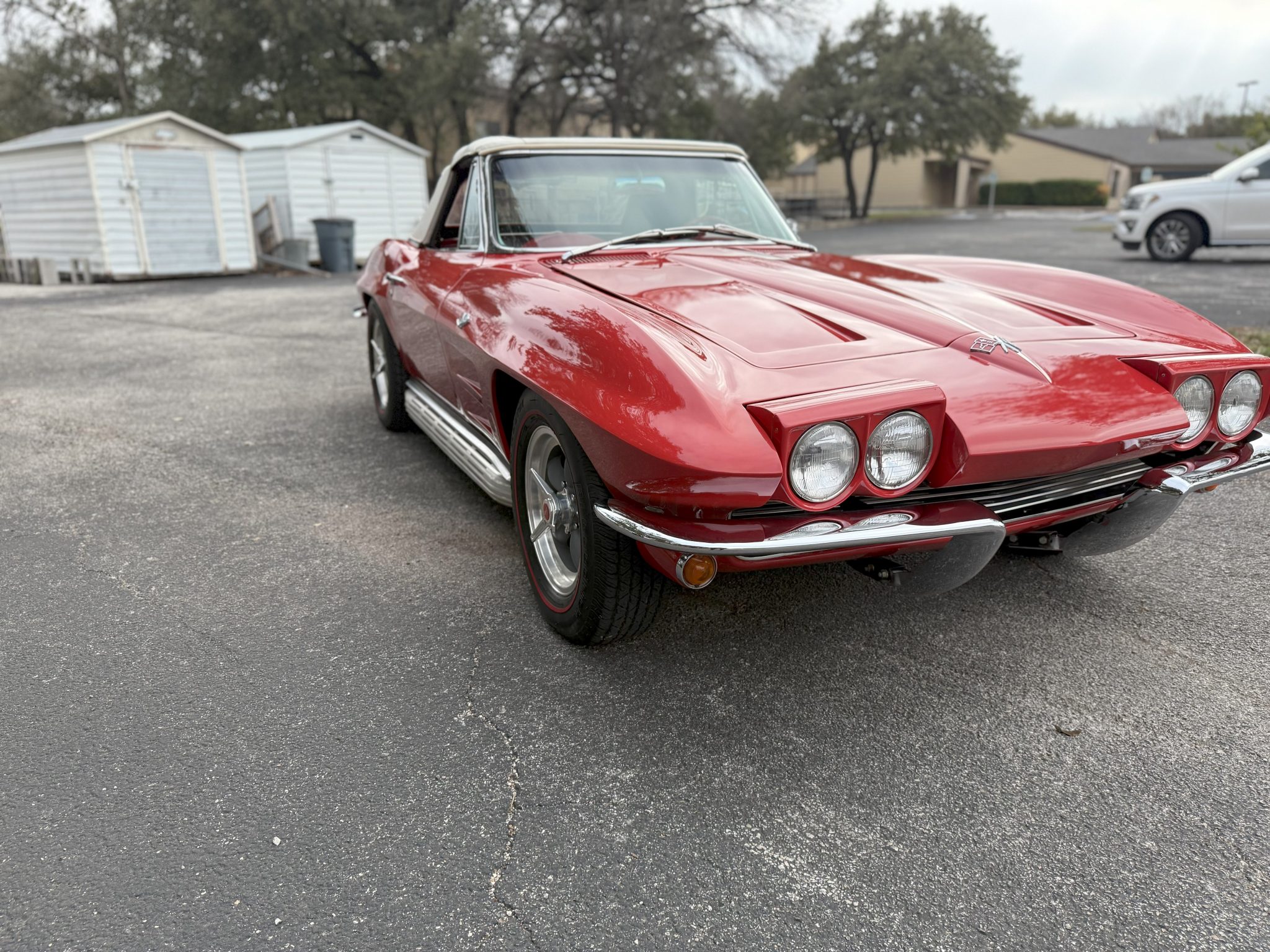 American Racing 15″ Torq Thrust Wheels were mounted with 215/70 BFGoodrich Silvertown Radial tires in 2008. The C2 was the first Corvette to offer fully independent suspension, with upper and lower control arms at the front and a three-link setup with a transverse leaf spring at the rear. Power steering and four-wheel disc brakes were added during the refurbishment. The front calipers were replaced in March 2024.