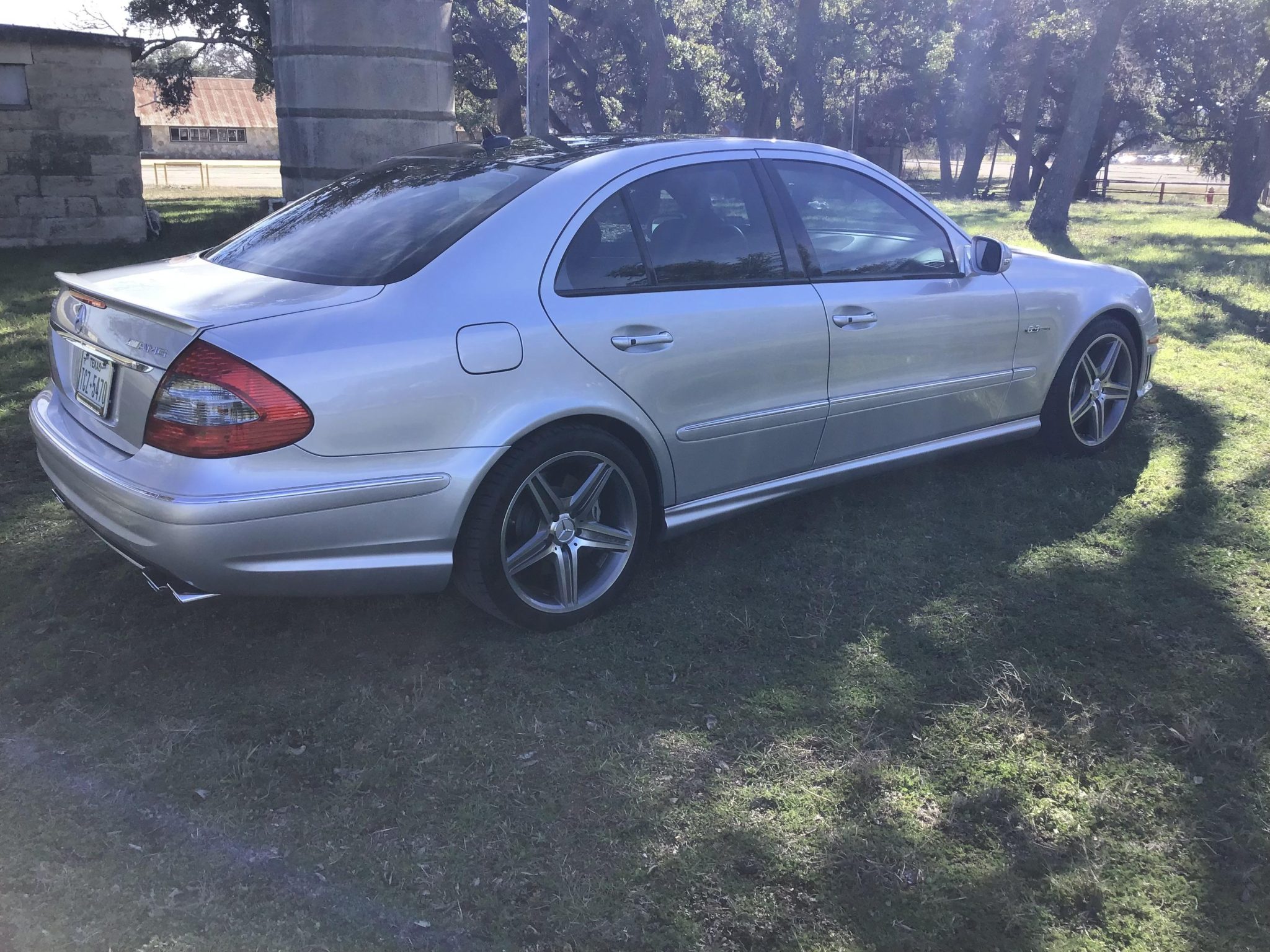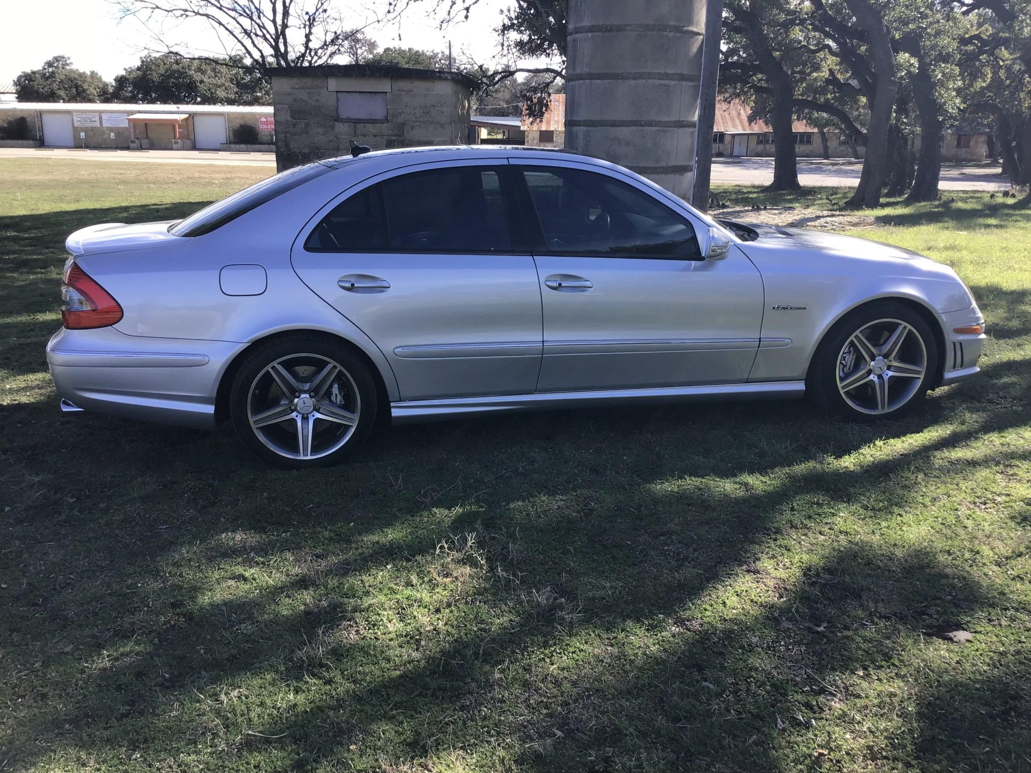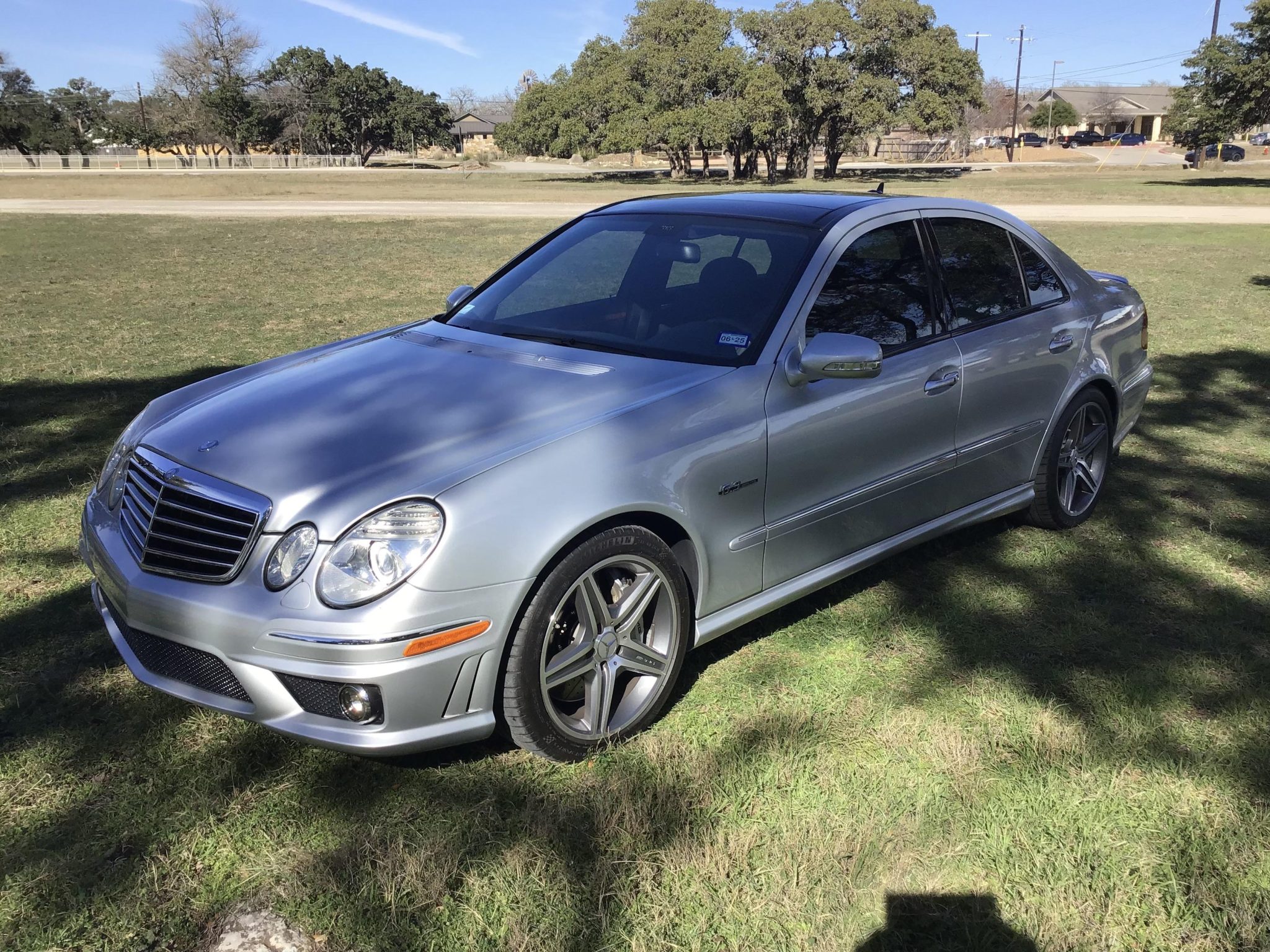 The five-spoke 18″ AMG wheels are mounted with 245/40 front and 265/35 rear Michelin Pilot Sport 4S tires with 2021 date codes. The car rides on an AMG-tuned Airmatic suspension with an adaptive damping system, and stopping power is provided by silver-finished six-piston front and four-piston rear calipers over cross-drilled rotors at all four corners. The front-right air strut was replaced in October 2022 before it was replaced again under warranty by Mercedes-Benz of Boerne, Texas, in December 2023. A brake fluid flush was completed in November 2024.