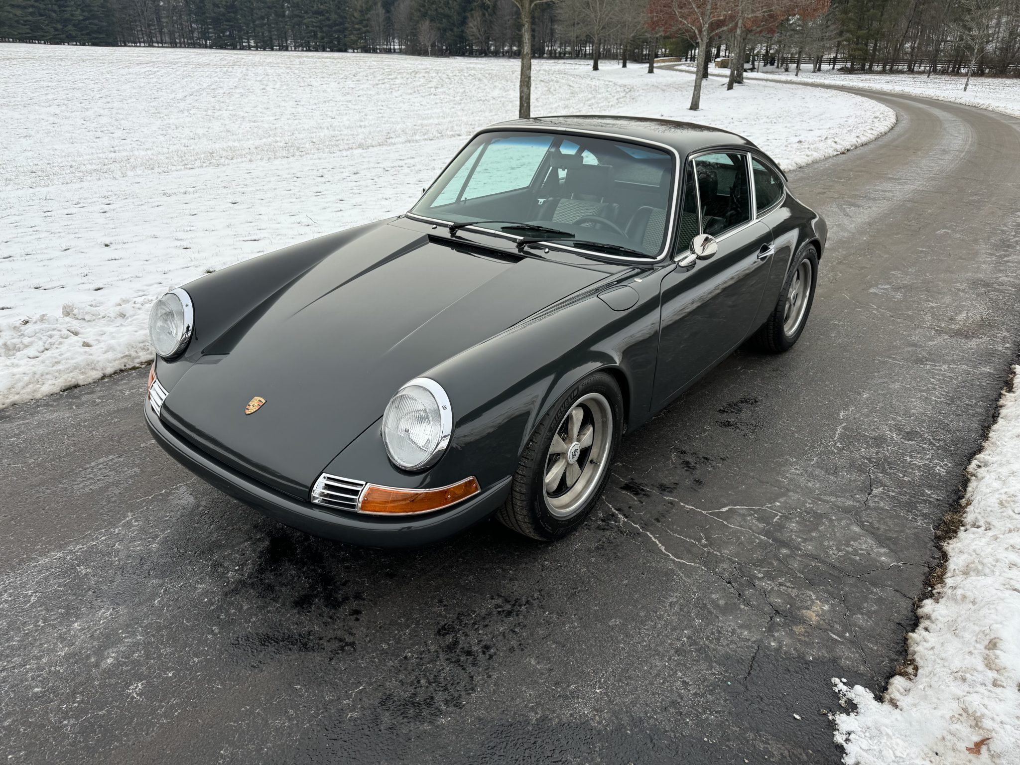 The 16×7 Fuchs-style wheels are mounted with Michelin Pilot Sport All Season 4 tires. 911SC brakes are said to have been installed front and rear along with an SC master cylinder and stainless-steel brake lines. The chassis has reportedly been modified with the following components: