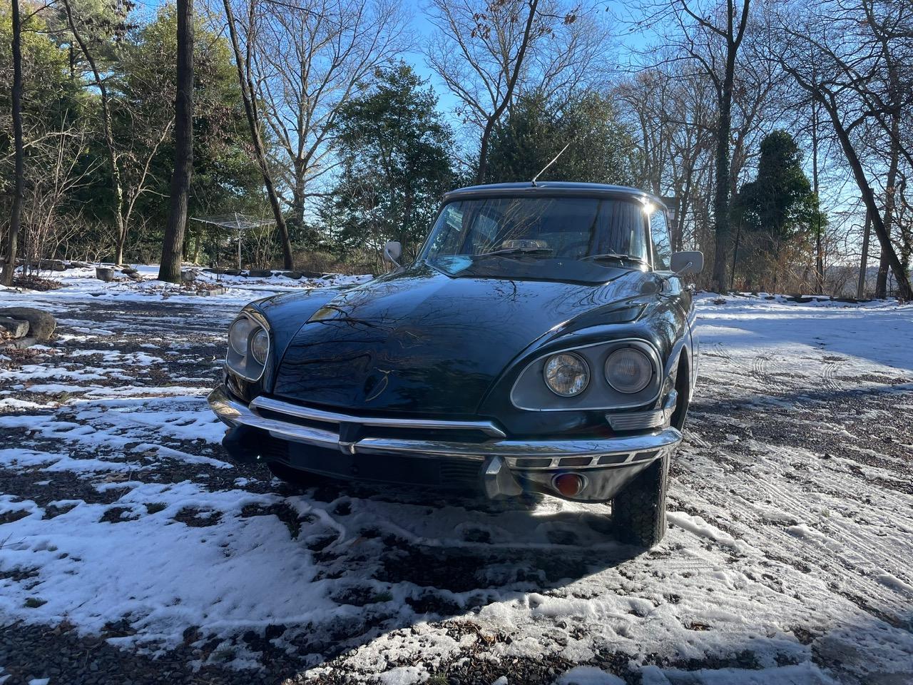 The 15″ steel wheels were powder-coated cream under prior ownership, wear polished covers, and are mounted with Vredestein tires. A spare tire is mounted under the hood in front of the engine. The hydropneumatic system serves the self-leveling, height-adjustable suspension and also provides assistance to the steering system and inboard front disc and rear drum brakes.