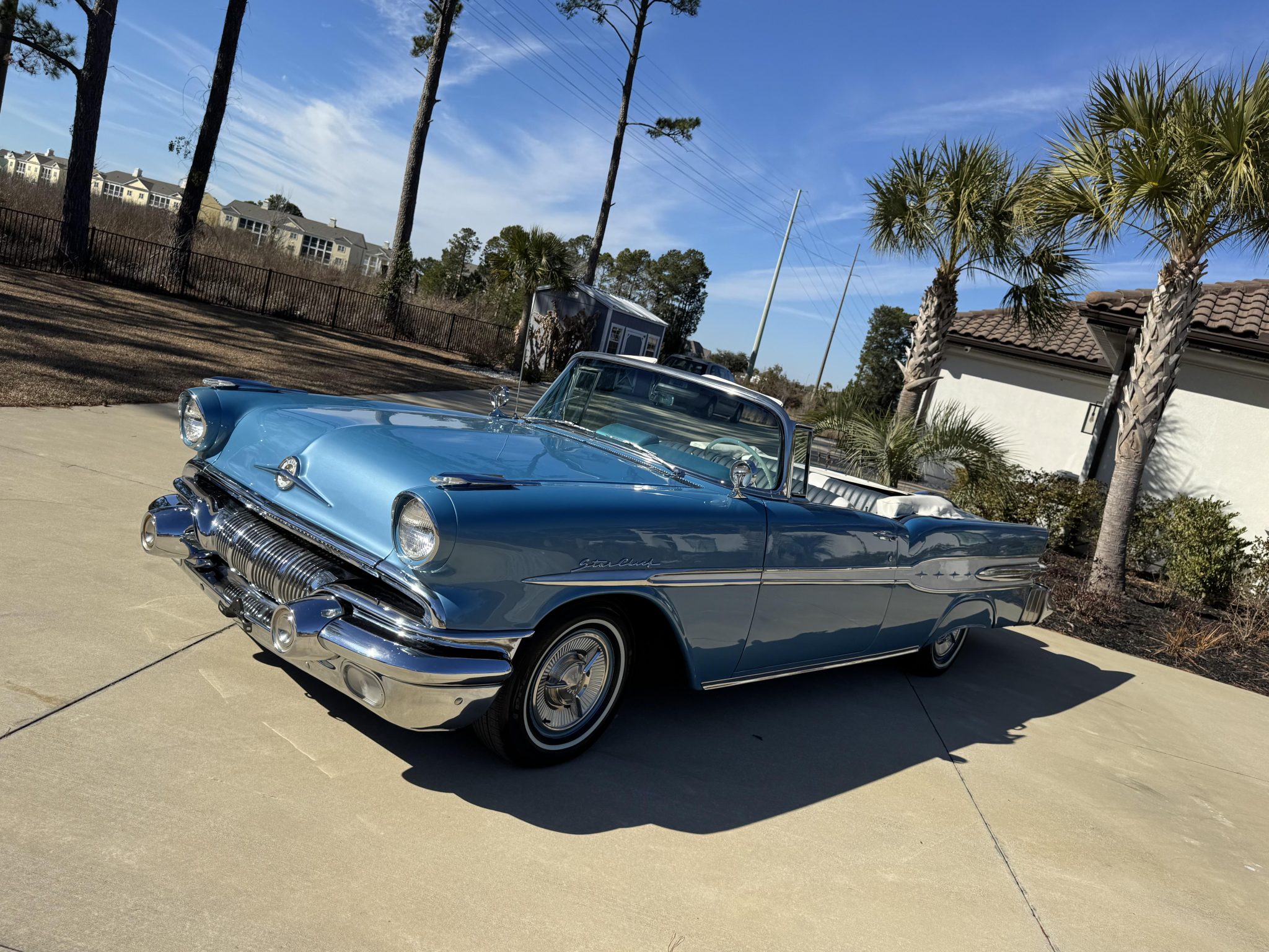 The 14″ steel wheels feature chrome hubcaps. The car is equipped with power steering, and the brake system was overhauled during the refurbishment.