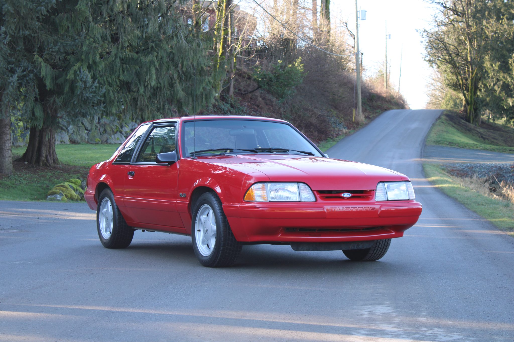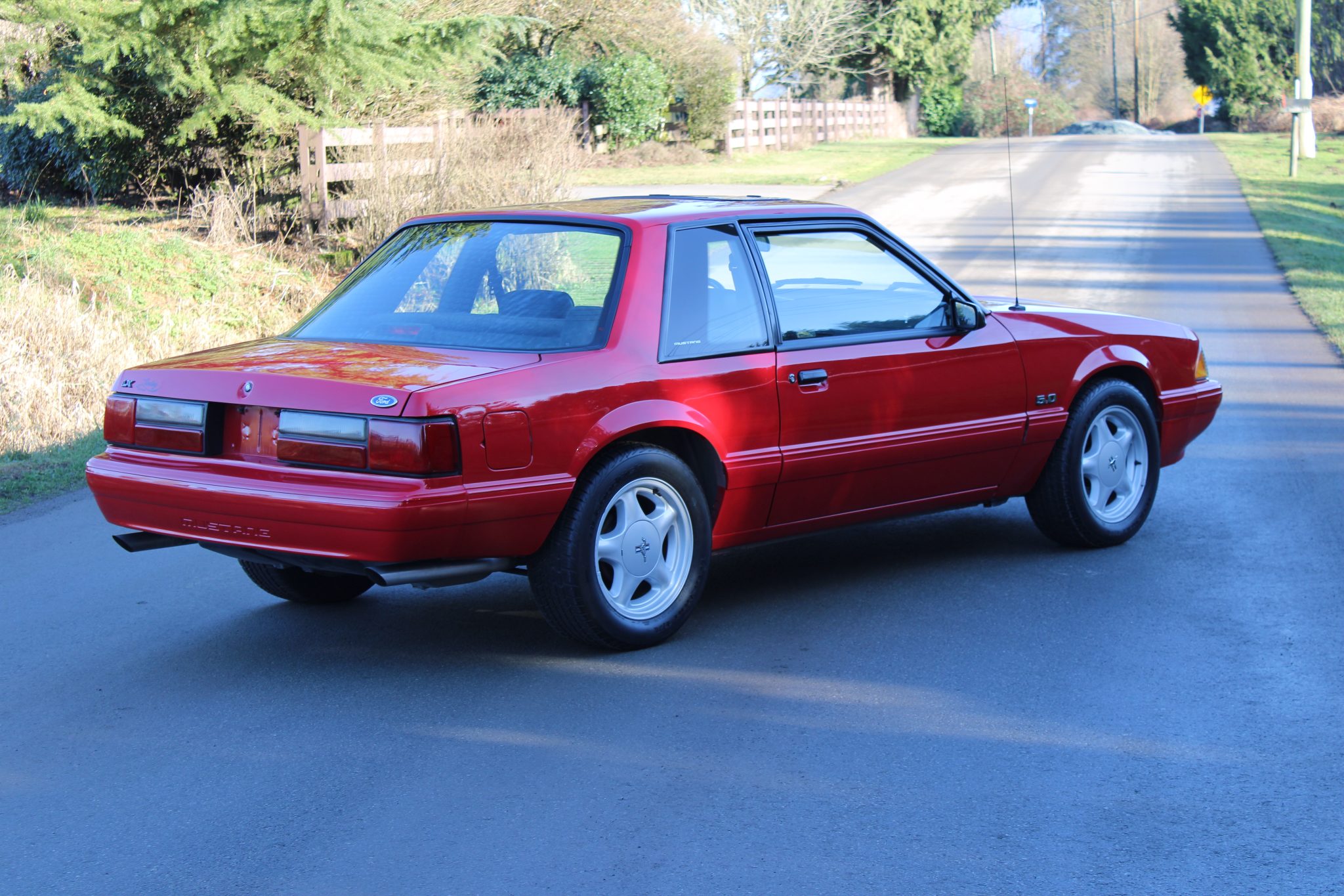 Silver 16″ Pony alloy wheels are mounted with BFGoodrich Traction T/A tires. Standard equipment included a Handling Suspension Package featuring variable-rate springs and a Quadra-Shock rear setup along with power-assisted rack-and-pinion steering. Braking is handled by power-assisted front discs and rear drums.