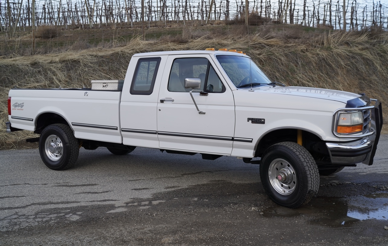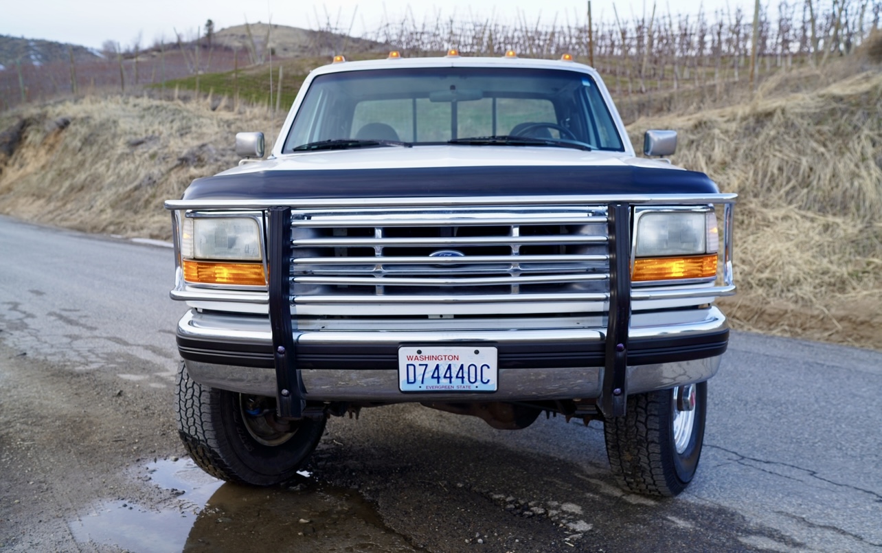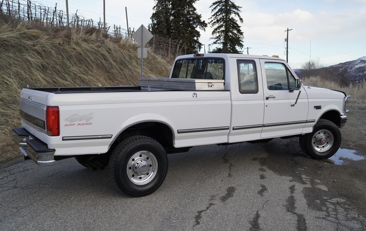 The 16″ eight-hole alloy wheels are mounted with Starfire SF 510 tires. Braking is handled by power-assisted front discs and rear drums, with the latter featuring ABS. The truck is equipped with manually locking front hubs. A two-inch leveling kit was installed and the brake rotors, brake calipers, and ball joints were replaced in January 2025
