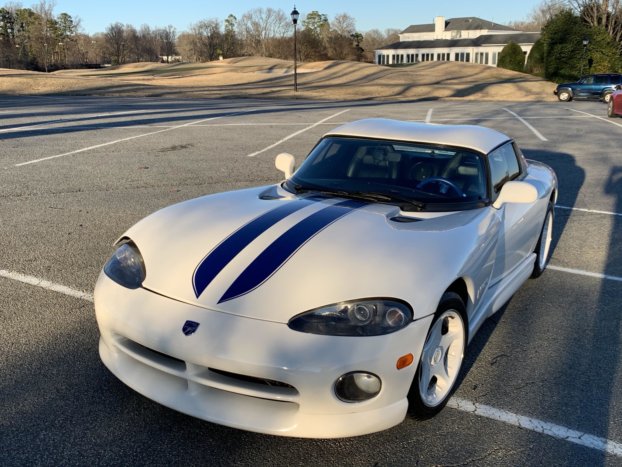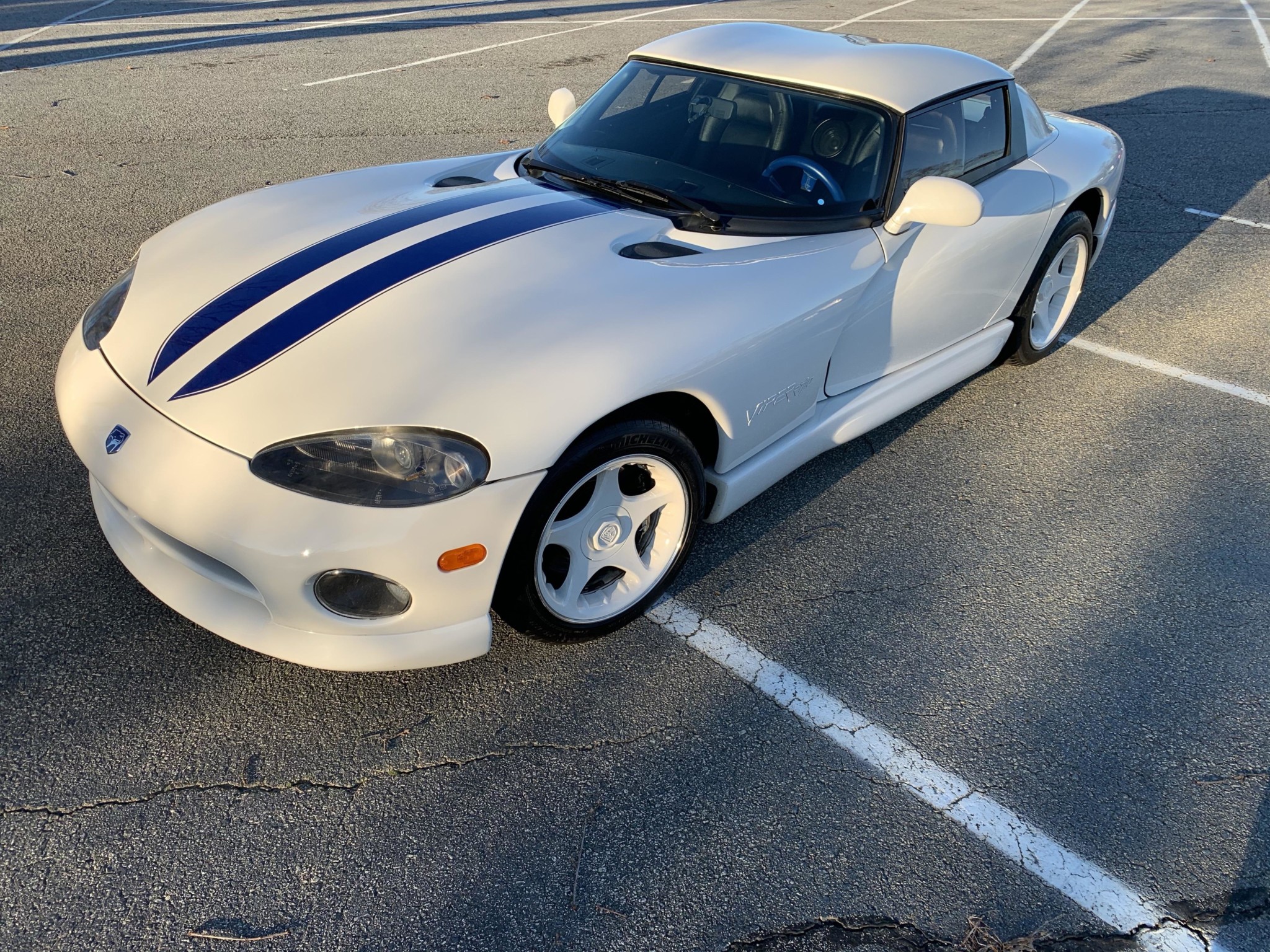 White w/ Blue Racing Stripes