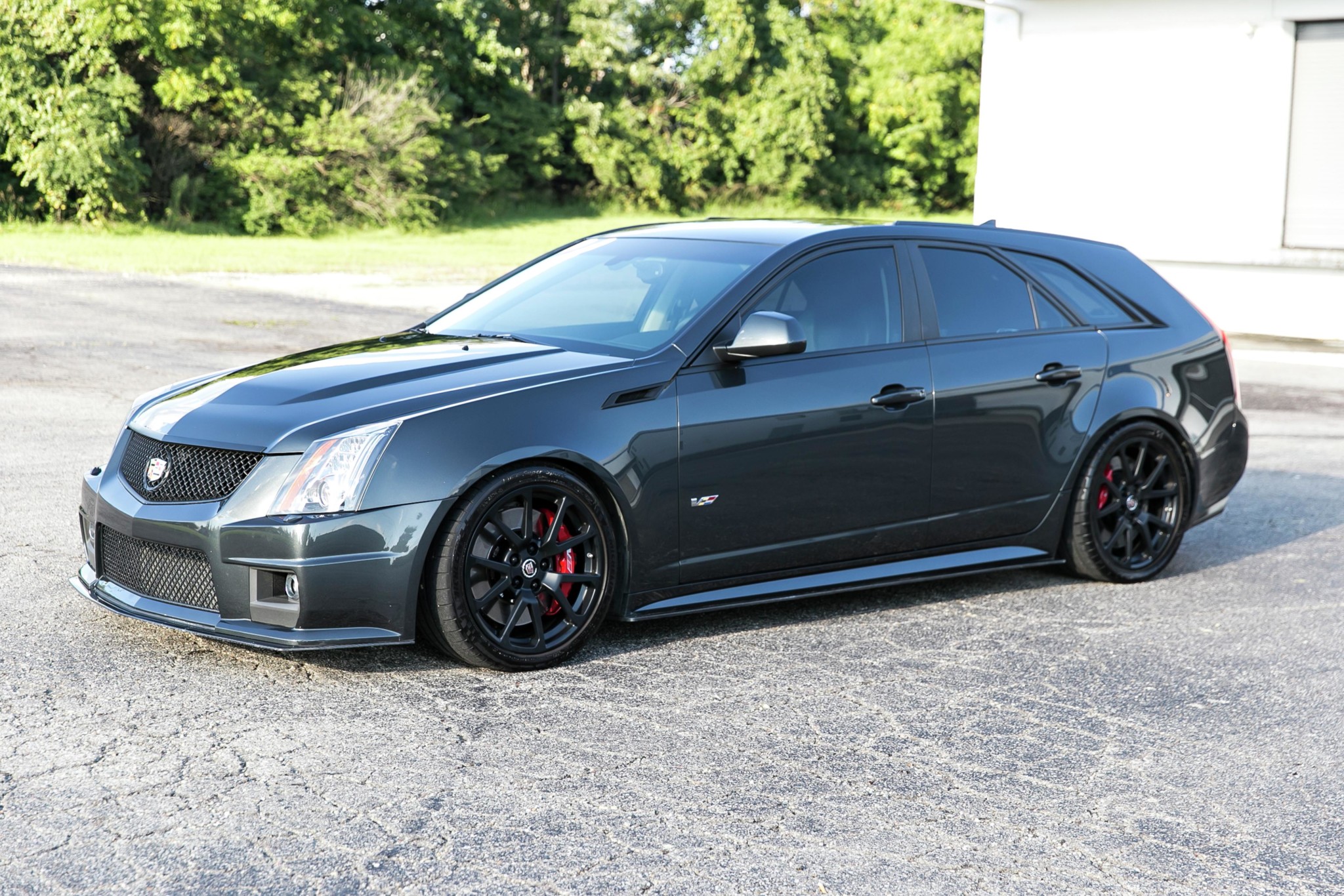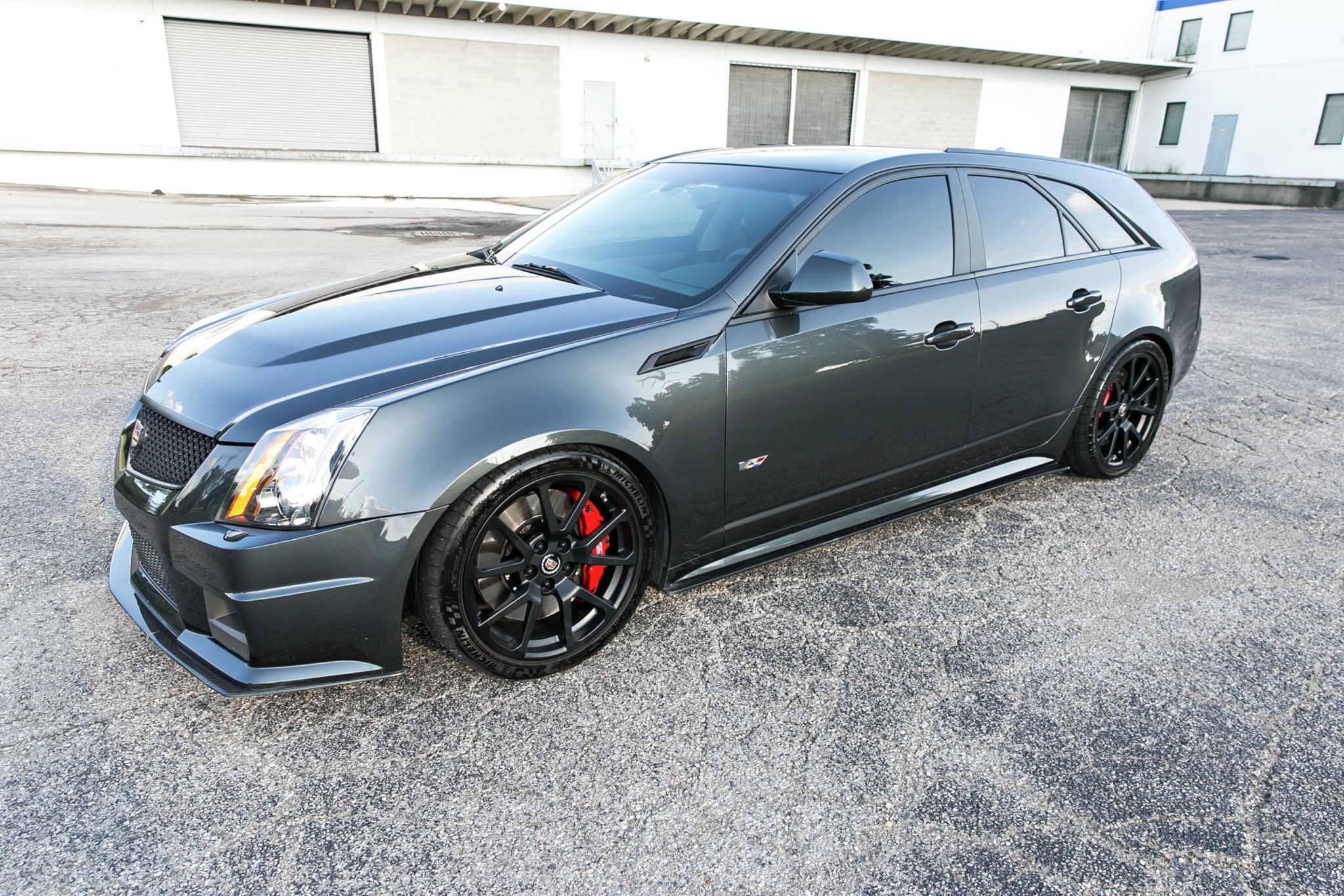 This CTS-V sits lower than stock on KW double-adjustable shocks and lowering springs. Further suspension modifications include D3 front and rear sway bars and a D3 chassis brace. Factory 19″ alloy wheels have been powder-coated black and are mounted with Michelin Pilot Super Sport tires. Braking is handled by optional red-finished Brembo six-piston front calipers and four-piston rears.