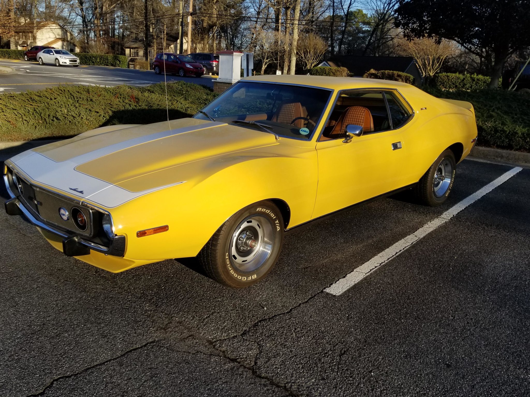 Rally 15″ wheels wear chrome trim rings, bolt-on hub caps, and BFGoodrich Radial T/A tires. Power steering and vacuum-assisted front disc brakes were equipped from the factory.