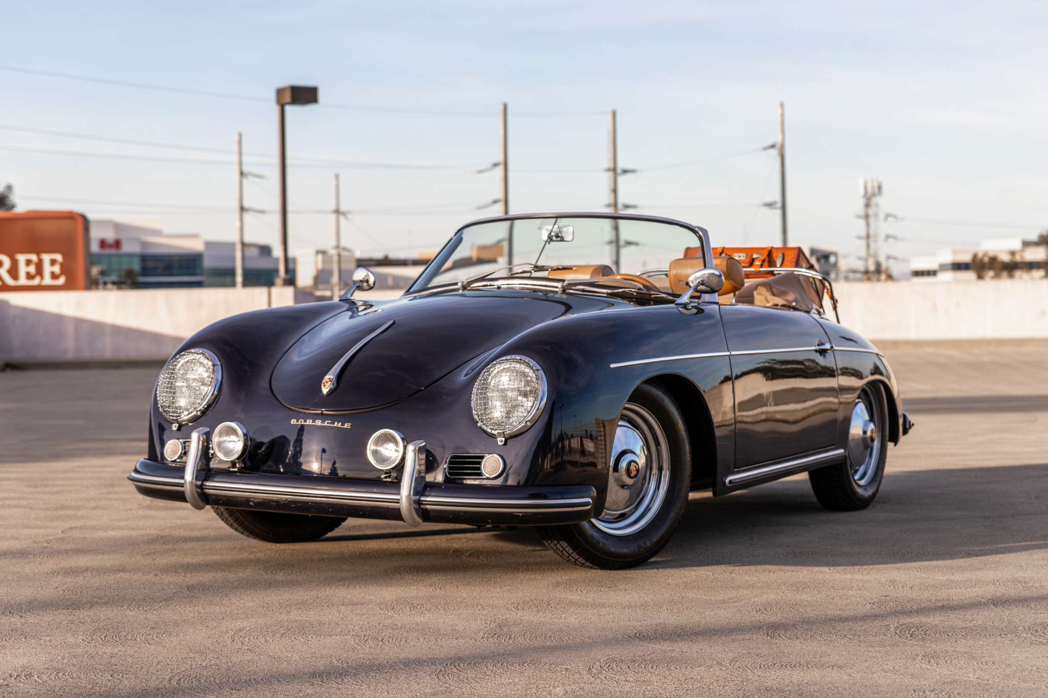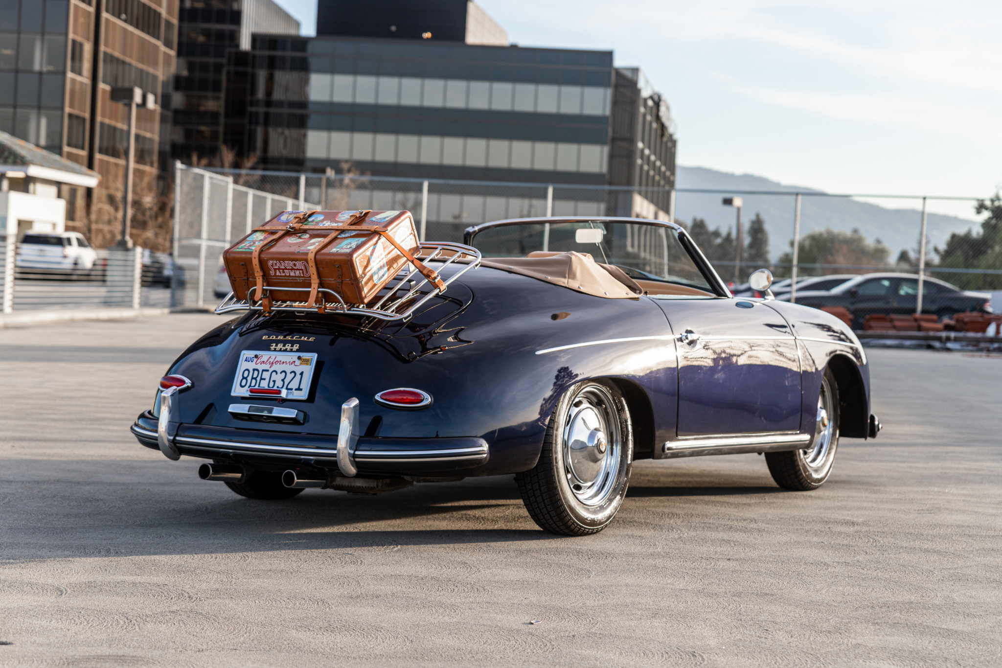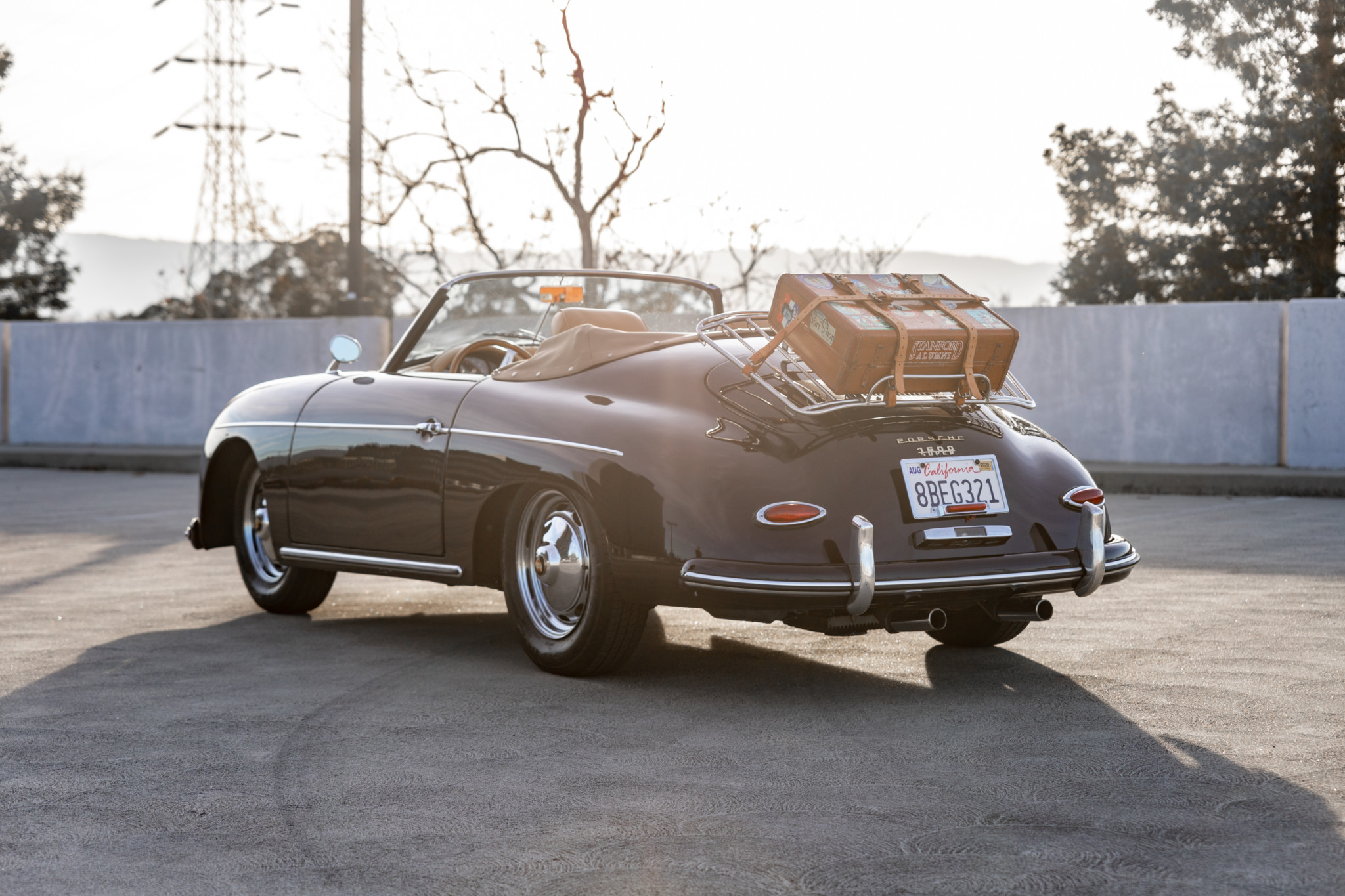 15″ chrome slotted wheels wear Porsche crest covers and 165/80 Nexen SB-802 tires. Replacement shocks and four-wheel disc brakes were listed as installed in 2015 in provided paperwork.