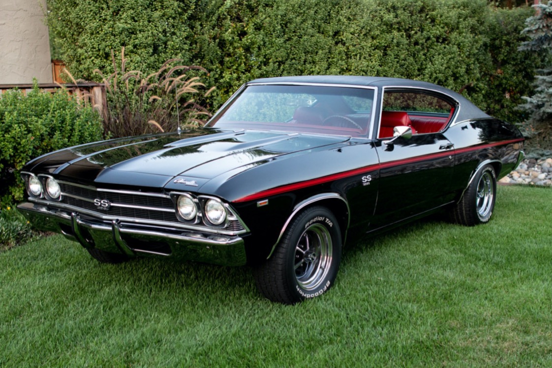 Chrome 15″ Magnum 500-style wheels wear SS center caps and 245/60 BFGoodrich white-letter tires. Black paint loss is noted on the inner wheels, and the seller notes that the radio antenna is bent. A