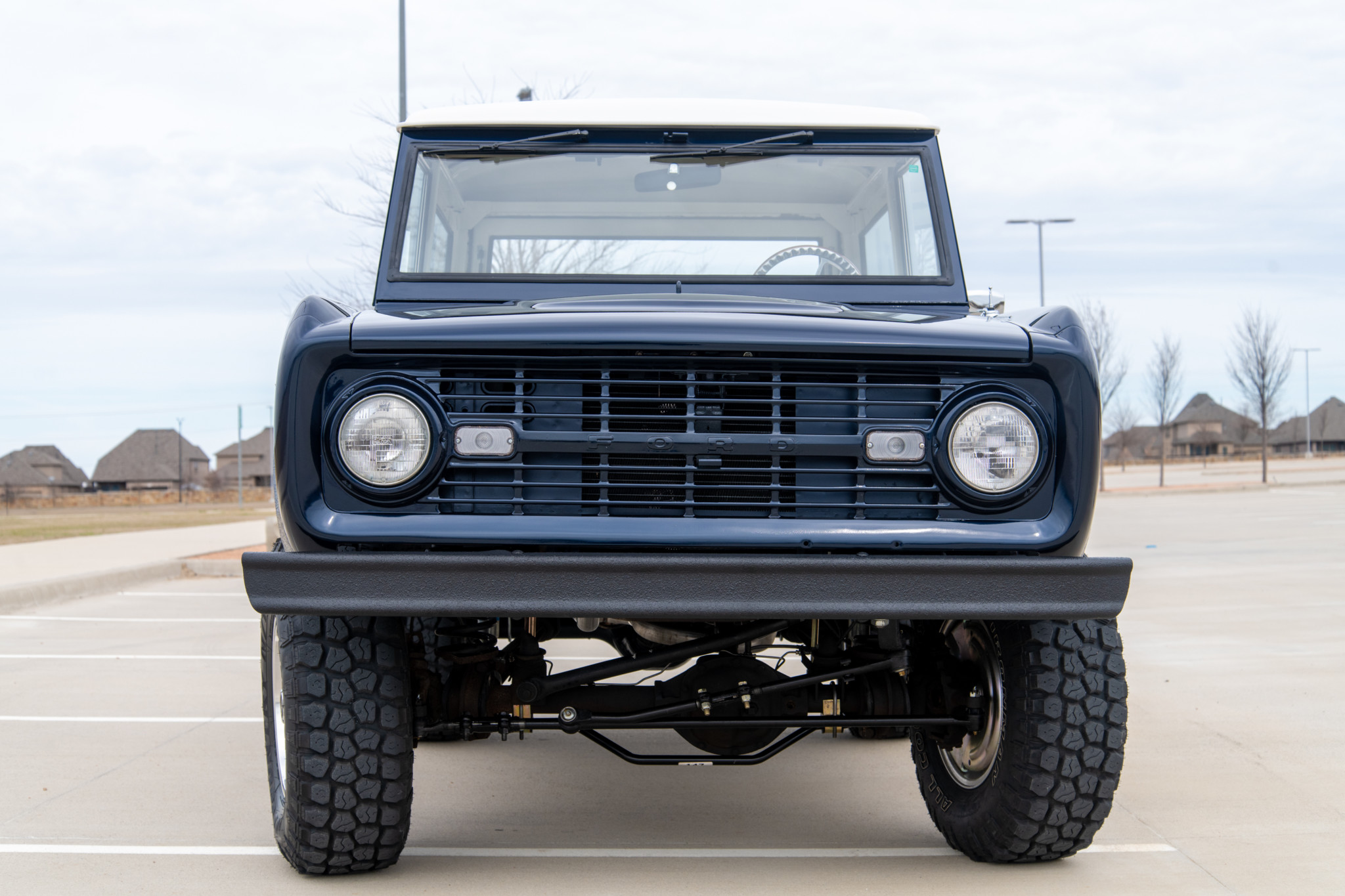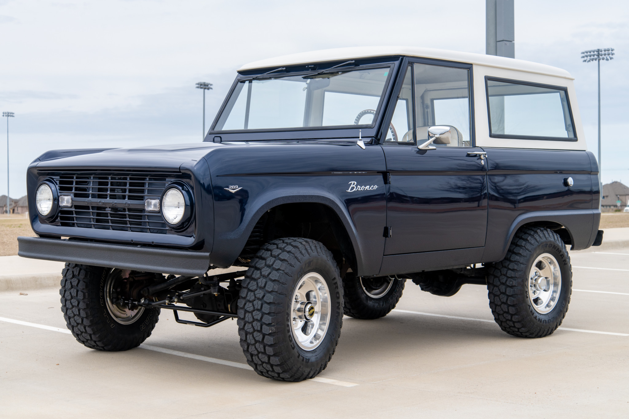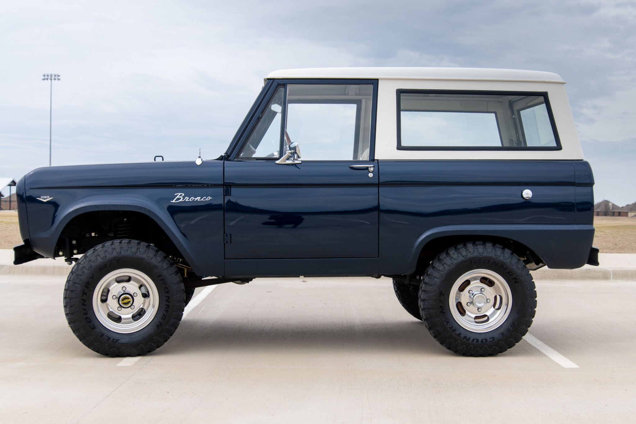 A 2.5″ lift with Bilstein shocks from Tom’s Bronco clears new 31″ Ironman All-Country M/T tires mounted on polished 15″ US Mags wheels. The truck features Warn manually-locking front hubs, front disc brakes, and a power steering conversion with an adjustable drag link. The rear drum brakes have been serviced, the Pitman arm replaced, and a sway bar fitted.