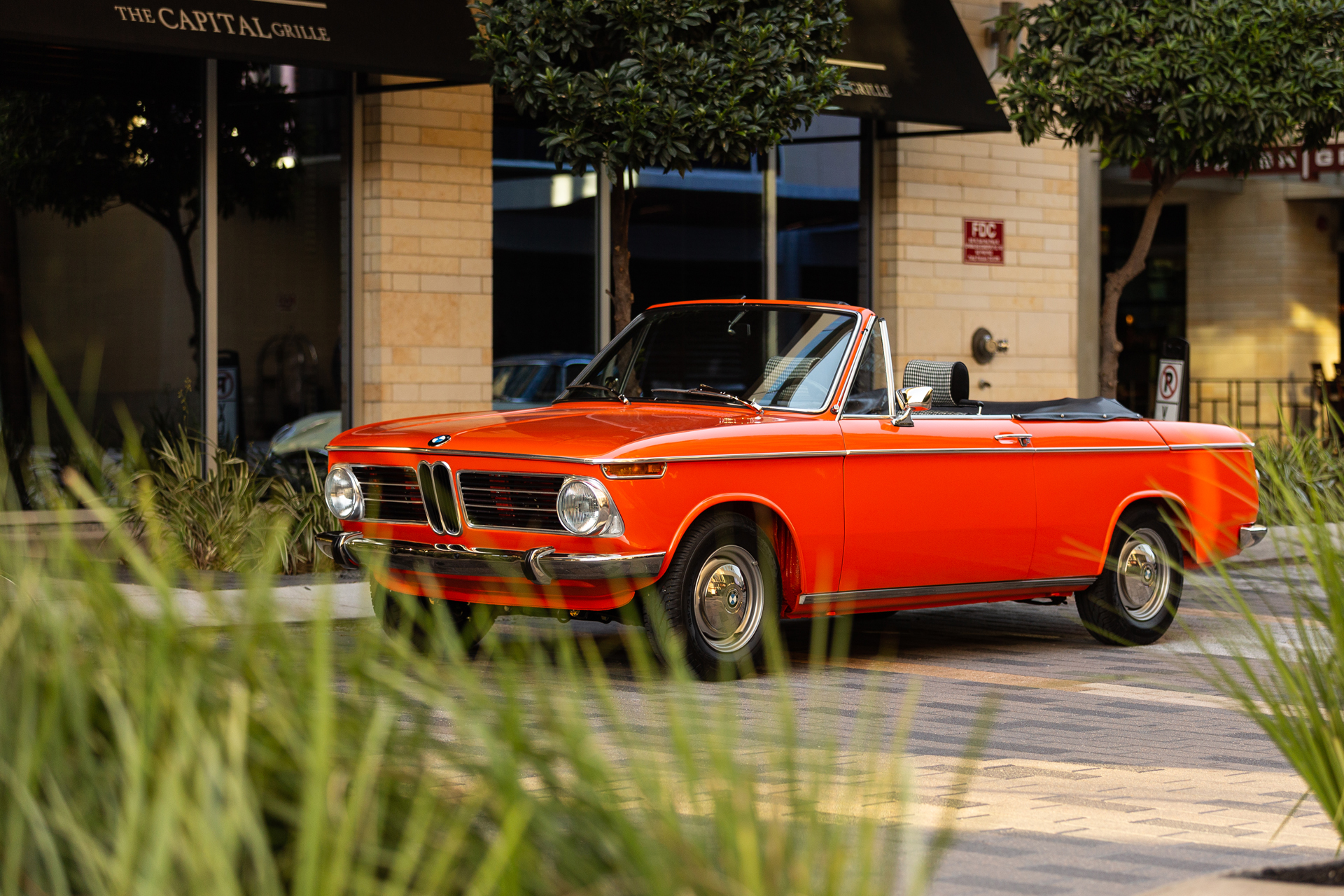 This example was repainted during the refurbishment in its original shade of Inkarot (022), noted as “special paint” on the BMW Classic Certificate. The black soft top is shown above in its raised position. Closeups of the top and rear Flexglas window are attached in the gallery below, along with images of the window etchings.