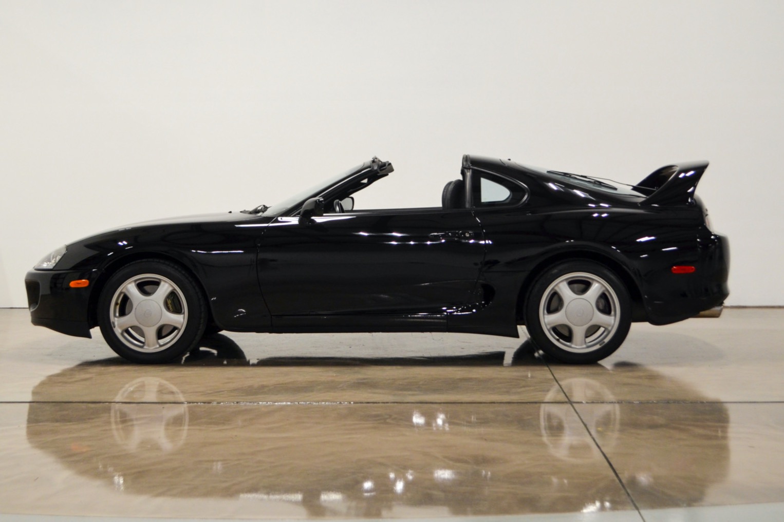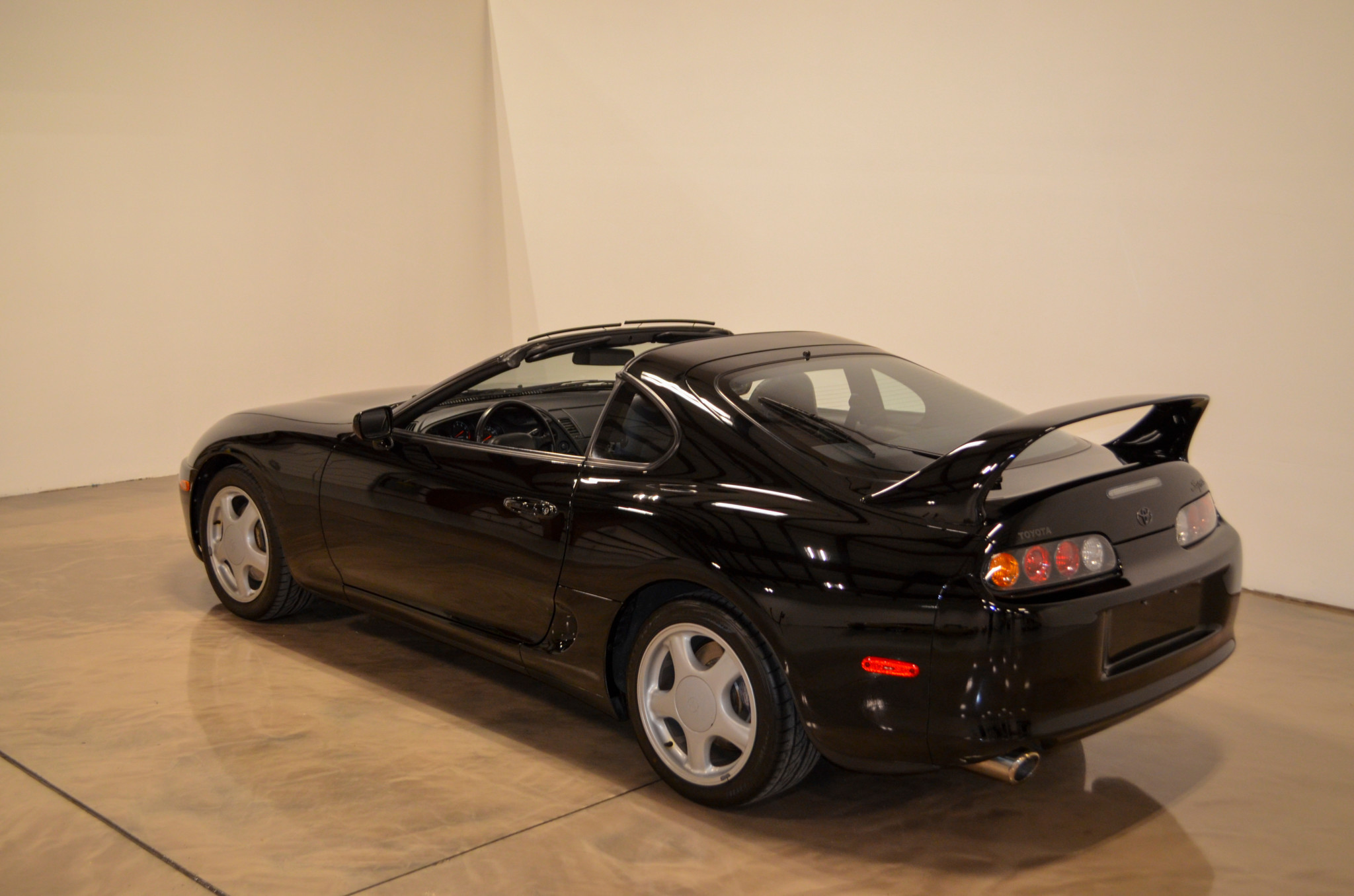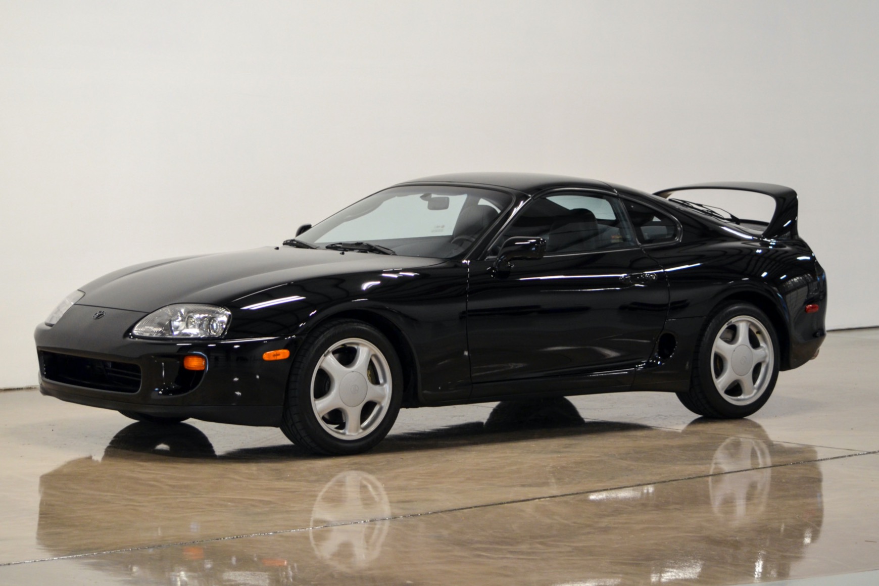 Factory 17″ alloy wheels are mounted with Bridgestone Potenza RE760 tires which show date codes from 2008. The braking system features four-wheel anti-lock ventilated discs and black calipers printed with Supra-script lettering.
