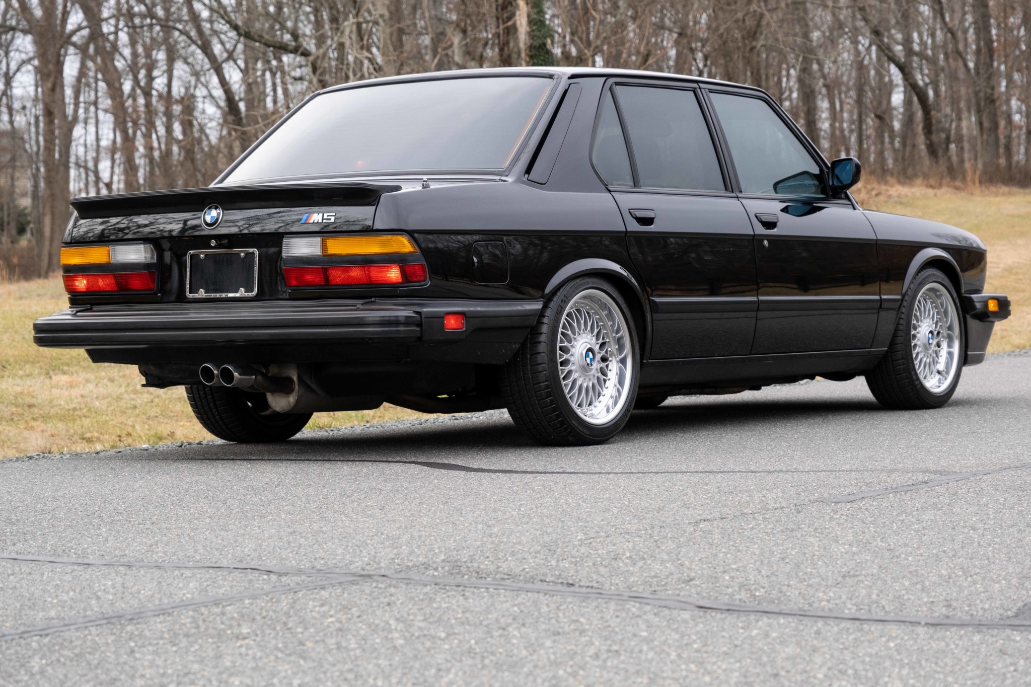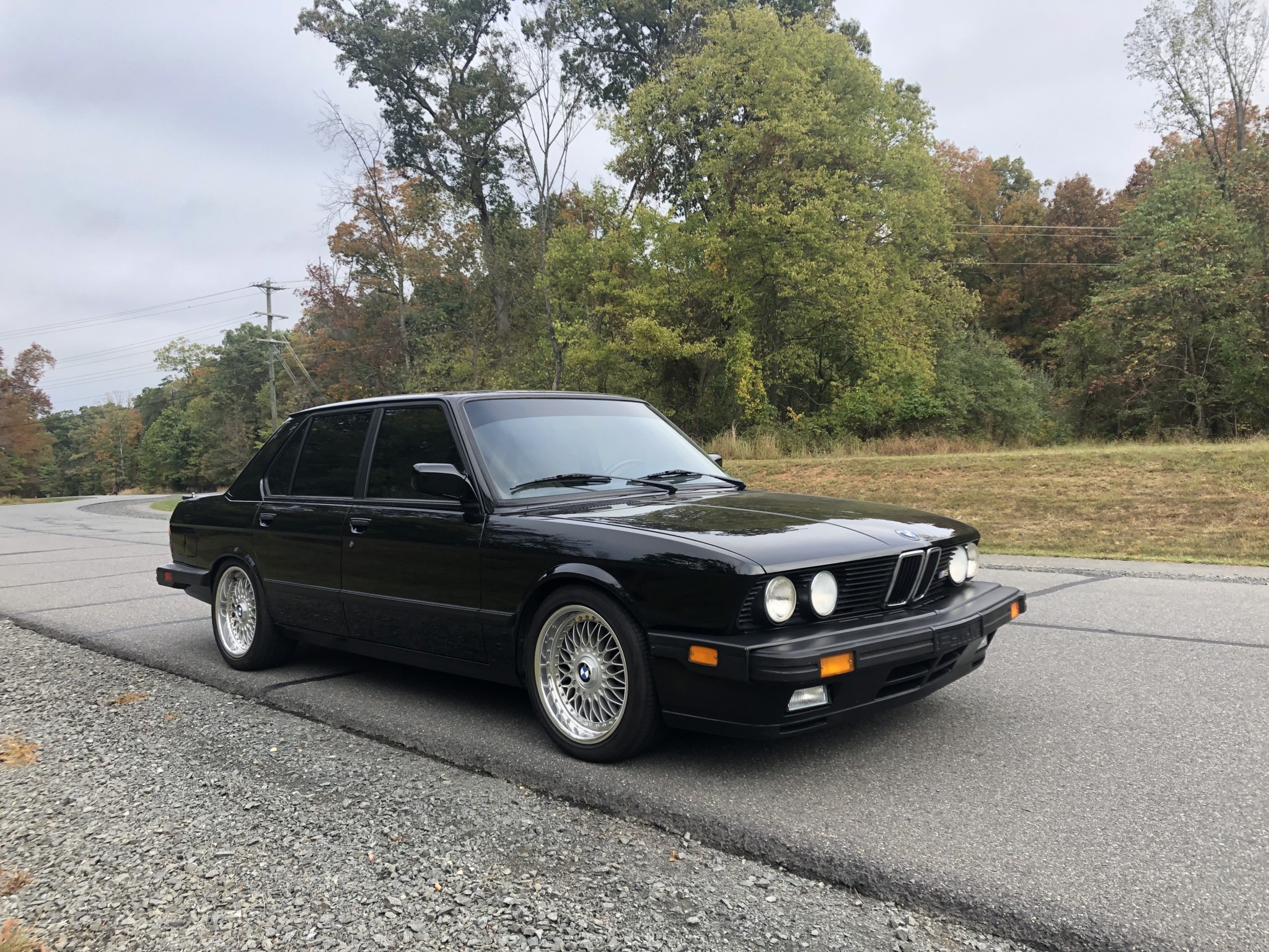 Replacement 17″ BBS RC090 wheels wear BMW center caps and Michelin Pilot Sport A/S 3+ tires that were mounted in February 2020. A factory 16″ spare wheel with Pirelli P700 rubber is located in the trunk. The stock self-leveling suspension was replaced with Dinan coil springs under previous ownership, and service in 2019 included installation of a new Pitman arm bushing, front control arms, and sway bar end links.