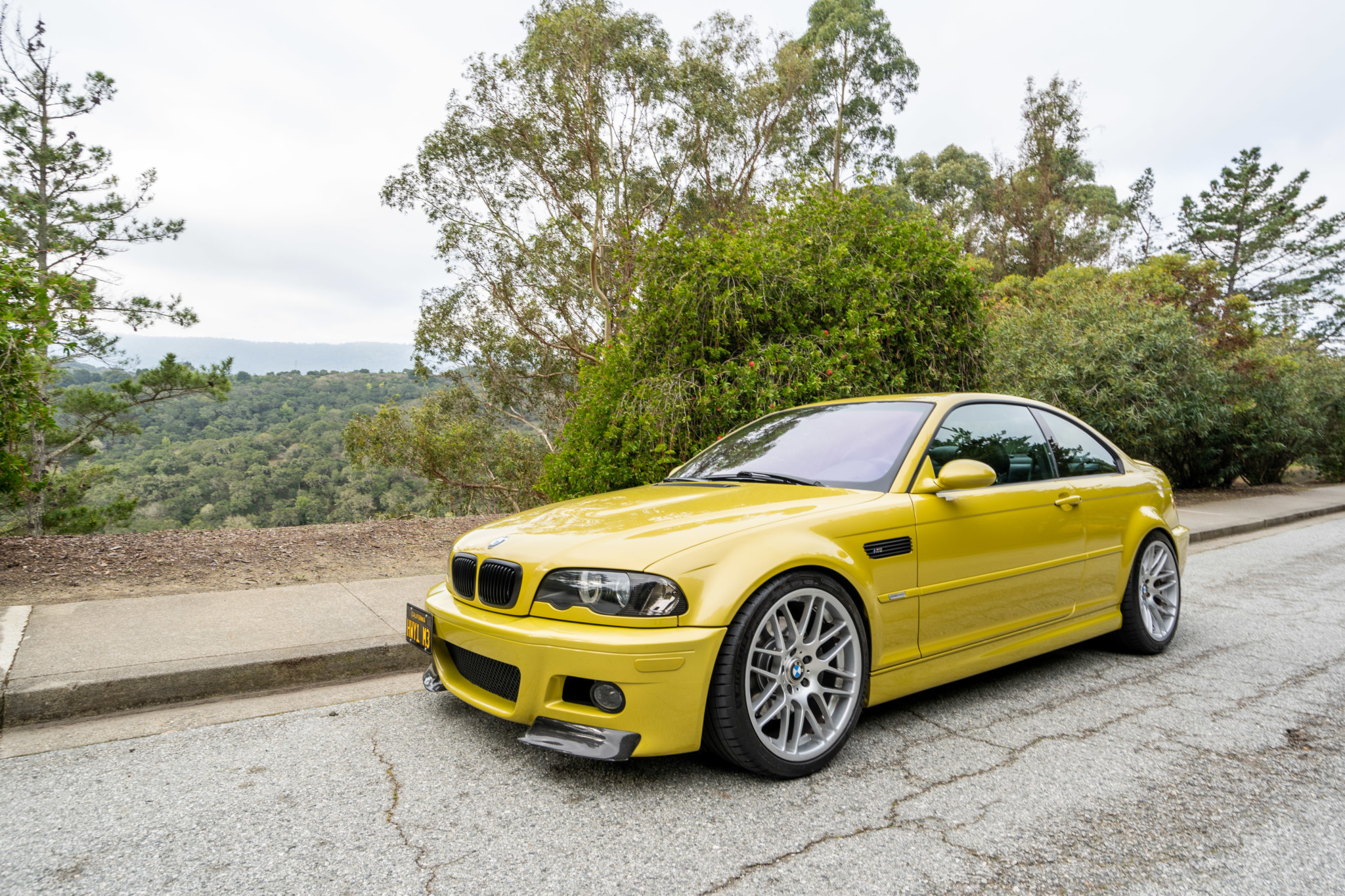 ZCP/CSL-style 19″ wheels wear BMW center caps and Michelin Pilot Sport 4S tires measuring 245/35 up front and 275/35 out back. Cool Carbon brake pads with new rotors were installed in 2019, and suspension modifications are said to include: