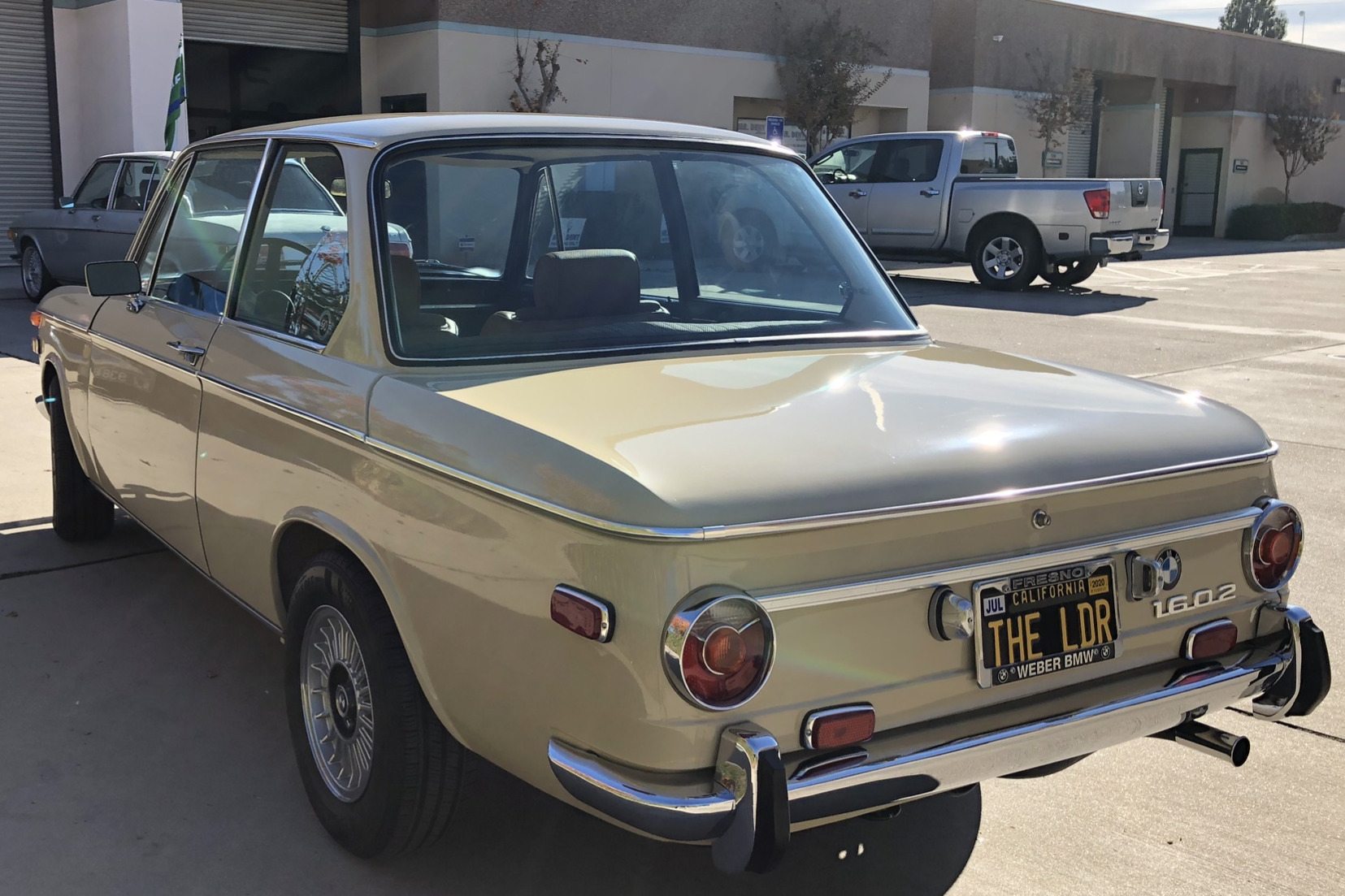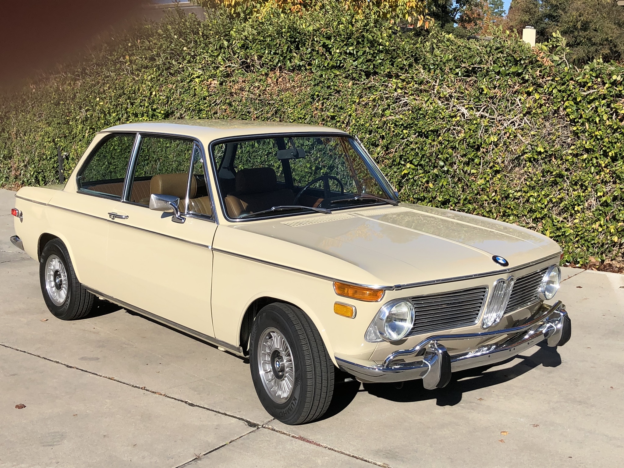 The interior was re-trimmed in tan vinyl by the seller and features matching replacement door panels and carpets, the latter of which are protected by Coco Mats. Amenities include air conditioning and a Blaupunkt cassette stereo. The seller states that Dynamat insulation is installed under the carpeting, that cracks on the dash were repaired, and that the instrument panel was updated.
