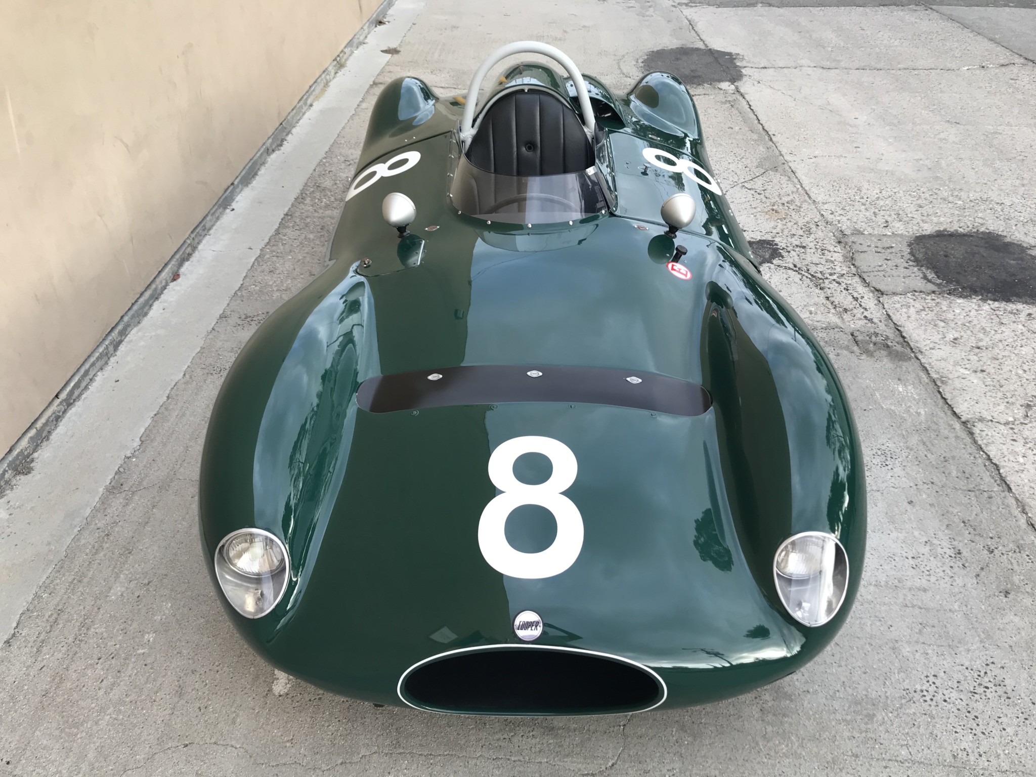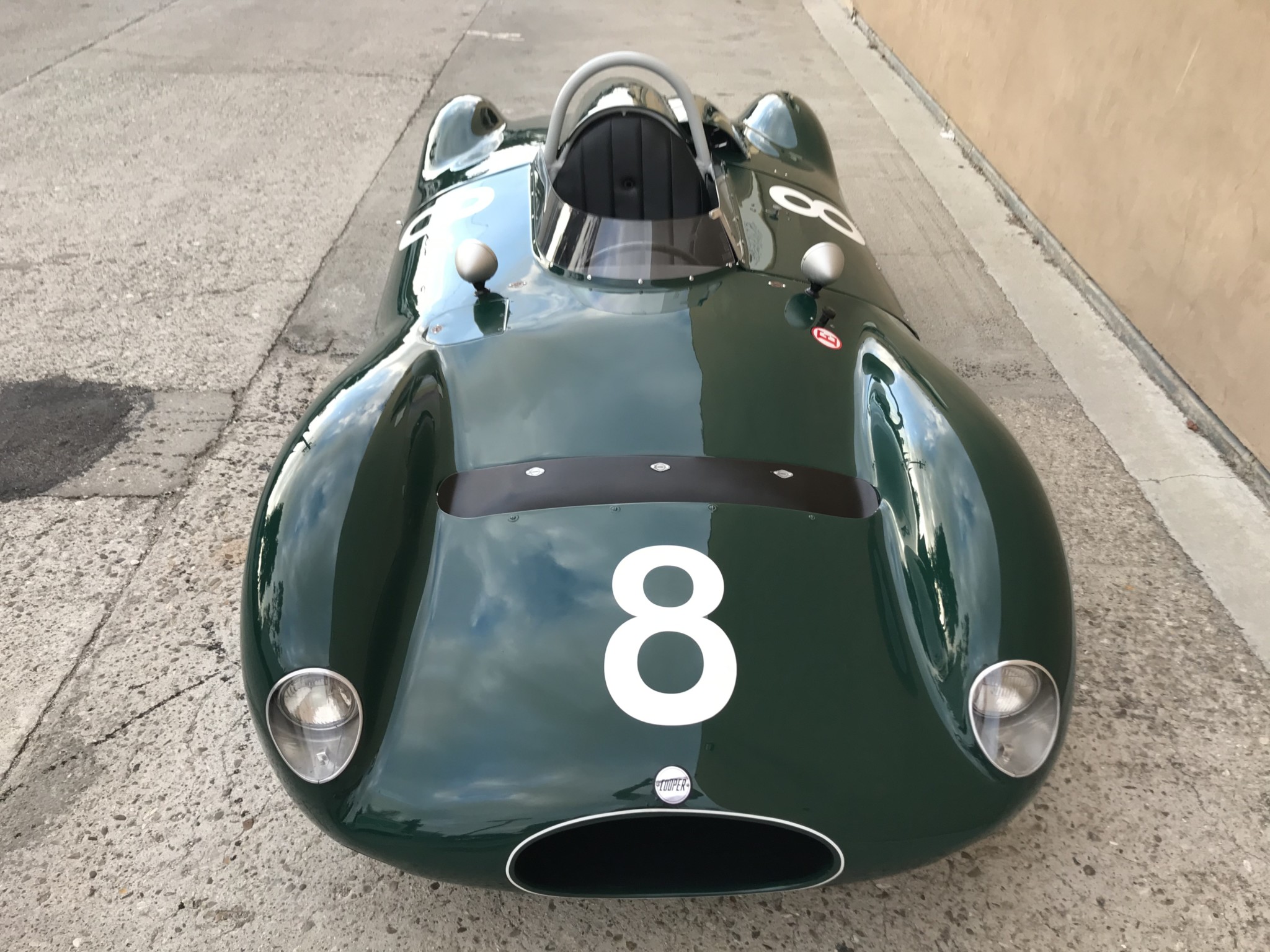 Chassis CS9/5/56 was refinished during previous ownership in its current green livery with white “8” numbering, and a refurbishment was reportedly carried out before the previous owner acquired it in 2005. Closeups in the photo gallery below show the finish, trim, and lenses. Corrosion is noted on the hardware that secures the engine compartment.