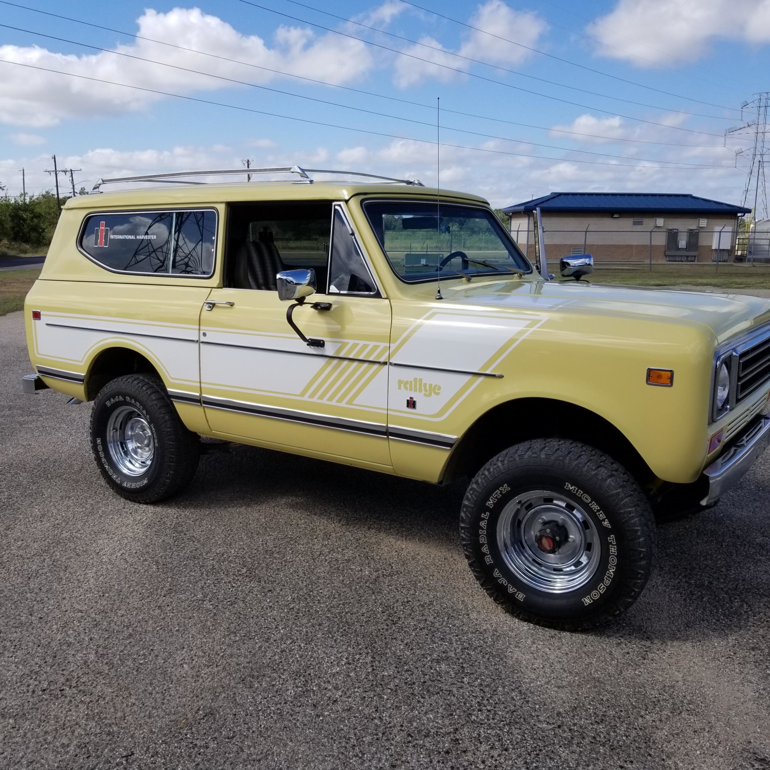 Chrome 15″ steel wheels are shod with 31″ Mickey Thompson Baja Radial MTX tires, and a matching spare is mounted in the cargo area. The truck is equipped with manually-locking front hubs, and the front wheel bearings and seals have been replaced