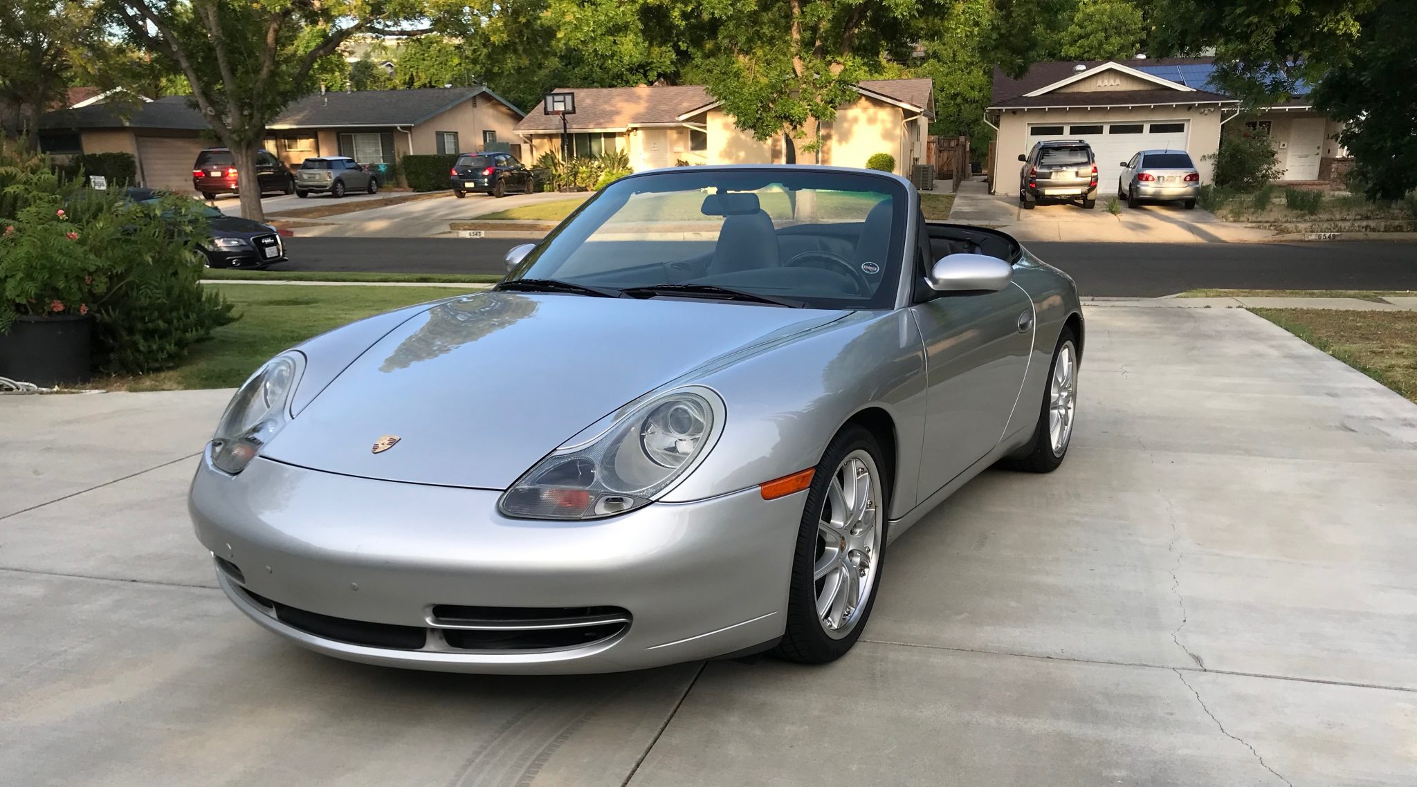 Staggered-width 18″ two-piece Sport Design wheels are wrapped in Kumho Ecsta 4X II tires installed in 2017 and measuring 225/40 in front and 265/35 at the rear. The seller notes curb rash on the rear wheels, and the front sway bar drop links on both sides were reportedly replaced in late 2019.
