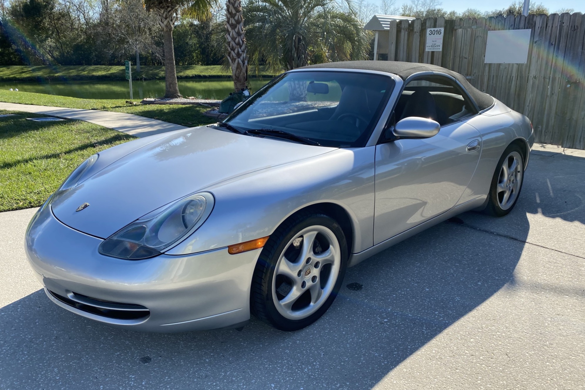 Factory 18″ Turbo-look wheels feature painted Porsche crests on the center caps and wear 2016-production Pirelli PZero tires measuring 225/40 up front and 265/35 out back.