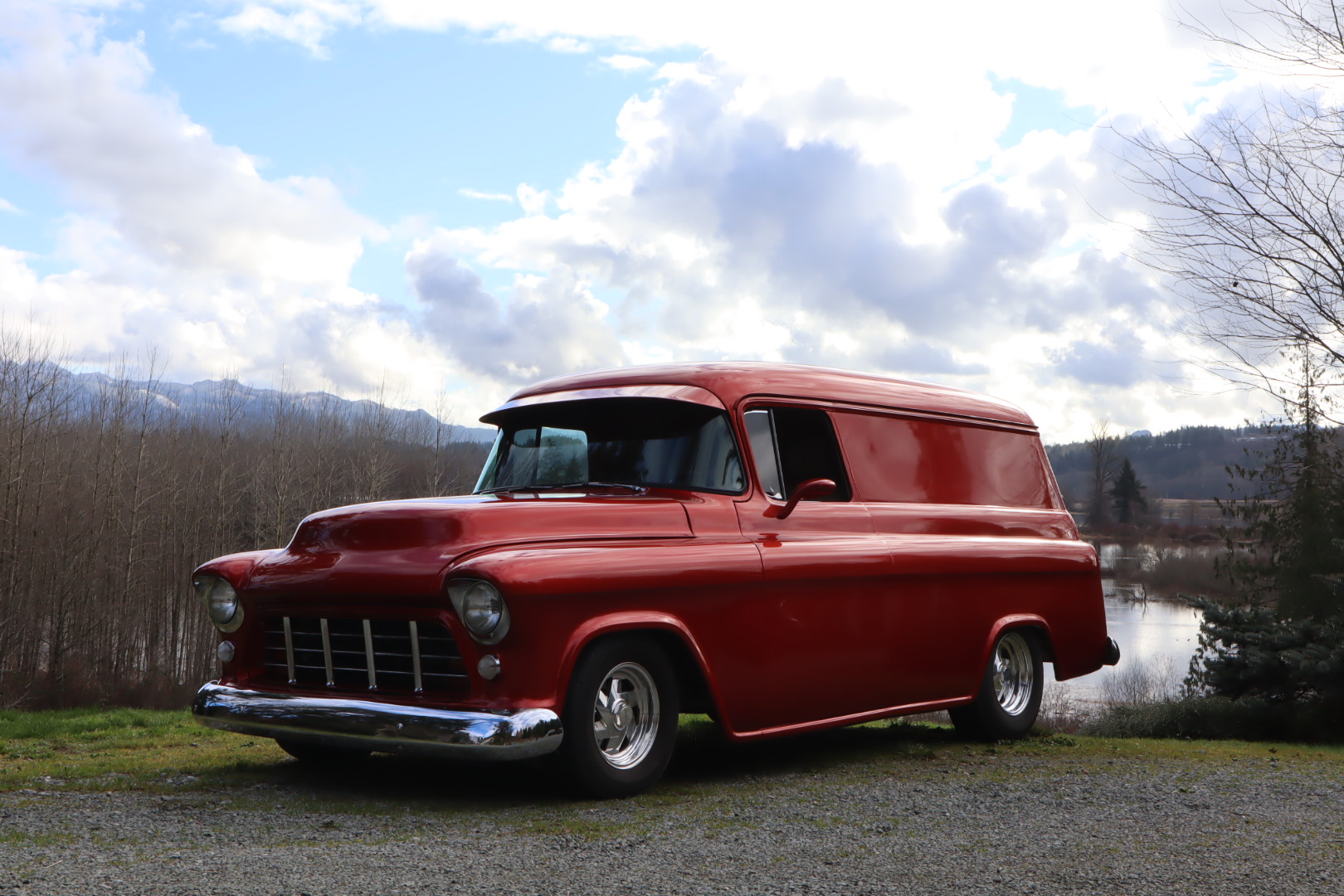 Polished 15″ wheels are mounted with Toyo Eclipse tires. Front-end equipment sourced from the Caprice donor car reportedly includes the coil-spring front suspension, disc brakes, and power steering. A custom stainless-steel exhaust system has a Magnaflow muffler and exits ahead of the right rear wheel.