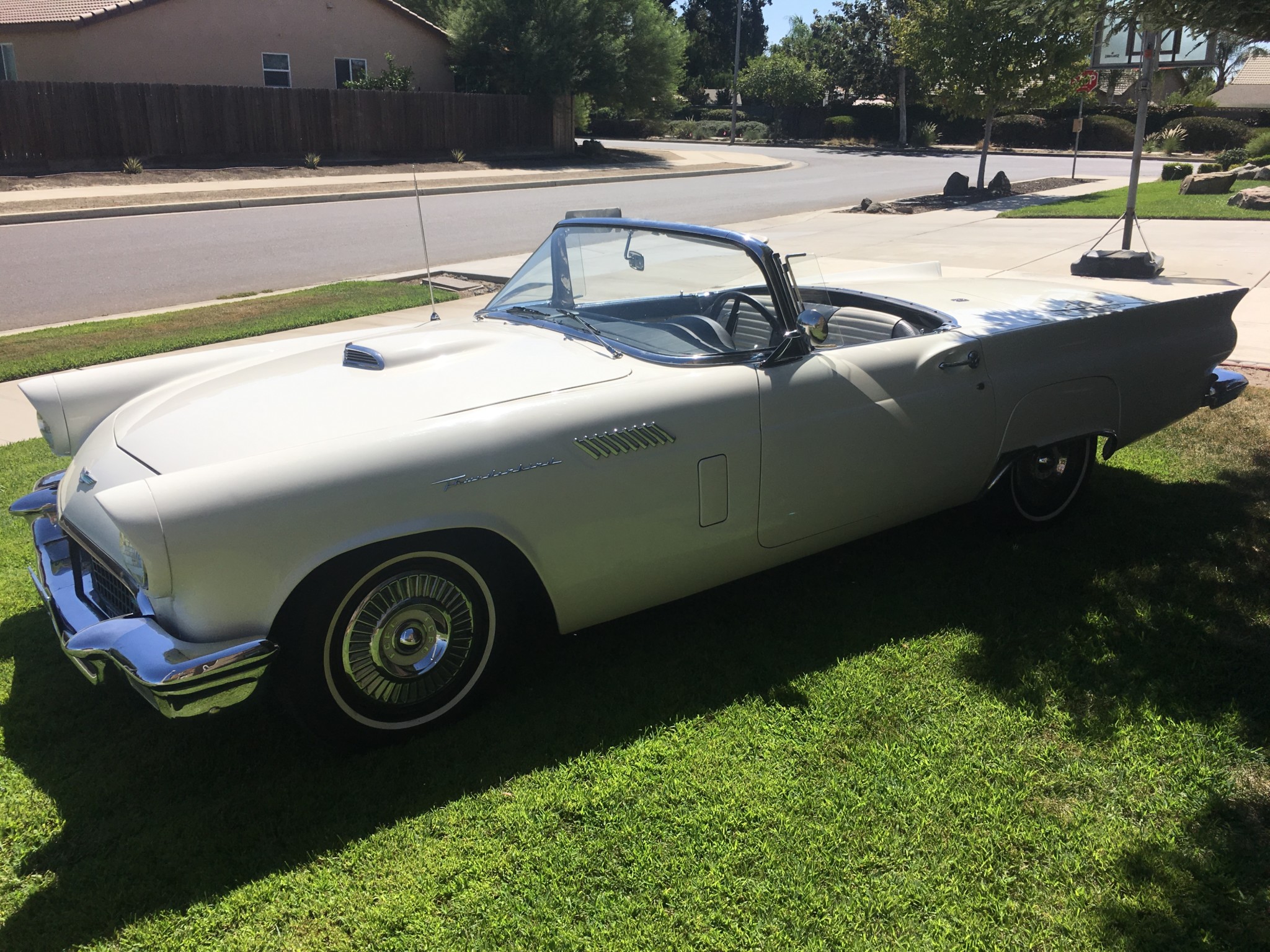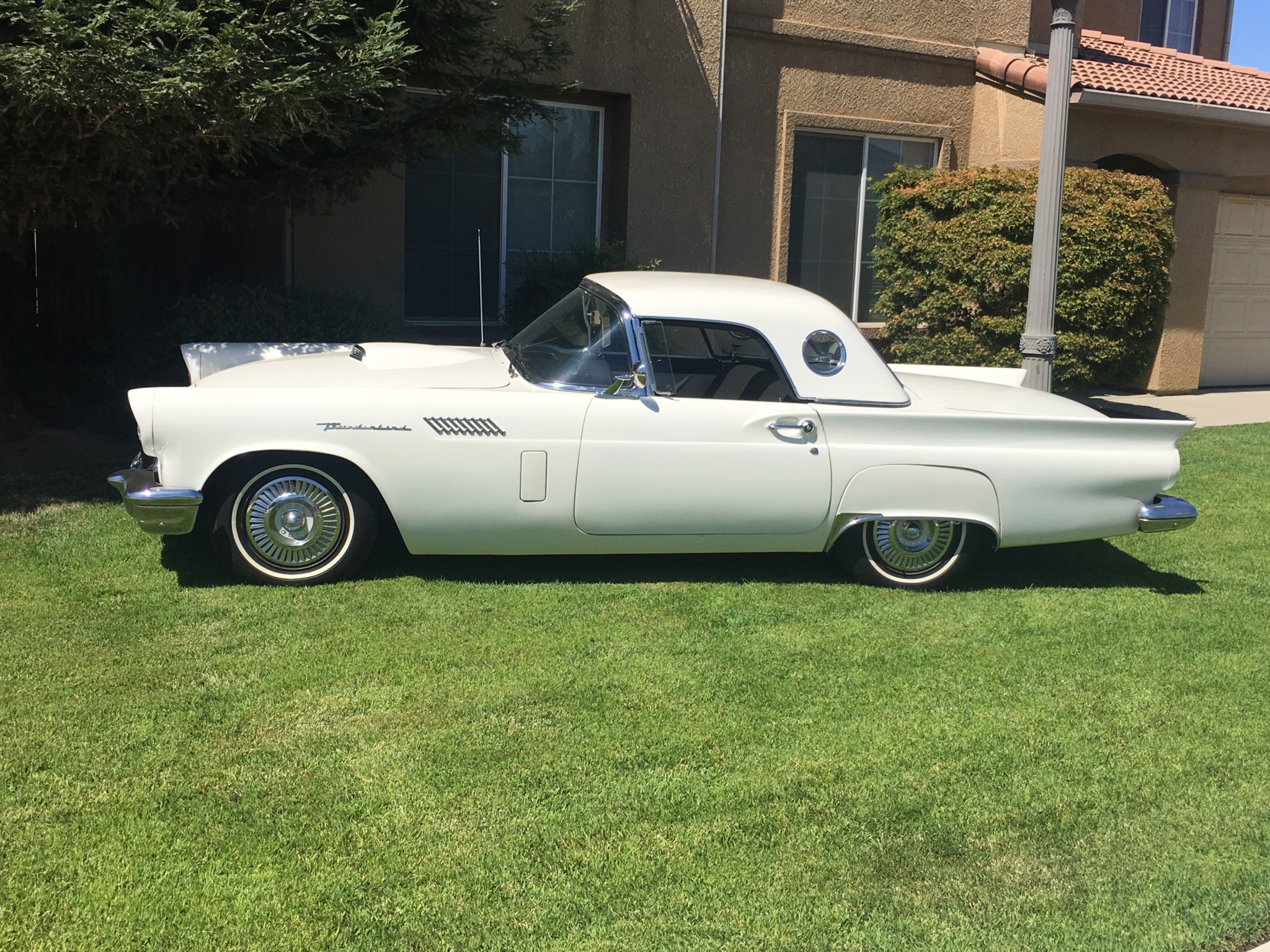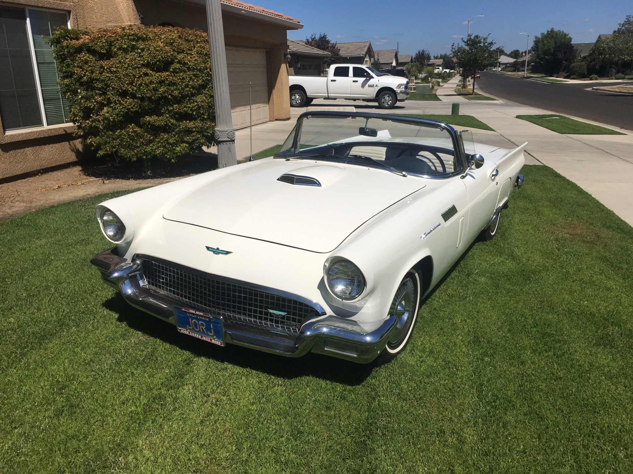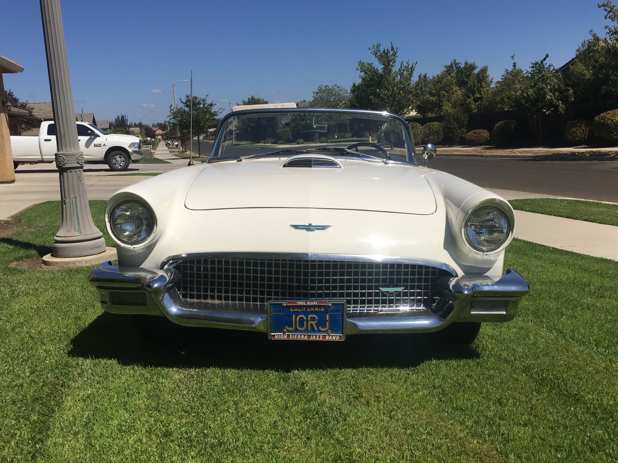 14″ steel wheels wear polished Ford covers and are fitted with Bridgestone whitewall tires, and a spare tire is mounted in the trunk. A walk-around video is provided above.